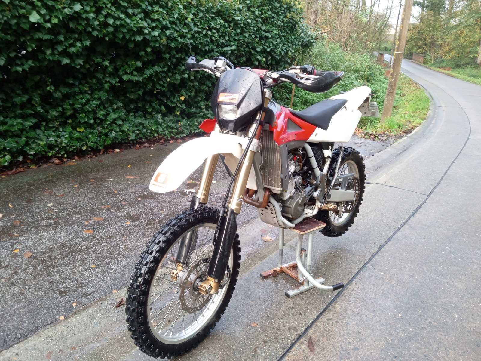 Inschrijvingsbewijs deel 1 en 2 aanwezig, gelijkvormigheidsattest niet aanwezig kilometerstand niet afleesbaar Opmerking: Motorblok defect- Werking niet gekend restauratieproject. No Merk: husqvarna Model: Te 450 Chassisnummer: ZCGH812AA6V000071 Cilinderinhoud: 450cc Datum eerste toelating: 27/02/2007 Vermogen (kW): 13kW Boorddocumenten aanwezig?: true Startinformatie: Start niet Bouwjaar: 2007