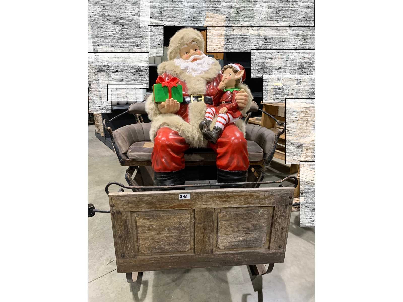 Antieken arrenslee met kerstman (polyester) - H: 180 - L: 250 - B: 140 Nee