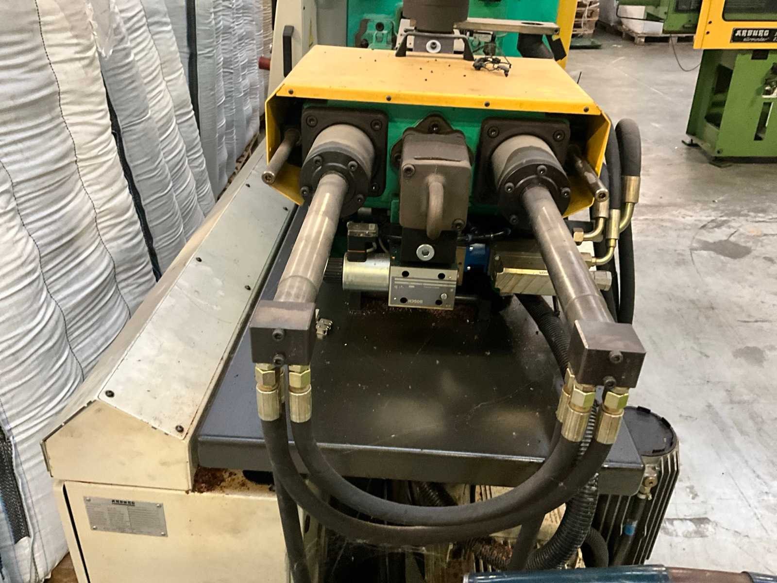 De machine werd werkend stopgezet. Deze staat reeds enkele jaren stil. Voor heropstart is nazicht en onderhoud vereist. Handleiding en informatie aanwezig. Geen bijhorende matrijzen aanwezig. Nee Merk: ARBURG Type: Allrounder 320 S Bouwjaar: 1997 Serienummer: 169585 Schroefdiameter: 30mm Injectievolume: 99cm³ Injectiedruk: 2000bar Injectieslag: 140mm Sluitkracht: 500kN Uitwerpslag: 125mm Uitwerpkracht: 20kN Digitale besturing: true Aansluiting: 400V Machinegewicht: 2200kg Totale afmeting L: 3200mm Totale afmeting Breedte: 1100mm Totale afmeting Hoogte: 1900mm GS Code: 84771000