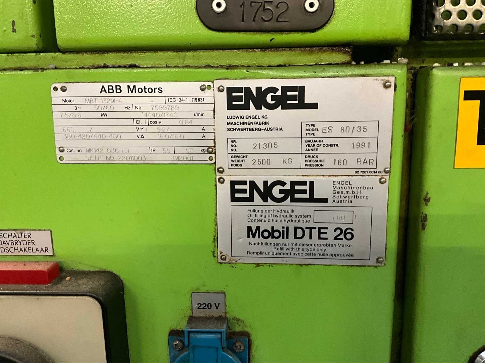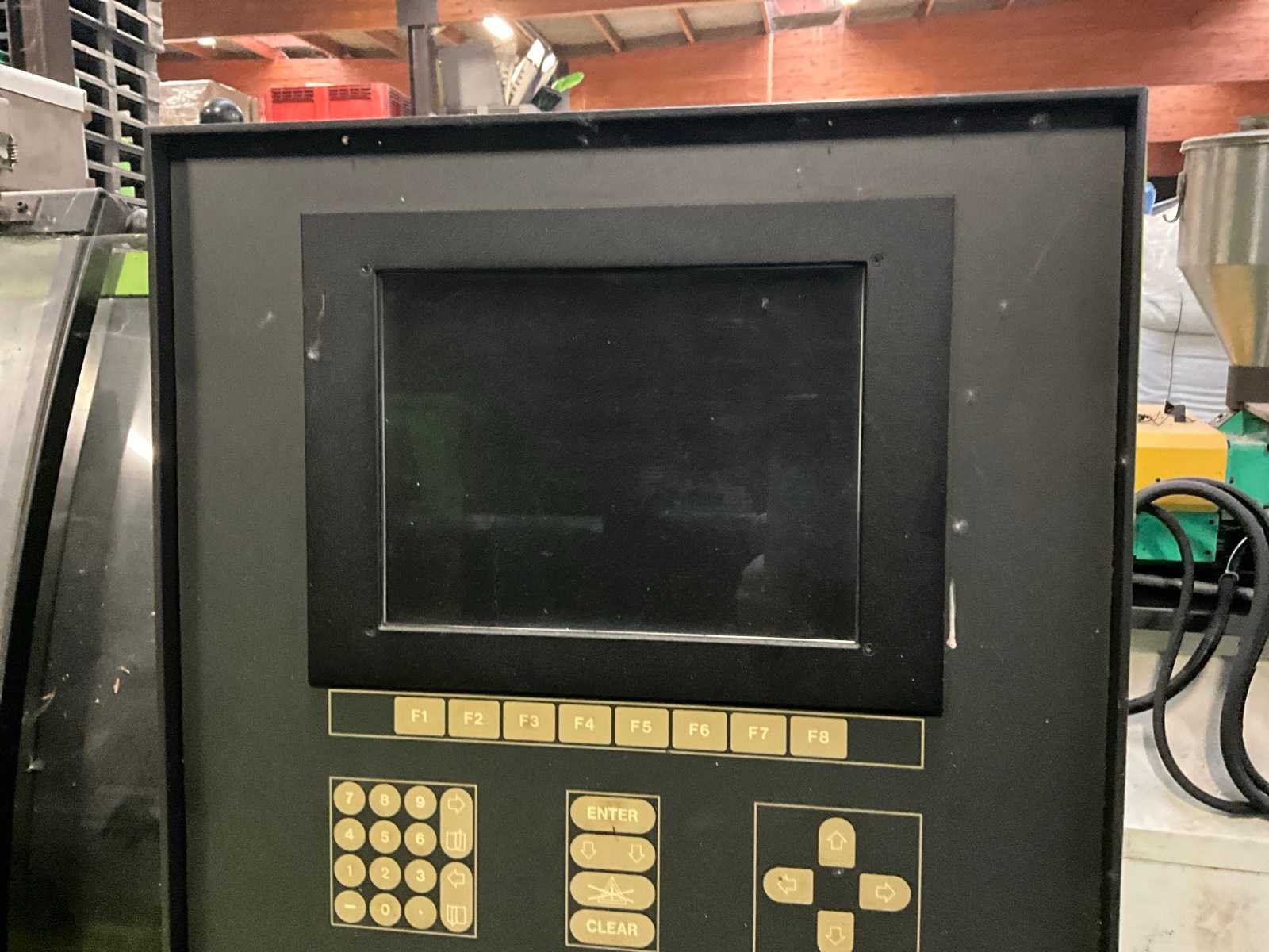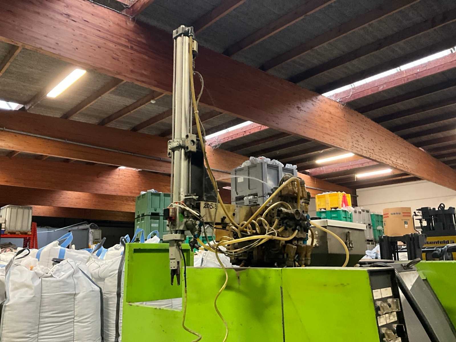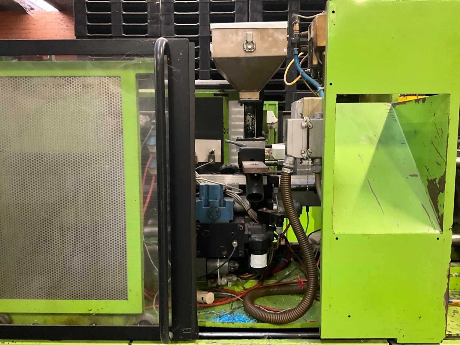 De machine werd werkend stopgezet. Deze staat reeds enkele jaren stil. Voor heropstart is nazicht en onderhoud vereist. Handleiding en informatie aanwezig. Geen bijhorende matrijzen aanwezig. Nee Type: ES 80/35 Schroefdiameter: 25mm Injectievolume: 61cm³ Injectieslag: 125mm Sluitkracht: 350kN Digitale besturing: true Totale afmeting L: 3000mm Totale afmeting Breedte: 1000mm Totale afmeting Hoogte: 1800mm