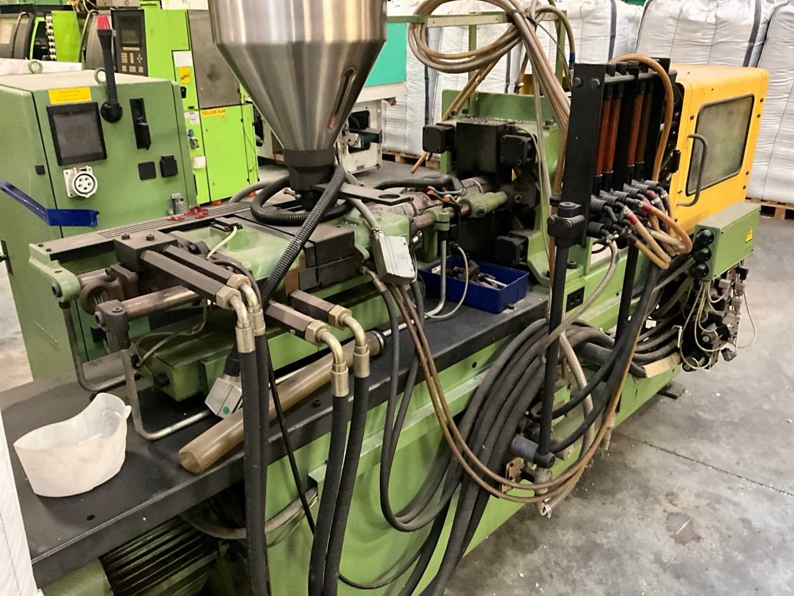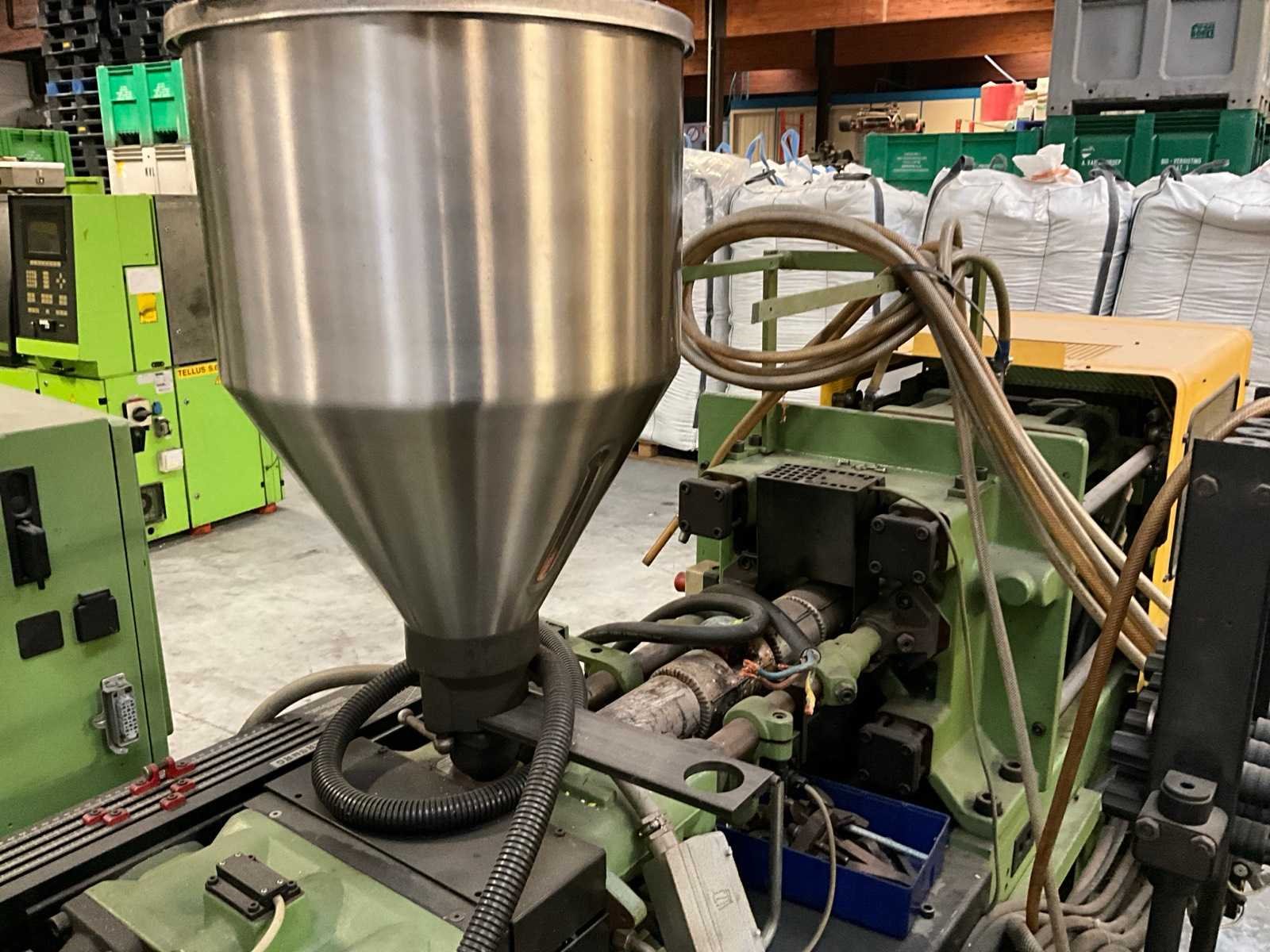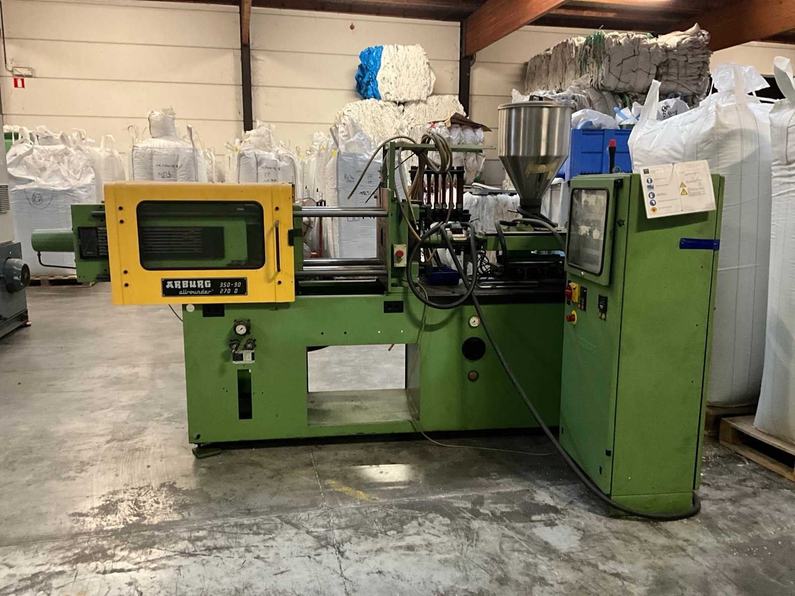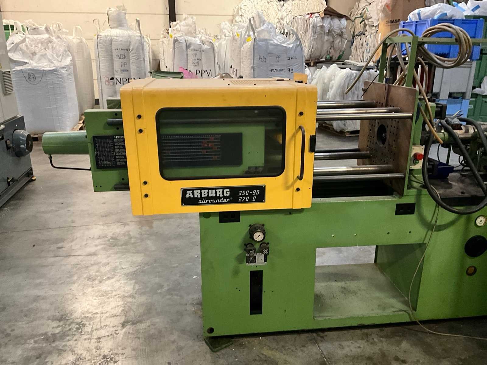 De machine werd werkend stopgezet. Deze staat reeds enkele jaren stil. Voor heropstart is nazicht en onderhoud vereist. Handleiding en informatie aanwezig. Geen bijhorende matrijzen aanwezig. Nee Type: Allrounder 270 D 850-90 Injectievolume: 39cm³ Injectieslag: 55mm Sluitkracht: 850kN Digitale besturing: true Aansluiting: 400V Totale afmeting L: 3200mm Totale afmeting Breedte: 1200mm Totale afmeting Hoogte: 1800mm GS Code: 847710
