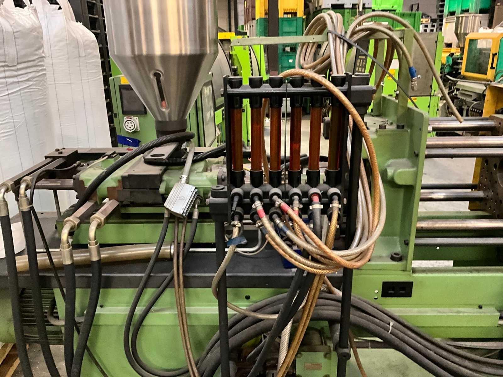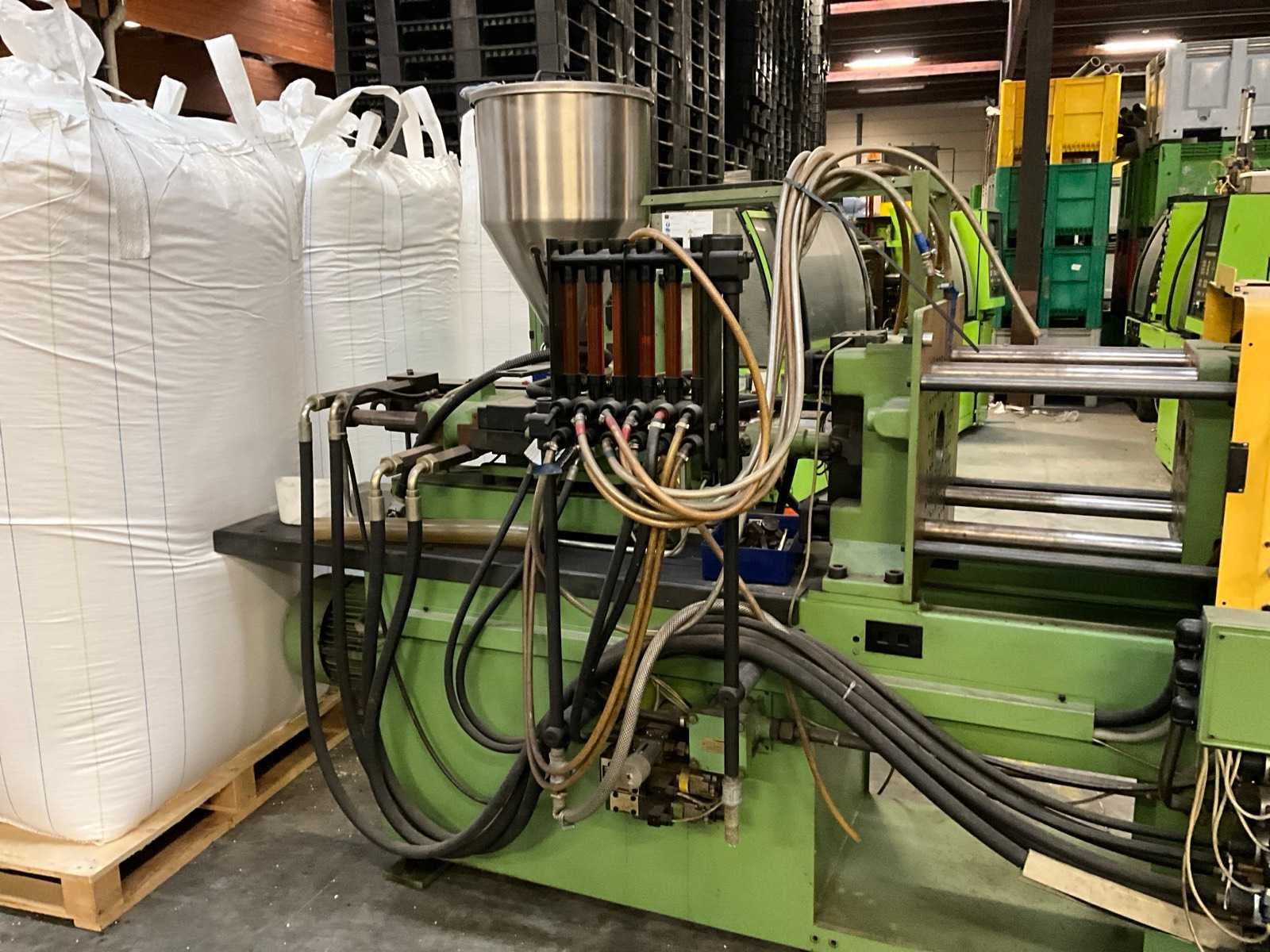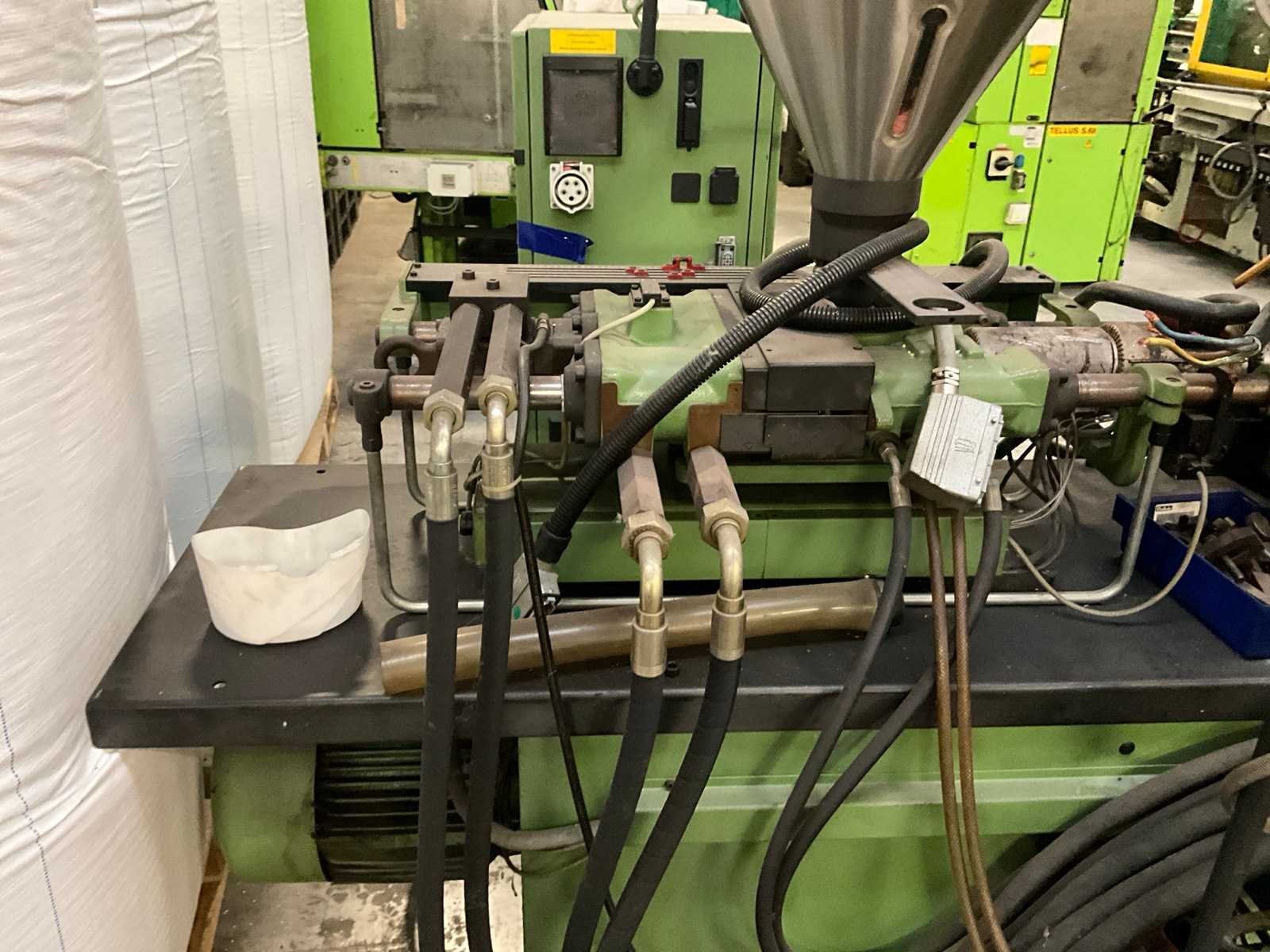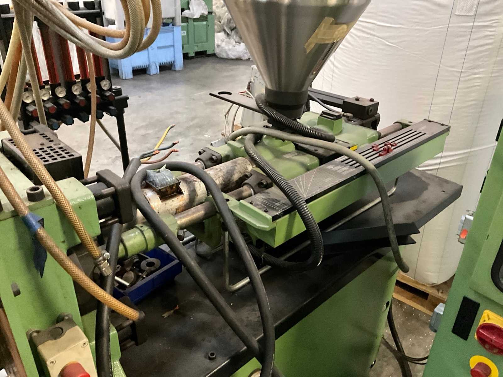 De machine werd werkend stopgezet. Deze staat reeds enkele jaren stil. Voor heropstart is nazicht en onderhoud vereist. Handleiding en informatie aanwezig. Geen bijhorende matrijzen aanwezig. Nee Type: Allrounder 270 D 850-90 Injectievolume: 39cm³ Injectieslag: 55mm Sluitkracht: 850kN Digitale besturing: true Aansluiting: 400V Totale afmeting L: 3200mm Totale afmeting Breedte: 1200mm Totale afmeting Hoogte: 1800mm GS Code: 847710