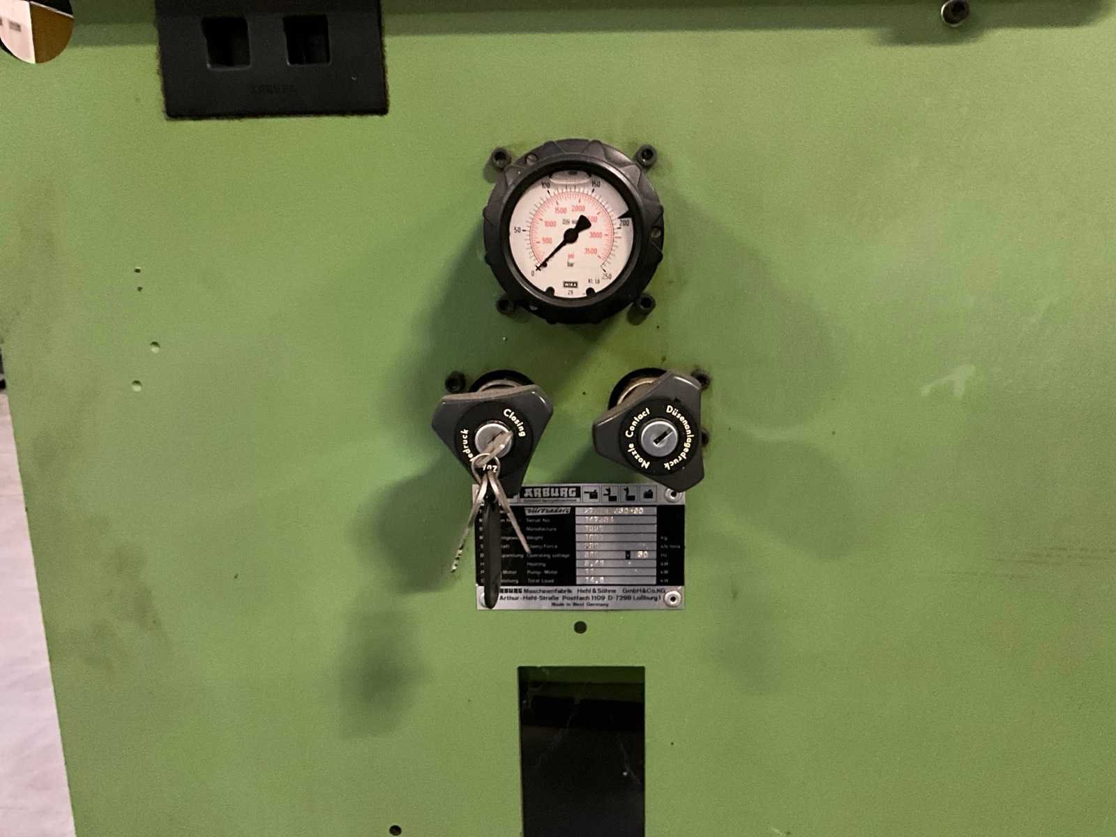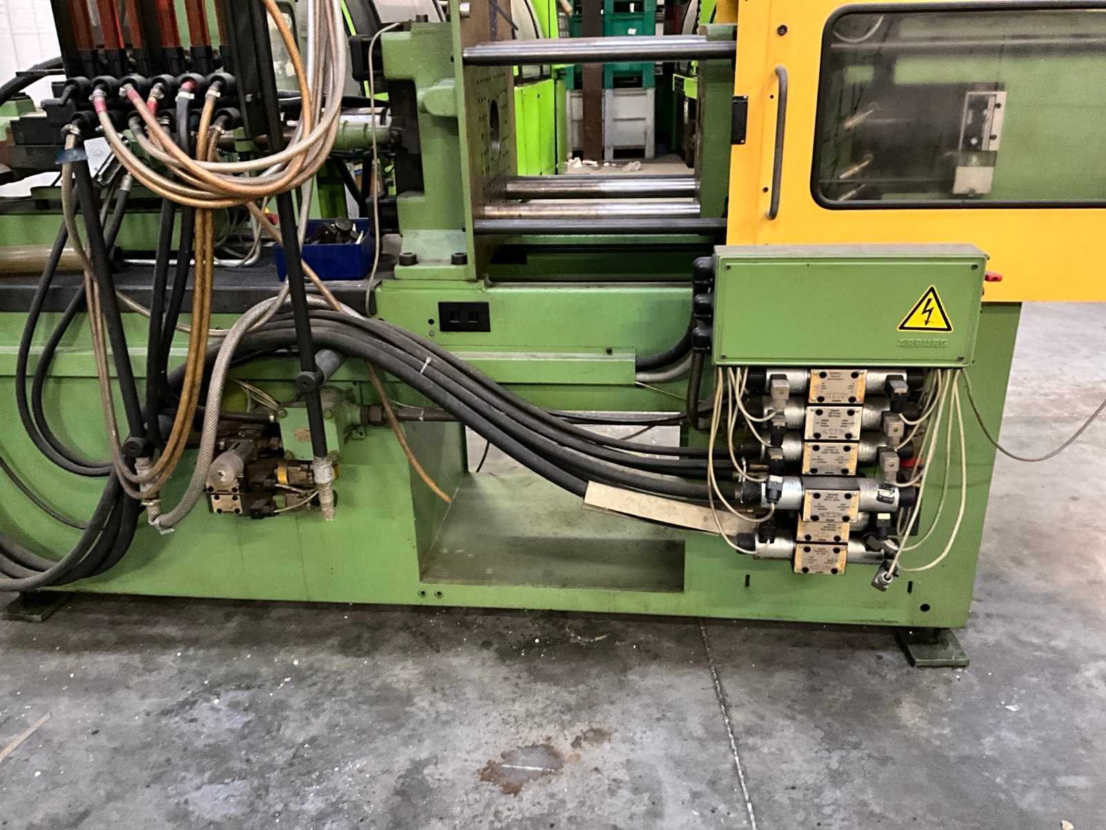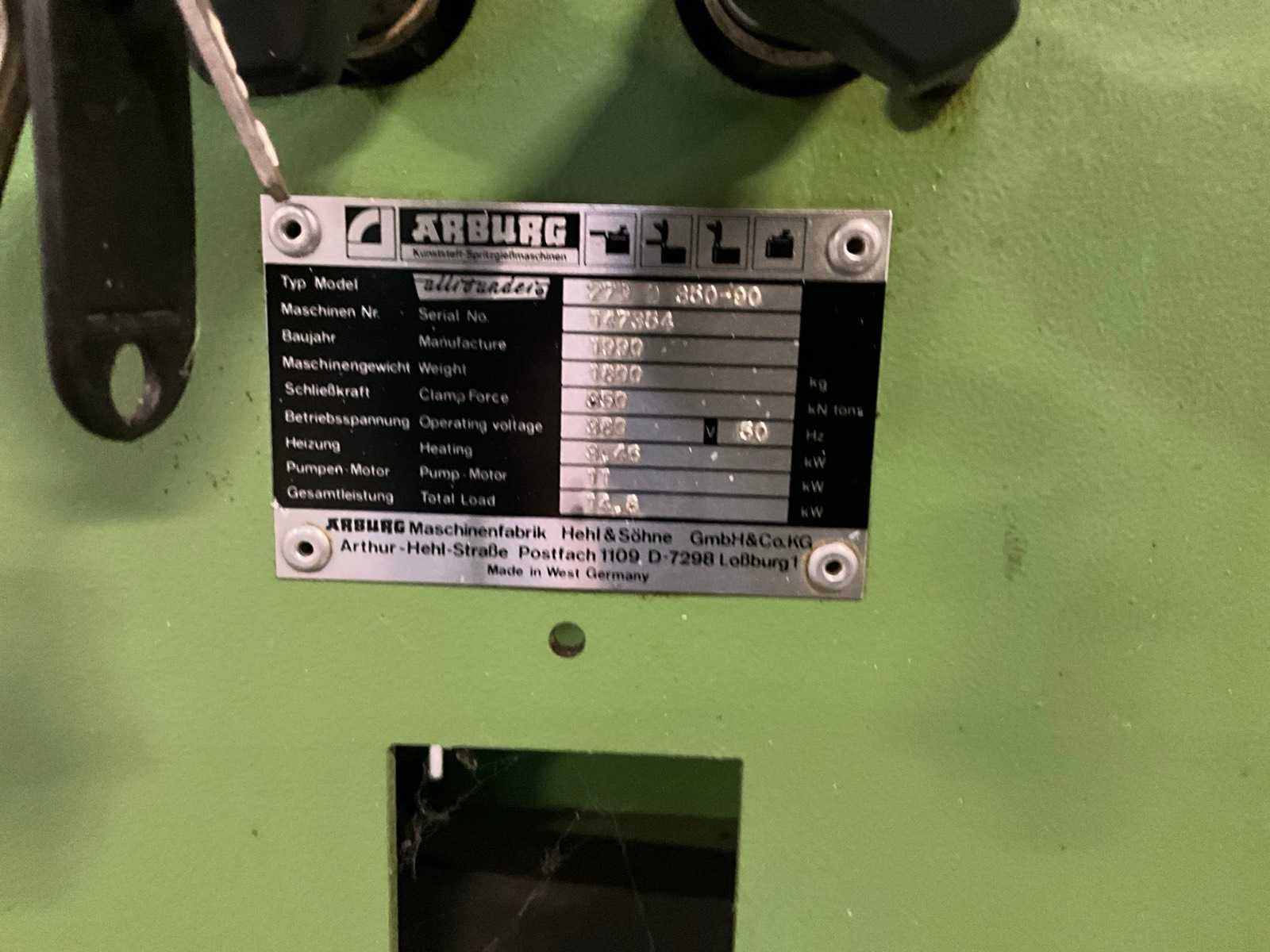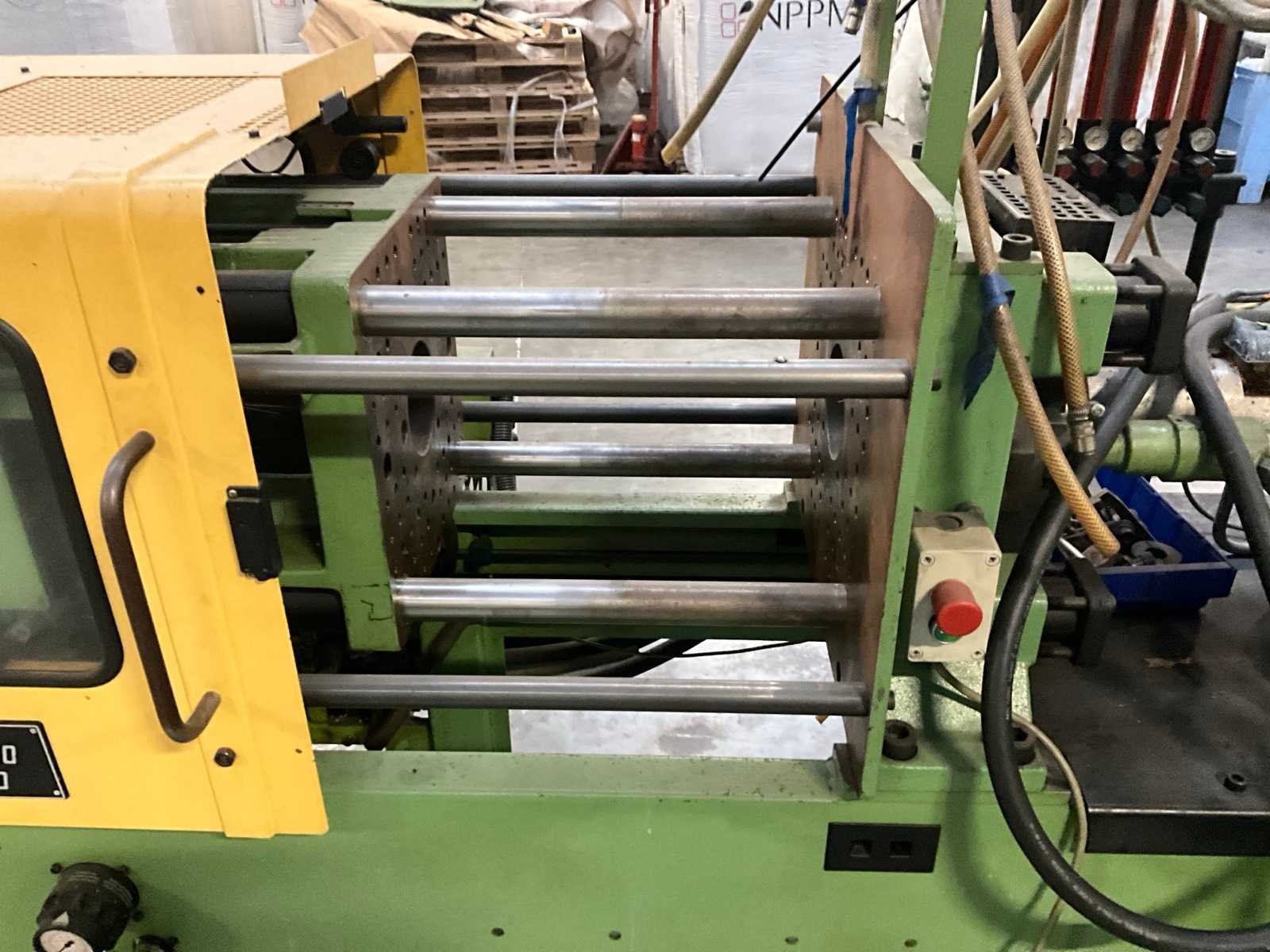 De machine werd werkend stopgezet. Deze staat reeds enkele jaren stil. Voor heropstart is nazicht en onderhoud vereist. Handleiding en informatie aanwezig. Geen bijhorende matrijzen aanwezig. Nee Type: Allrounder 270 D 850-90 Injectievolume: 39cm³ Injectieslag: 55mm Sluitkracht: 850kN Digitale besturing: true Aansluiting: 400V Totale afmeting L: 3200mm Totale afmeting Breedte: 1200mm Totale afmeting Hoogte: 1800mm GS Code: 847710