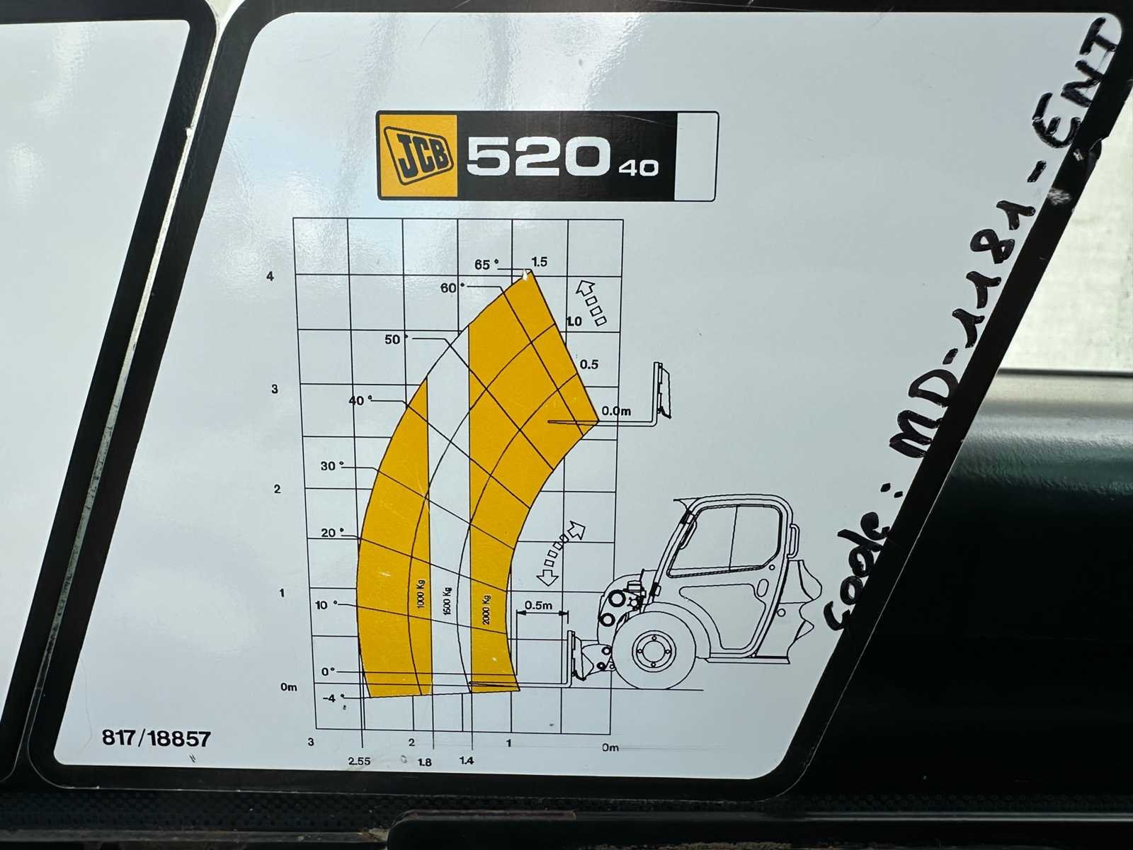 -2000kg hefvermogen -Vorkenbord -Mechanische snelwissel -Extra functie -Camera achteraan -Geen documenten Nee Merk: JCB Type: 520-40 Bouwjaar: 2018 Serienummer: 2709118 Motorvermogen (kW): 36.3kW Hefvermogen: 2000kg Hefhoogte: 4000mm Vierwielaandrijving 4x4: true Afgelezen urenstand: 3014 Eigen gewicht: 4400kg Totale afmeting L: 3380mm Totale afmeting Breedte: 1560mm Totale afmeting Hoogte: 1970mm