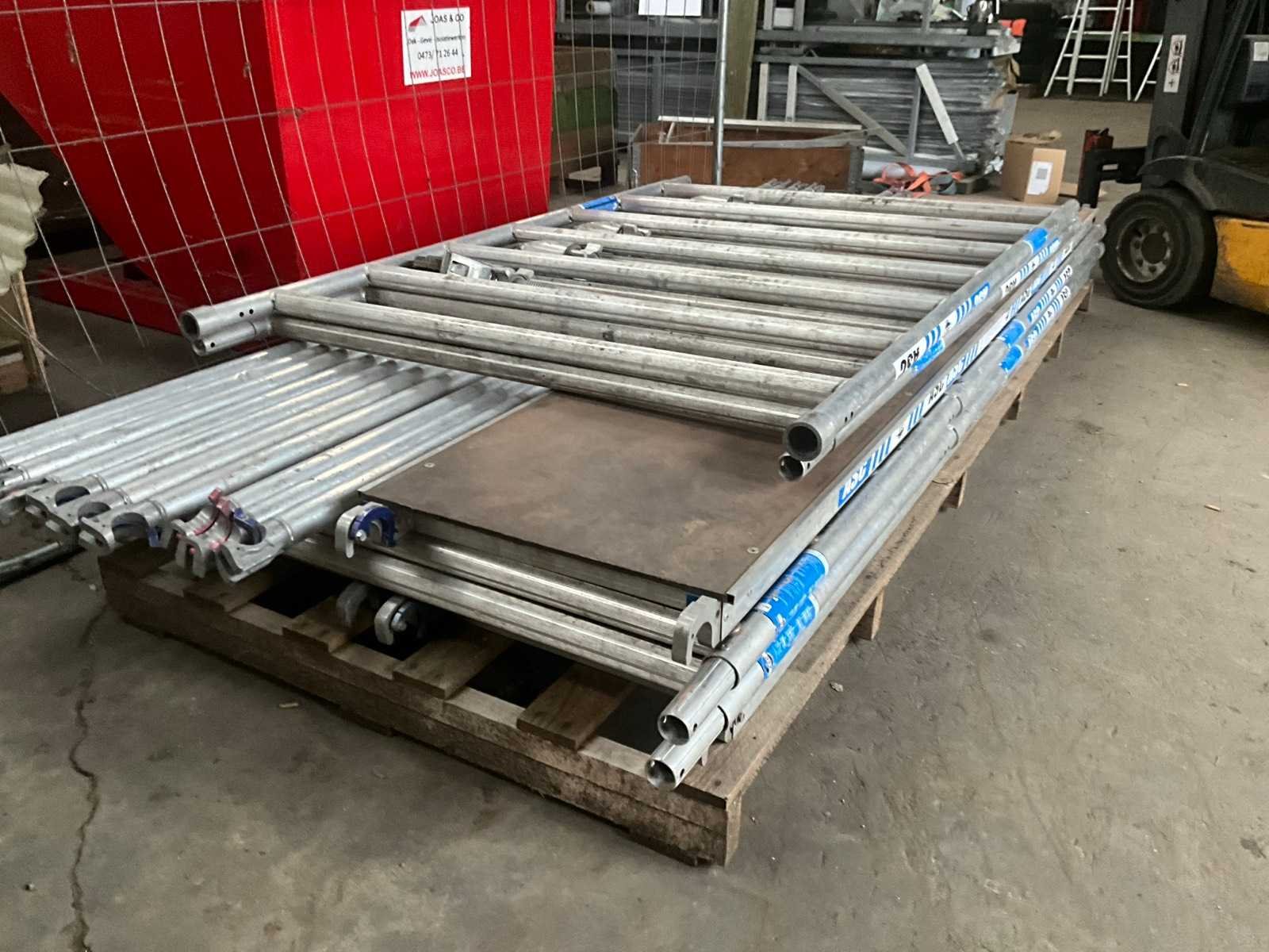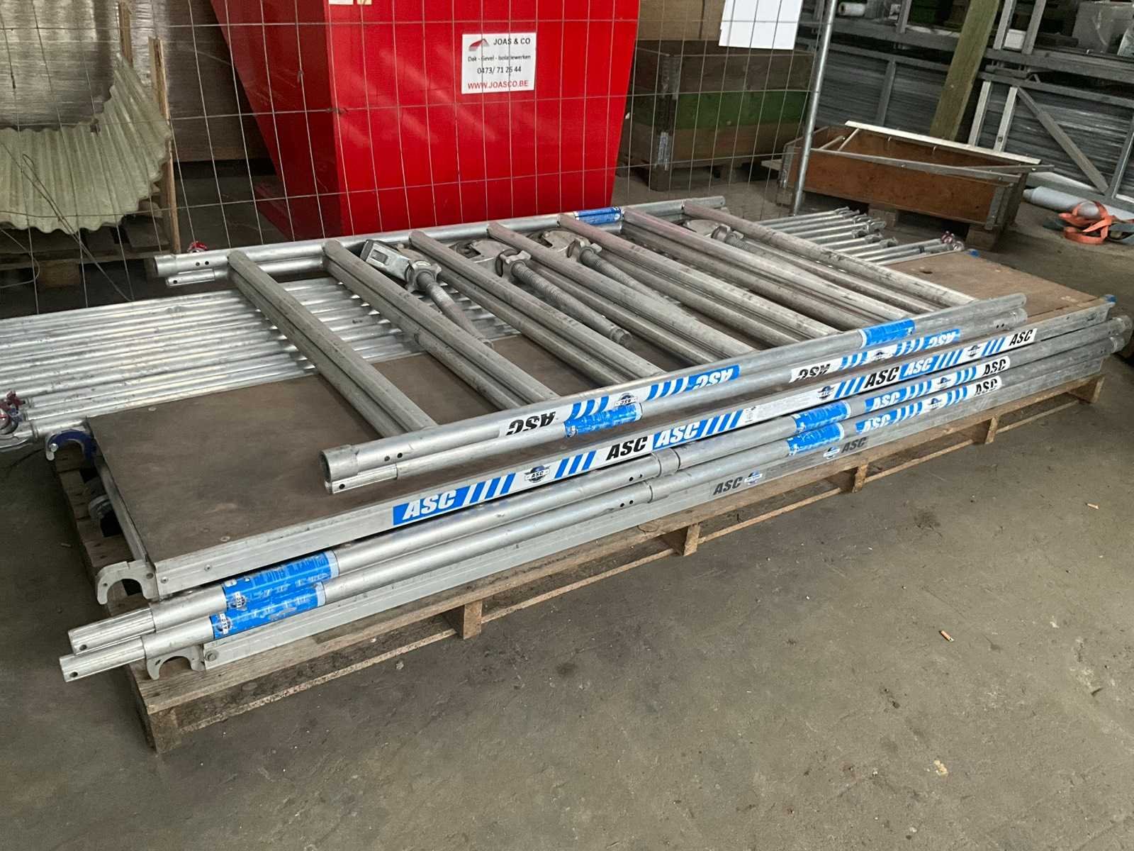 A-Class platform van circa 300 x 130 cm, met een werkhoogte van 6 meter, bestaande uit 6 diverse staanders/opbouwelementen van 130 cm, 3 alu/kunststoffen loopplanken waarvan 1 met luik, elk van 3 meter lang en 60 cm breed, bijhorende diagonalen en toebehoren (compleet). Nee Merk: ASC Type: Klasse 3