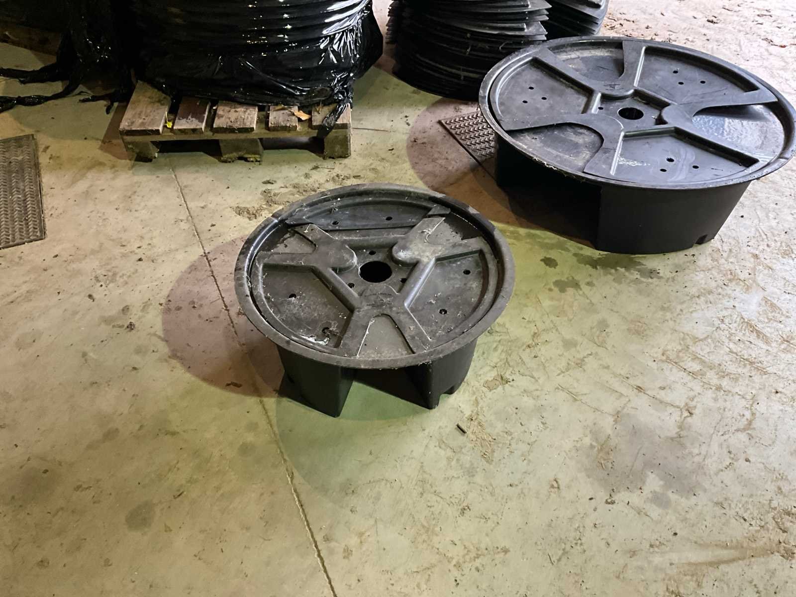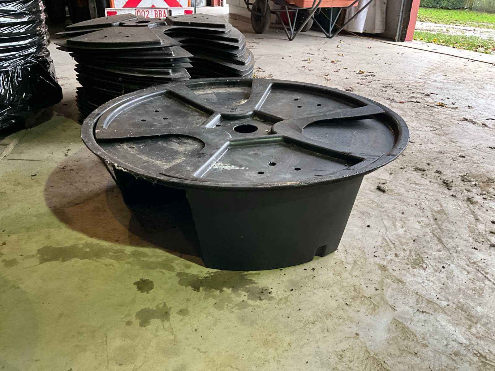 25 stuks grote : afmetingen diameter 100cm 70 stuks kleine : afmetingen diameter 65cm Nee Materiaal: Kunstof