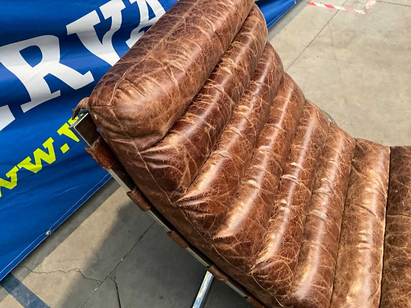 No Lengte: 130cm Breedte: 60cm Hoogte: 83cm Materiaal: Leder, chroom onderstel