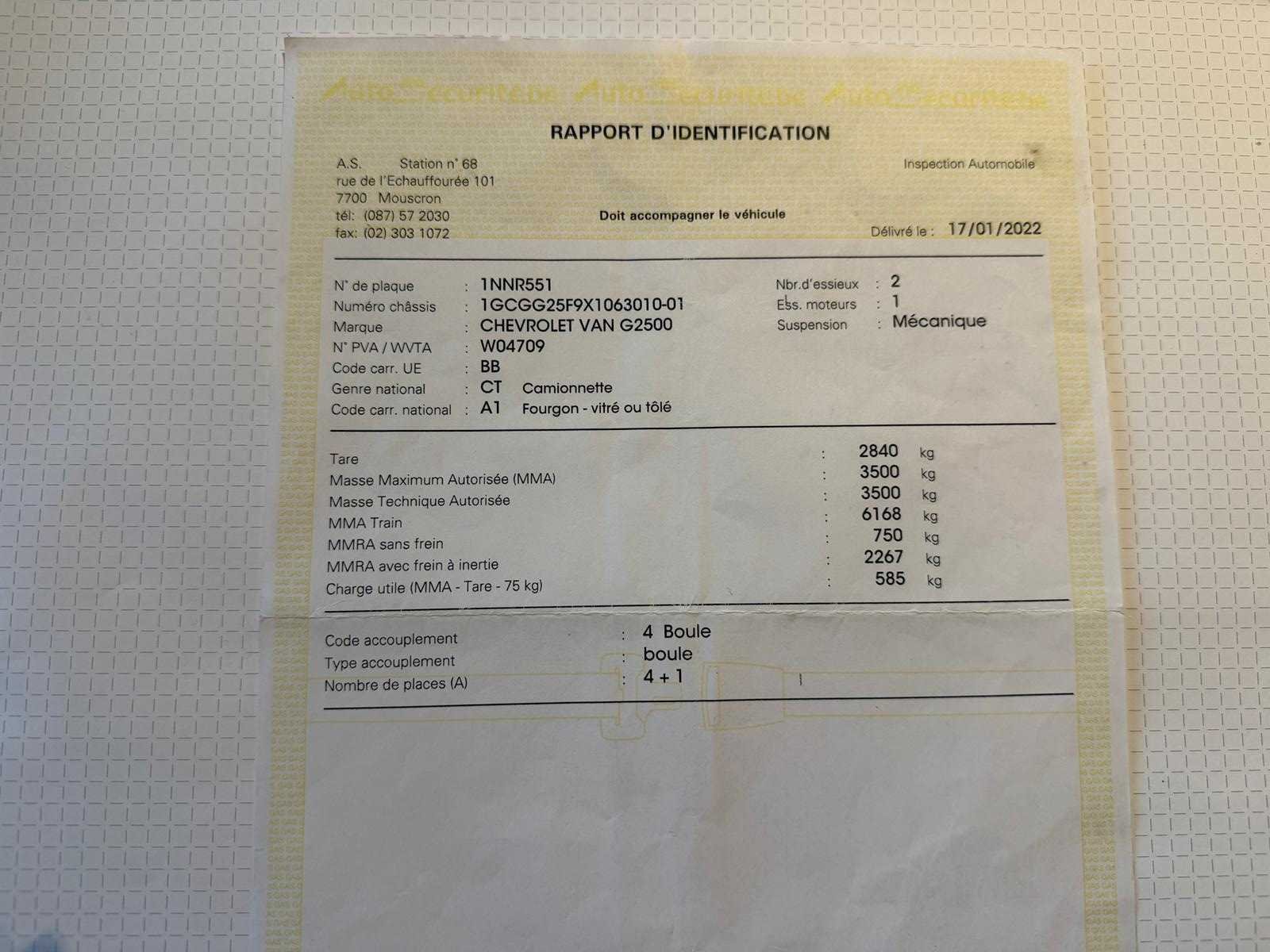 Lichte vracht V8 01/03/1999 diesel 6468 cc 145 kw 5 zitplaatsen automatic 171.000 km sleep geremd : 2260 kg ongeremd : 750 kg laadvermogen : 585 kg airco leder No Merk: Chevrolet Model: G2500 Bouwjaar: 1998 Chassisnummer: 1GCGG25F9X1063010(01) Afgelezen kilometerstand: 171000km Cilinderinhoud: 6468cc Vermogen (kW): 145kW Brandstof: Diesel Datum eerste toelating: 01/03/1999 Transmissie: Automaat Aantal zitplaatsen: 5 Kleur: Groen Nationaliteit documenten: Belgisch Carrosserie: Lichte vracht Kentekenpapieren compleet?: true Boorddocumenten aanwezig?: true