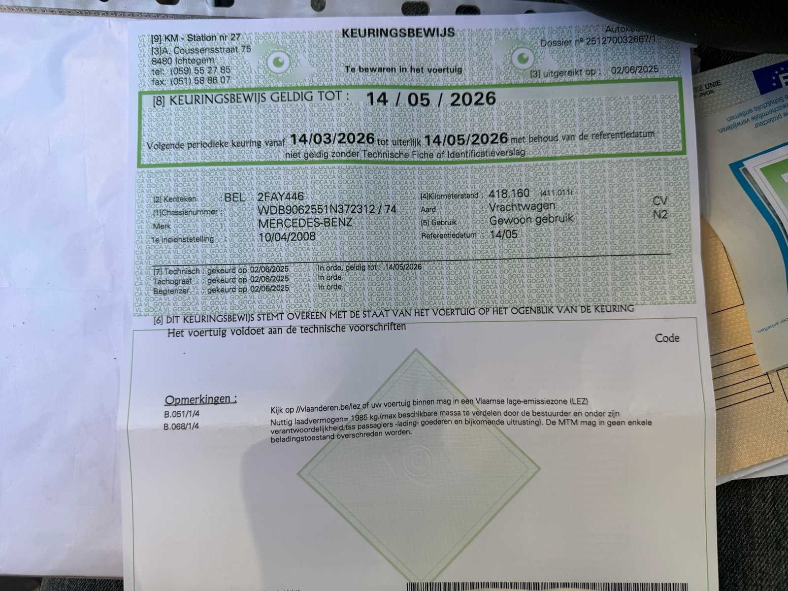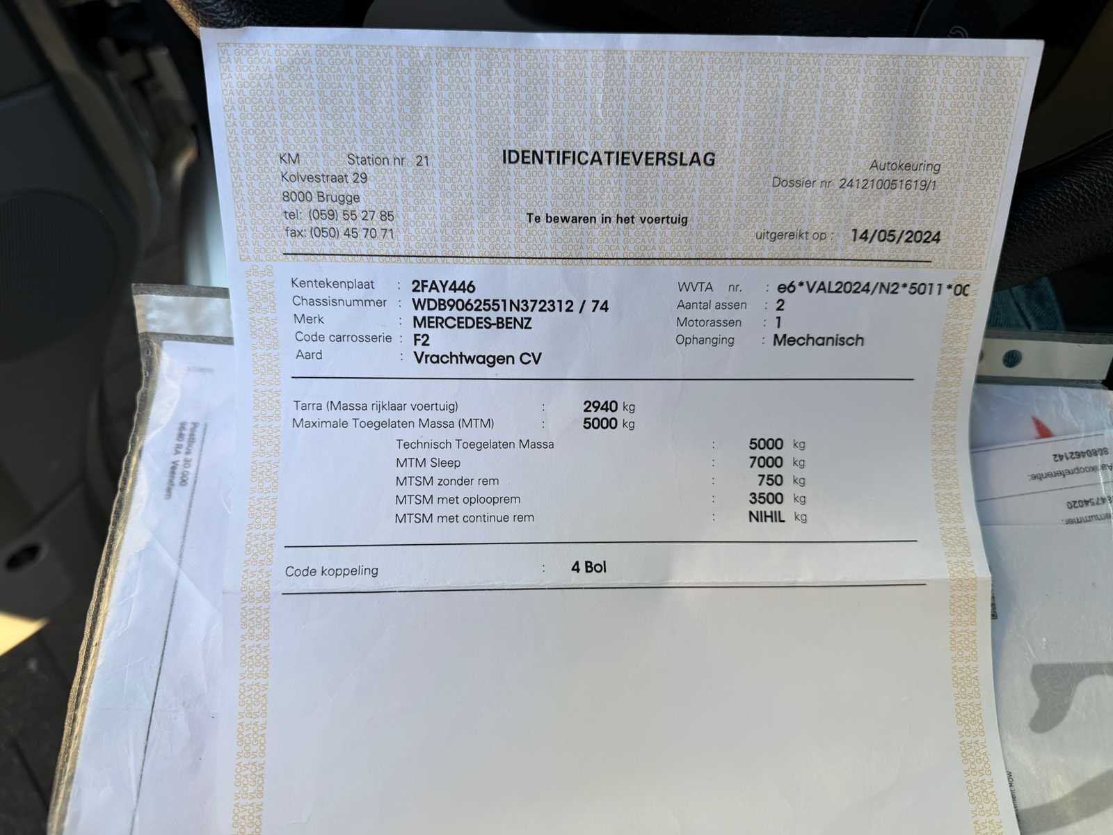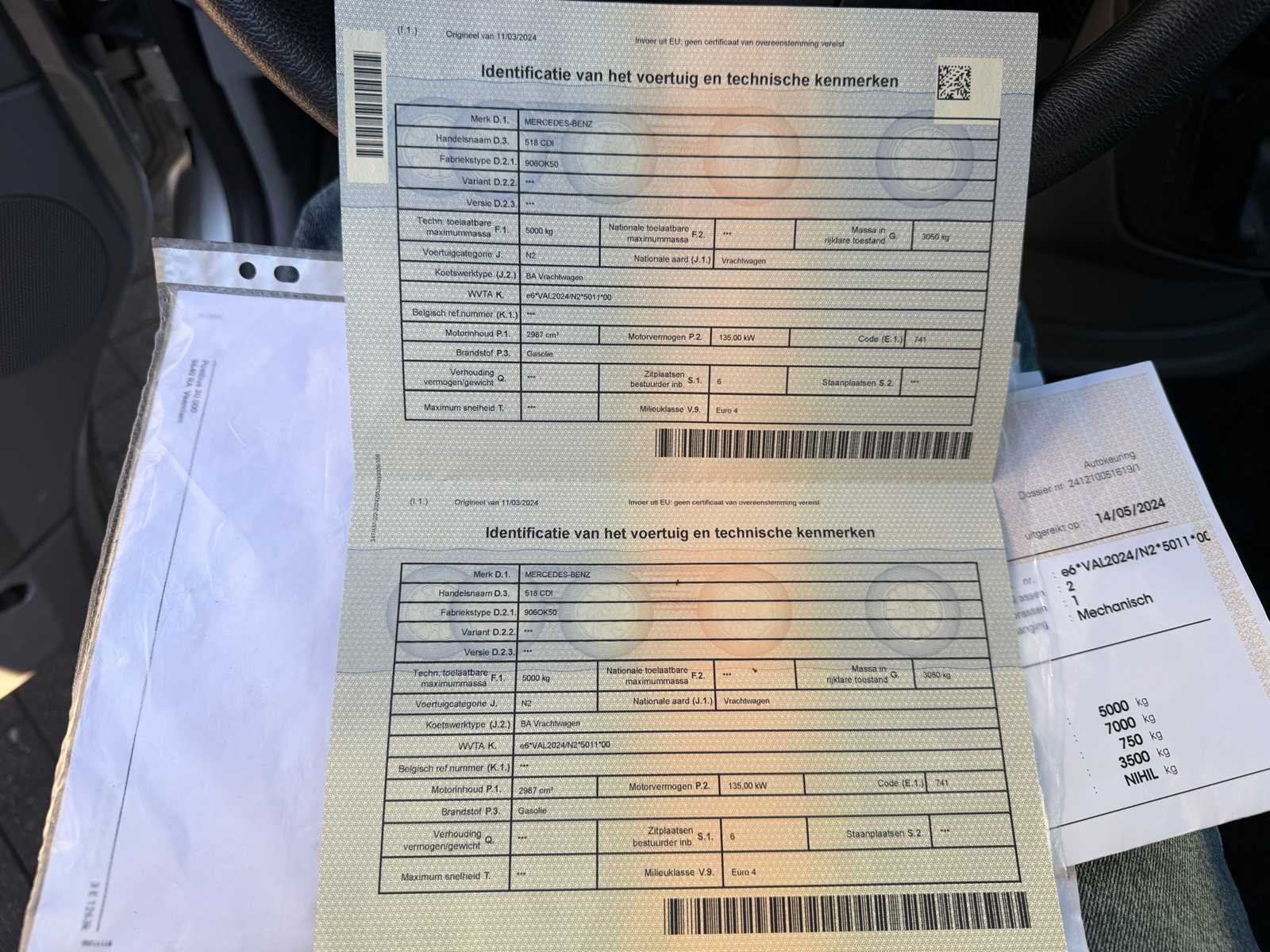 No Merk: Mercedes Type: 518 CDI Bouwjaar: 2008 Chassisnummer VIN: WDB9062551N372312(01) Cilinderinhoud: 2897cc Datum eerste toelating: 10/04/2008 Fuel Type: Diesel Afgelezen kilometerstand: 420244km Nationaliteit documenten: Belgisch Kentekenpapieren compleet?: true Aantal zitplaatsen: 6 Automaat: true Diesel: true