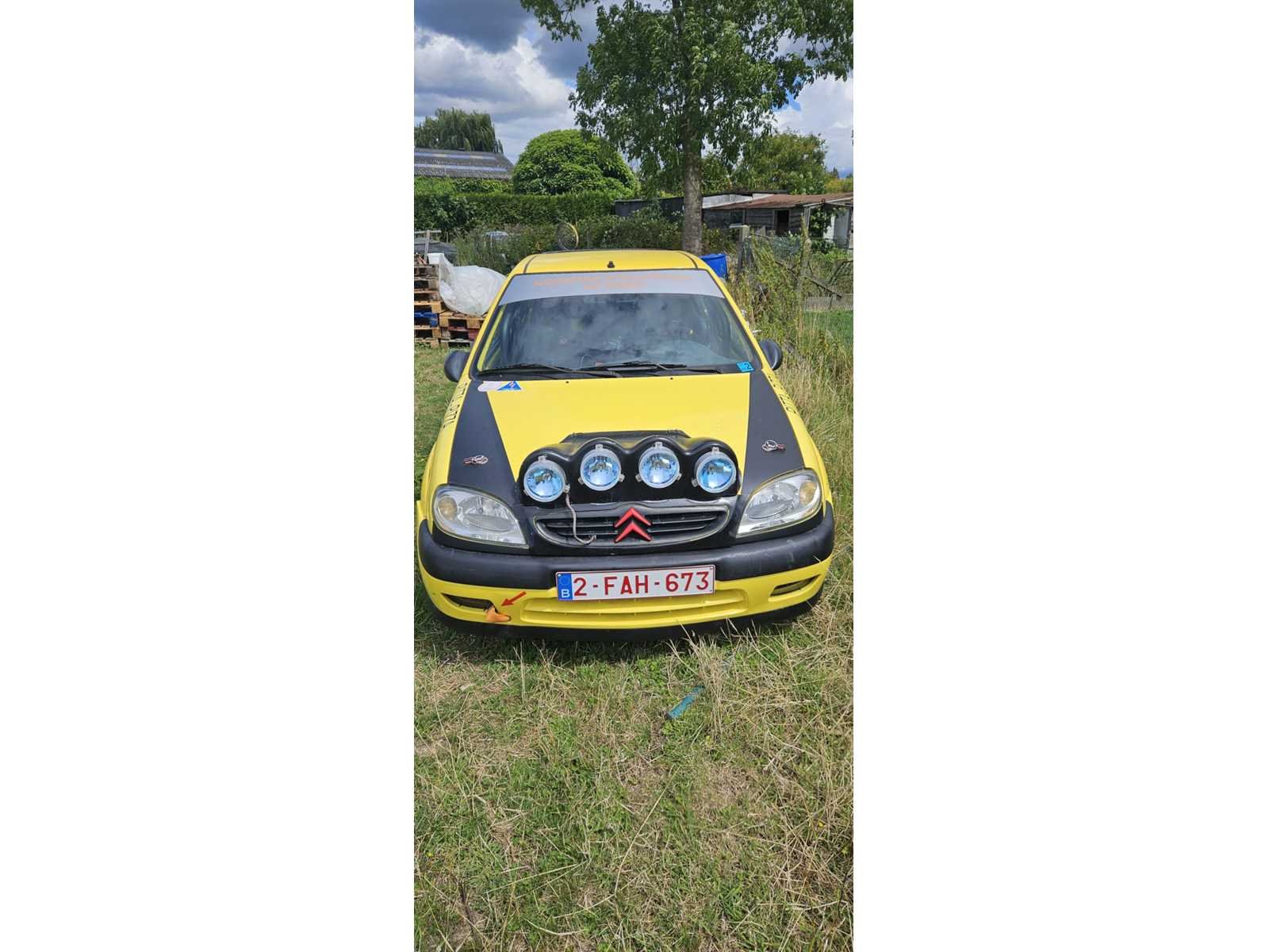 Crossauto - niet voor in gewoon verkeer! No Merk: Citroen Model: Saxo Bouwjaar: 2000 Afgelezen kilometerstand: 275349km Cilinderinhoud: 1360cc Vermogen (kW): 55kW Brandstof: benzine Chassisnummer: VF7S6KFXF57188923(01) Datum eerste toelating: 25/09/2000 Aantal zitplaatsen: 2 Kleur: geel Carrosserie: Personenauto
