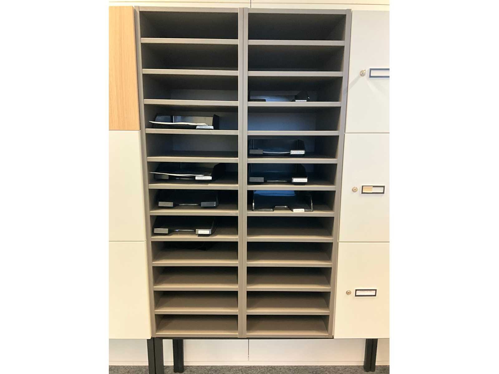 Voorzien van 21 onderverdelingen. Zonder enige inhoud. No Lengte: 350cm Breedte: 52cm Hoogte: 194cm