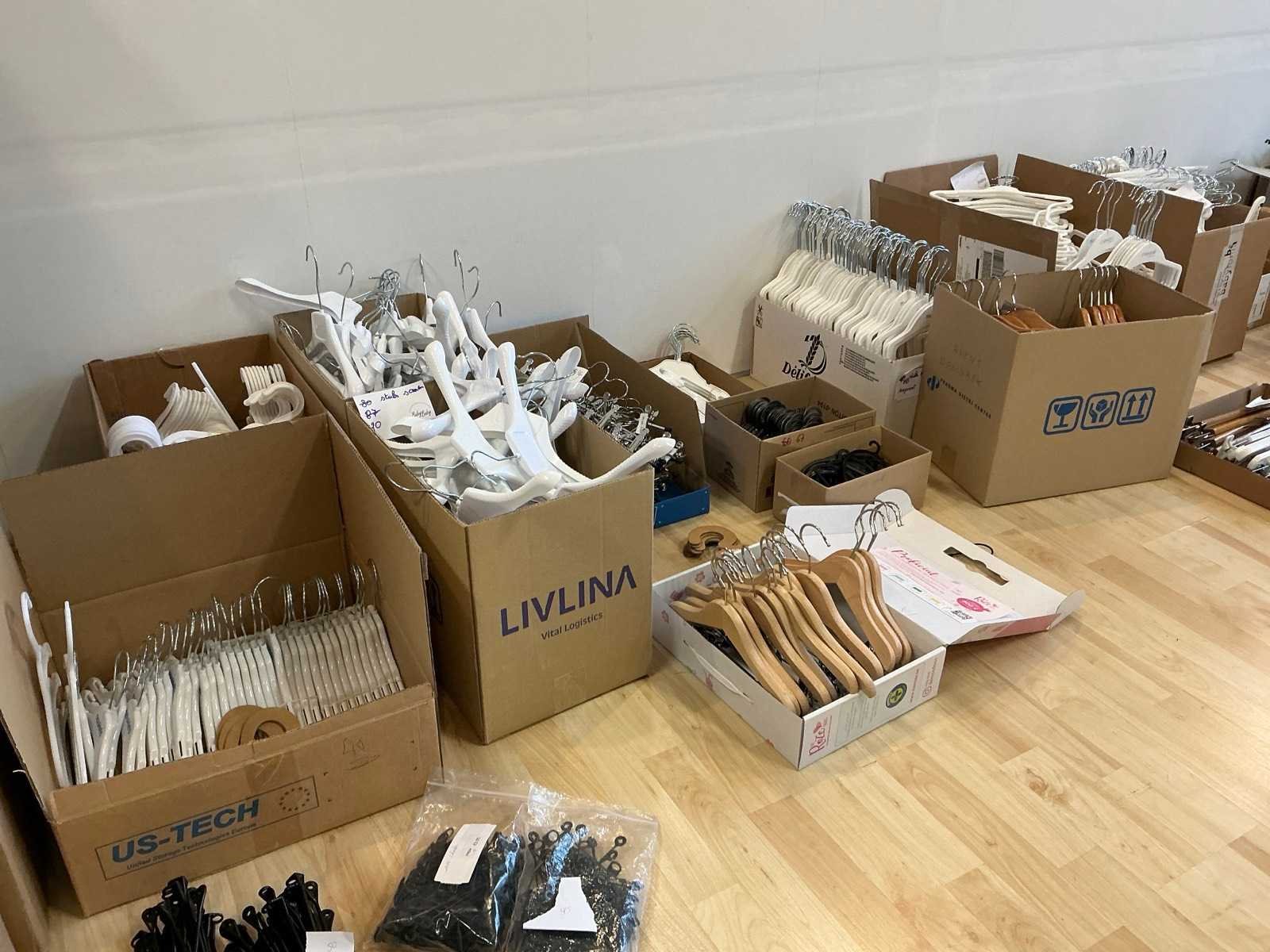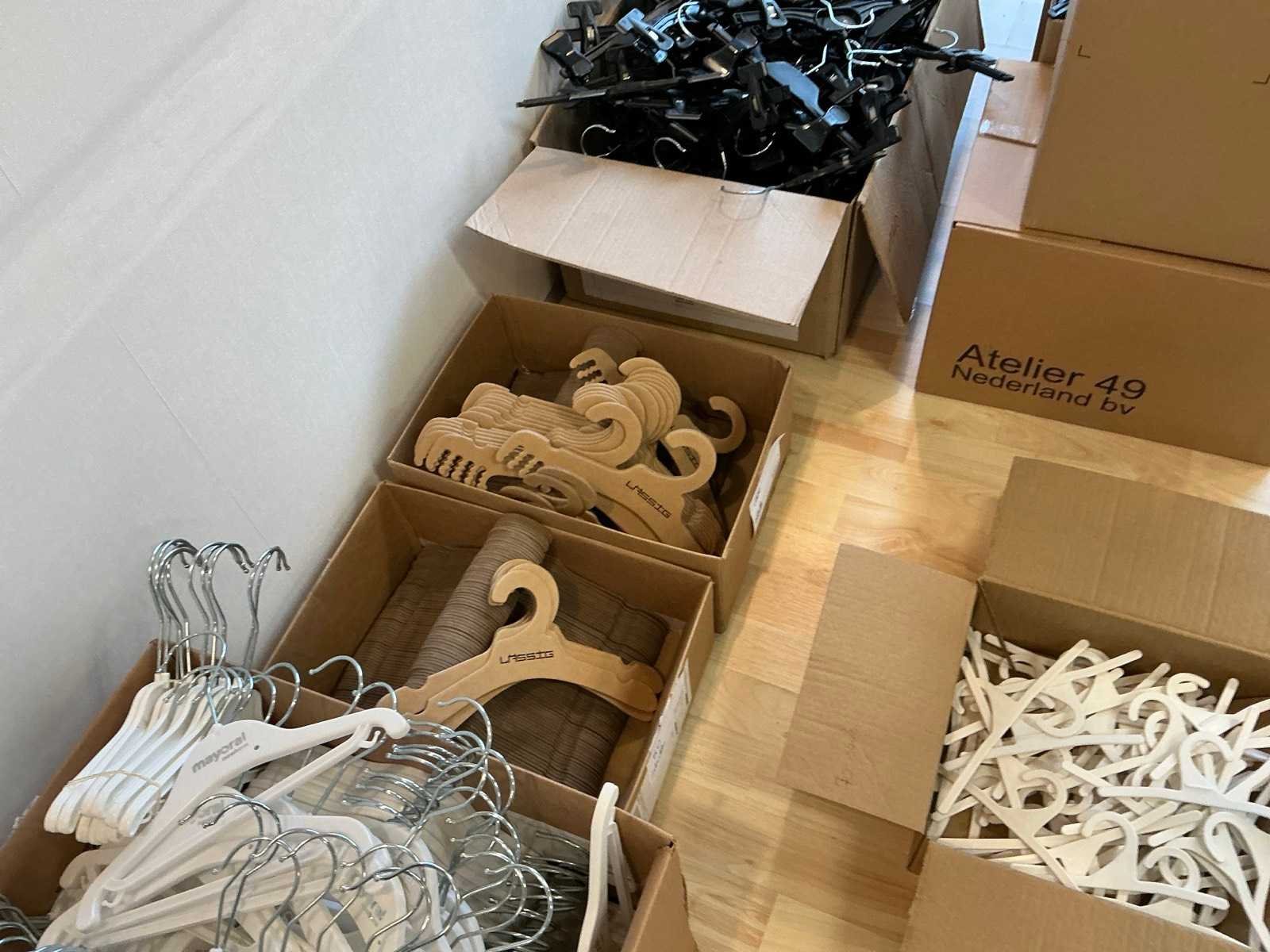 In diverse maten en uitvoeringen, liggende in 39 dozen en 3 diverse kledingrekken Nee