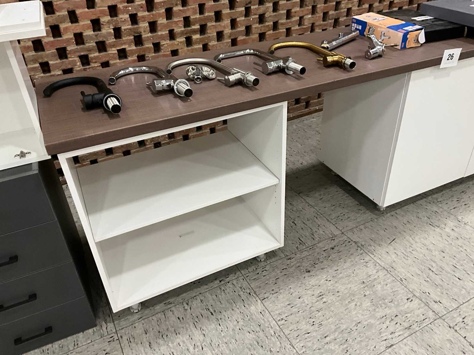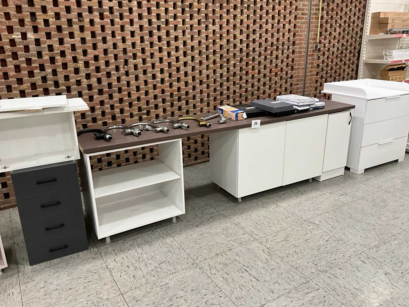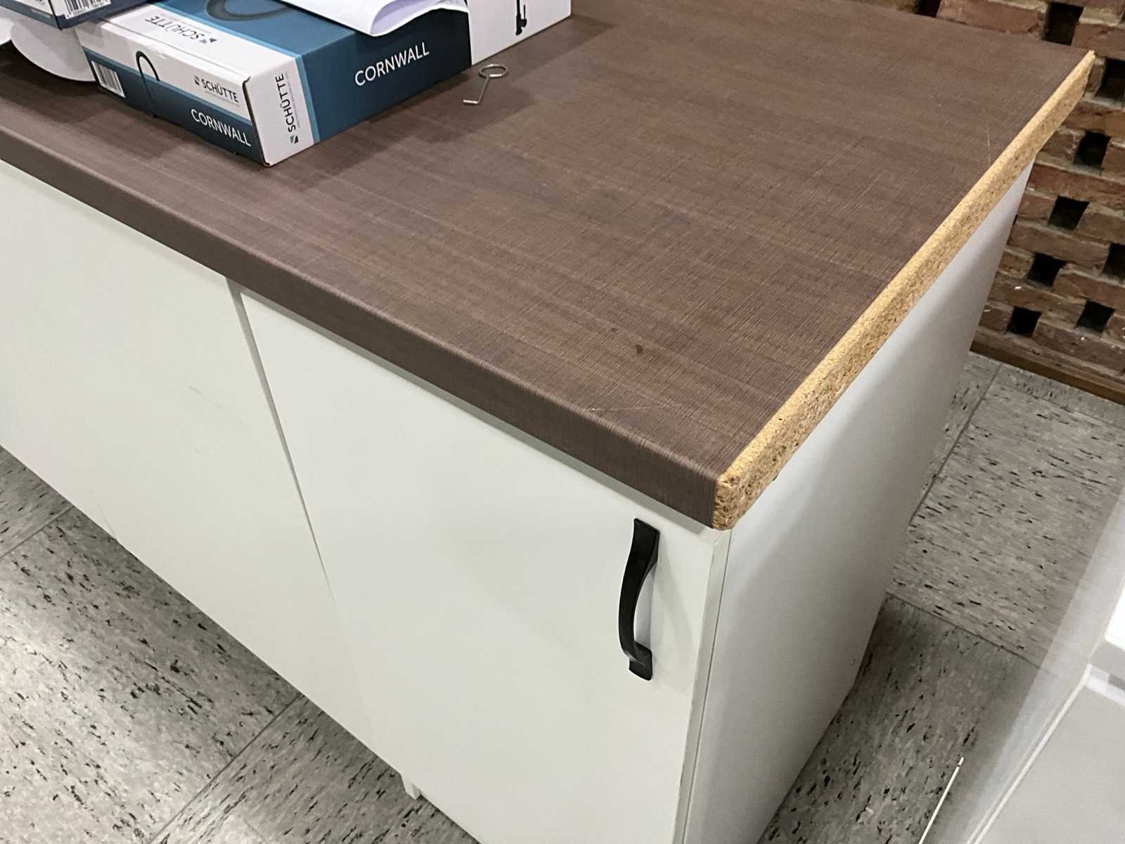 Compleet met 4 diverse opbergkasten, waaronder ladekast met afmetingen 95x71x107cm. Nee Lengte: 60cm Breedte: 305cm Hoogte: 89cm