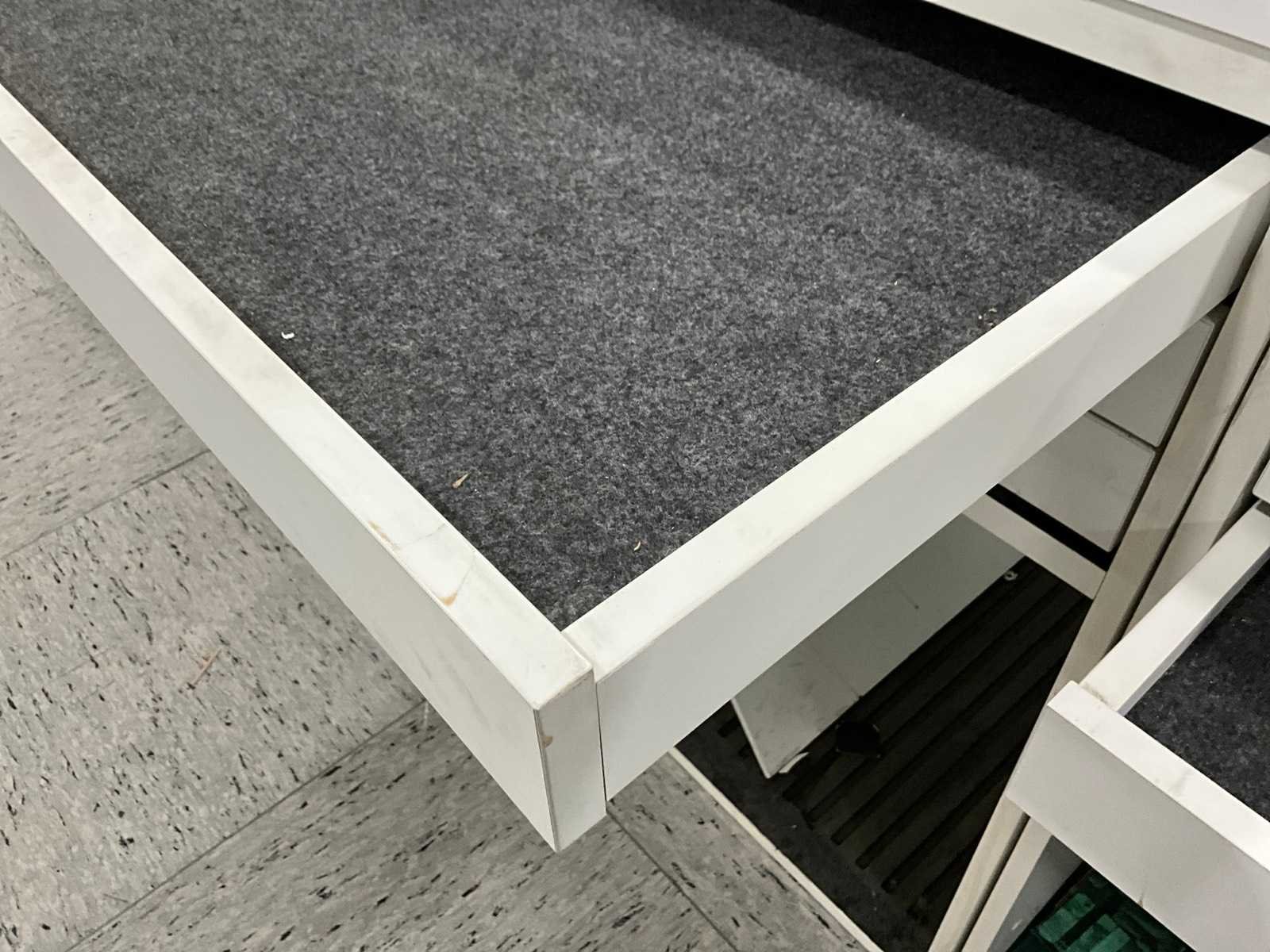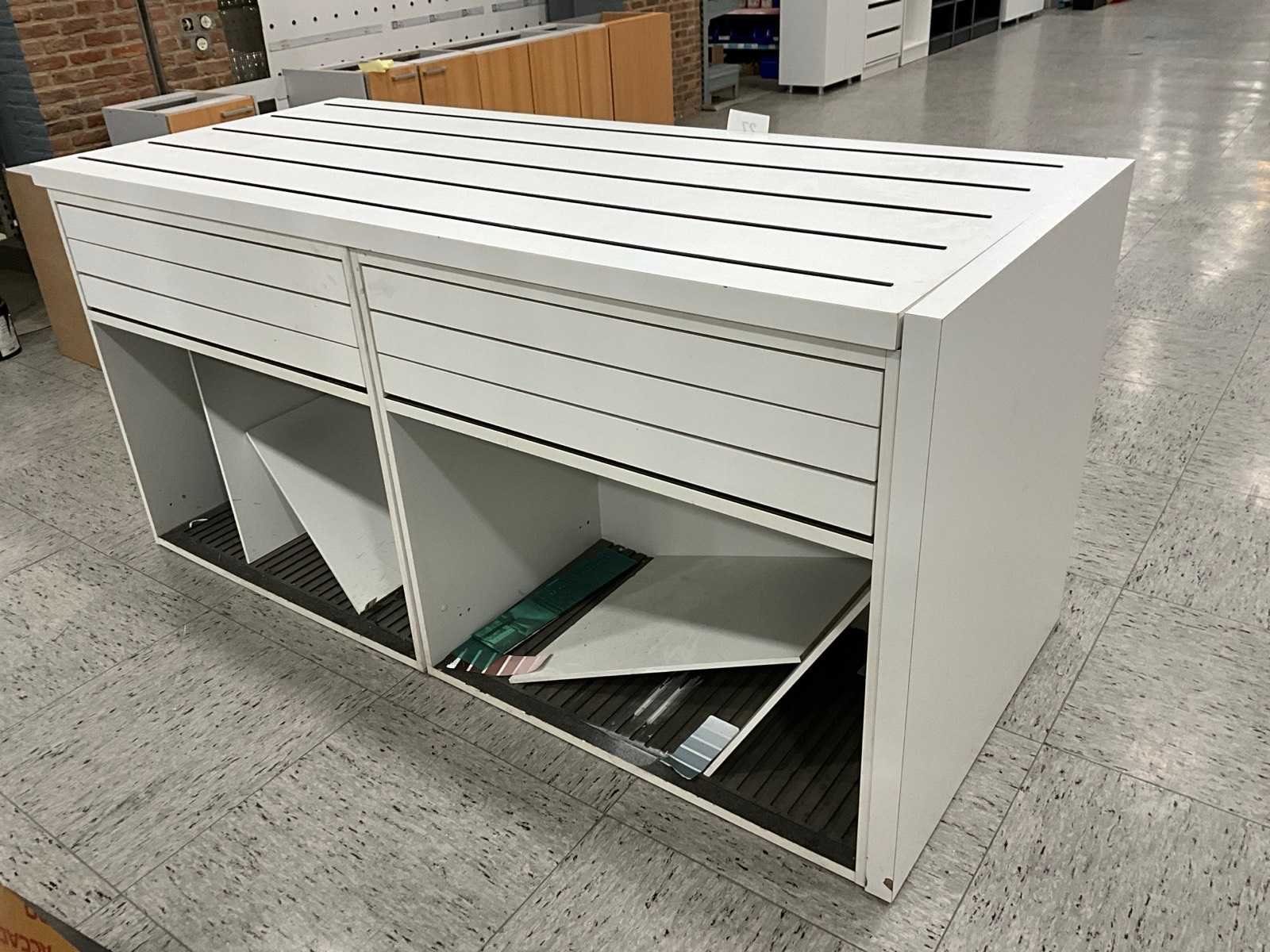 Voorzien van 6 laden. Compleet met 2 diverse opbergkasten. Non Breedte: 215cm Hoogte: 100cm Diepte: 91cm Materiaal: Hout