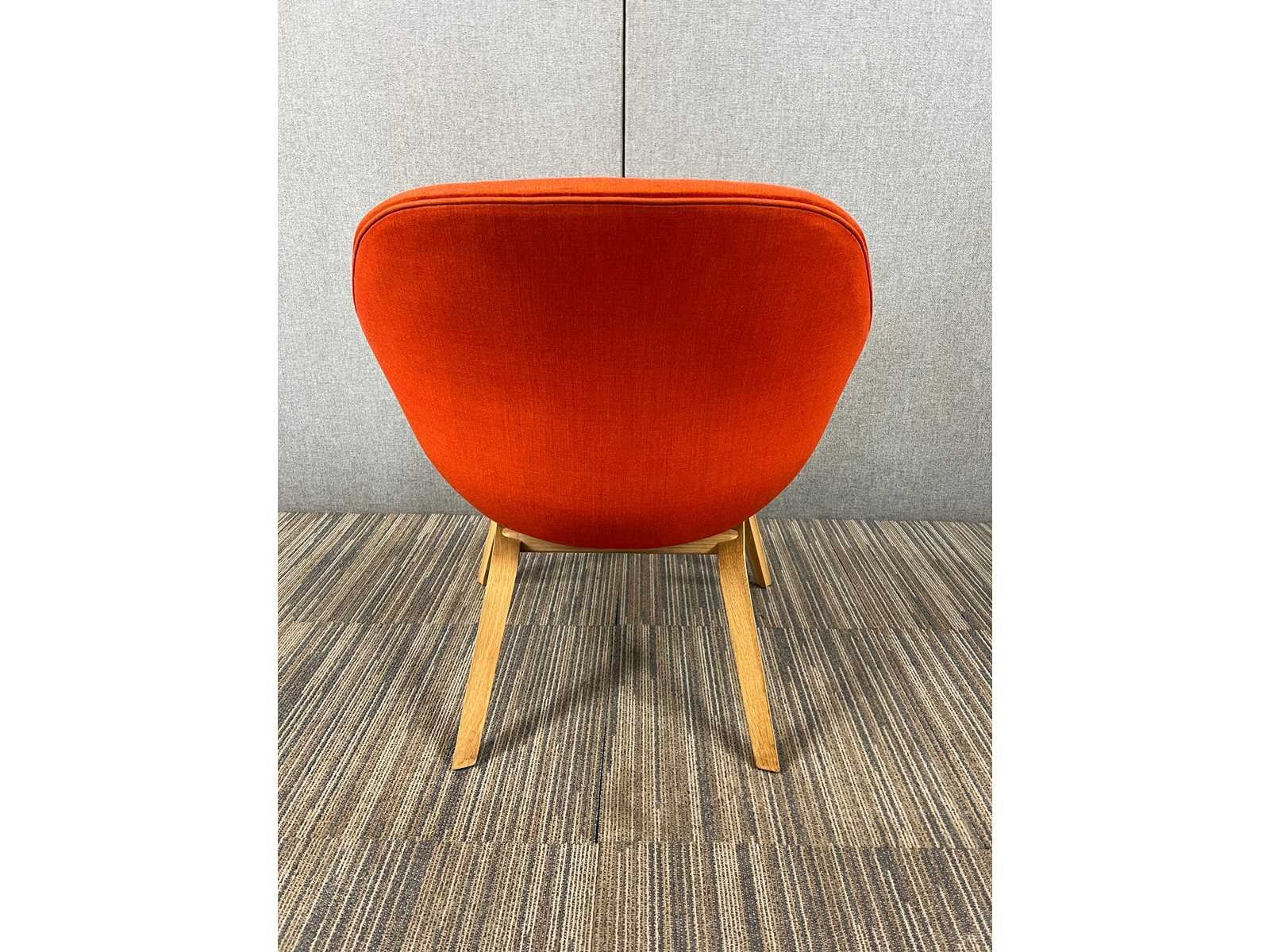 HAY's About A Lounge Chair Low AAL 82 is ontworpen door Hee Welling. Deze comfortabele loungestoel heeft een fijne hoge rugleuning. Het onderstel is gemaakt van massief eiken en de stoel is bekleed met stof. Hee Welling is een meubelontwerper met zijn eigen studio in Kopenhagen. Hij studeerde aan de University of Art and Design in Helsinki en heeft een master in meubeldesign aan The Royal Danish Academy of Fine Arts. Nu werkt hij op het gebied van meubelen, interieur, verlichting en industrieel design. Hij maakt objecten die simpel maar bruikbaar zijn, met een eerlijk en zorgvuldig materiaalgebruik. Om zijn ontwerpen een unieke en sterke identiteit te geven, moeten de objecten een doel en een heldere visuele expressie hebben. Voor HAY ontwierp hij de About A-serie en de Hee (Lounge) Chair en Bar Stool. Nee Merk: HAY Model: AAL82 Kleur: oranje Gewicht: 25kg Breedte: 76cm Hoogte: 81cm Diepte: 73cm