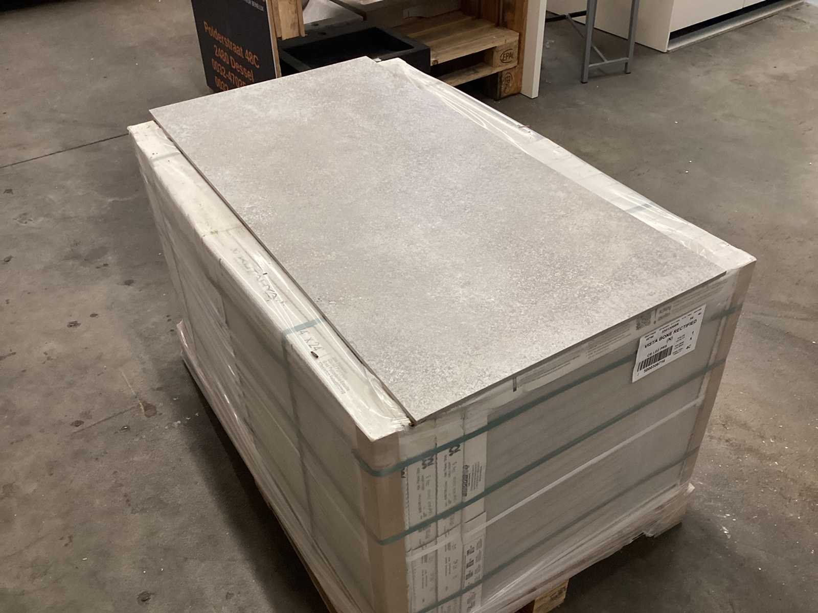 Nee Merk: Procasa Kleur: Greige Afwerking: Mat R10 Lengte: 600mm Breedte: 1200mm Dikte: 10mm Materiaal: Keramiek Type: Vloertegel Model: Florence Aantal m² per verpakking: 1,44m² Aantal pakken: 48 Totaal oppervlakte: 69.12m² Totaal gewicht: 1400kg