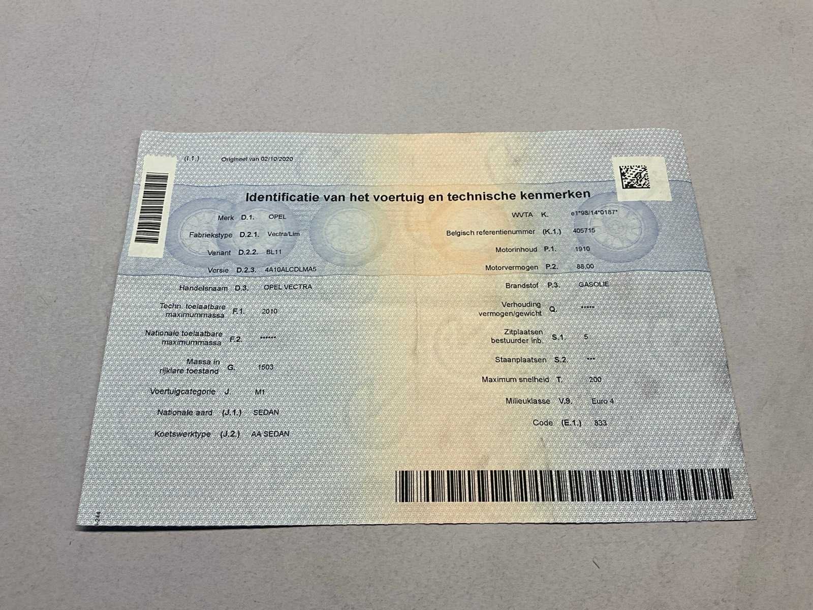 Nee Merk: Opel Type: Vectra Bouwjaar: 2004 Afgelezen kilometerstand: 202555km Cilinderinhoud: 1910cc Vermogen (kW): 88kW Brandstof: diesel Chassisnummer: W0L0ZCF6941083557 Datum eerste toelating: 03/05/2004 Aantal zitplaatsen: 5 Transmissie: Handgeschakeld Emissieklasse: Euro4 Aantal deuren: 4 Aantal sleutels: 2 Nationaliteit documenten: Belgisch Start en rijdt: Neen startinformatie : Start en rijdt niet Zichtbare schade: Zie foto’s Vavato voert geen technische keuring uit.: true Inschrijvingsbewijs - deel 1 : Aanwezig Inschrijvingsbewijs - deel 2: Niet aanwezig