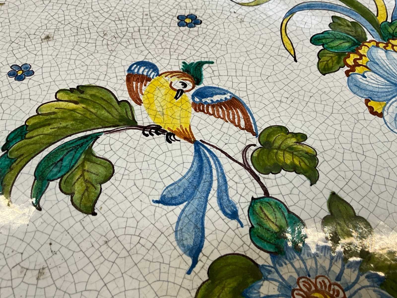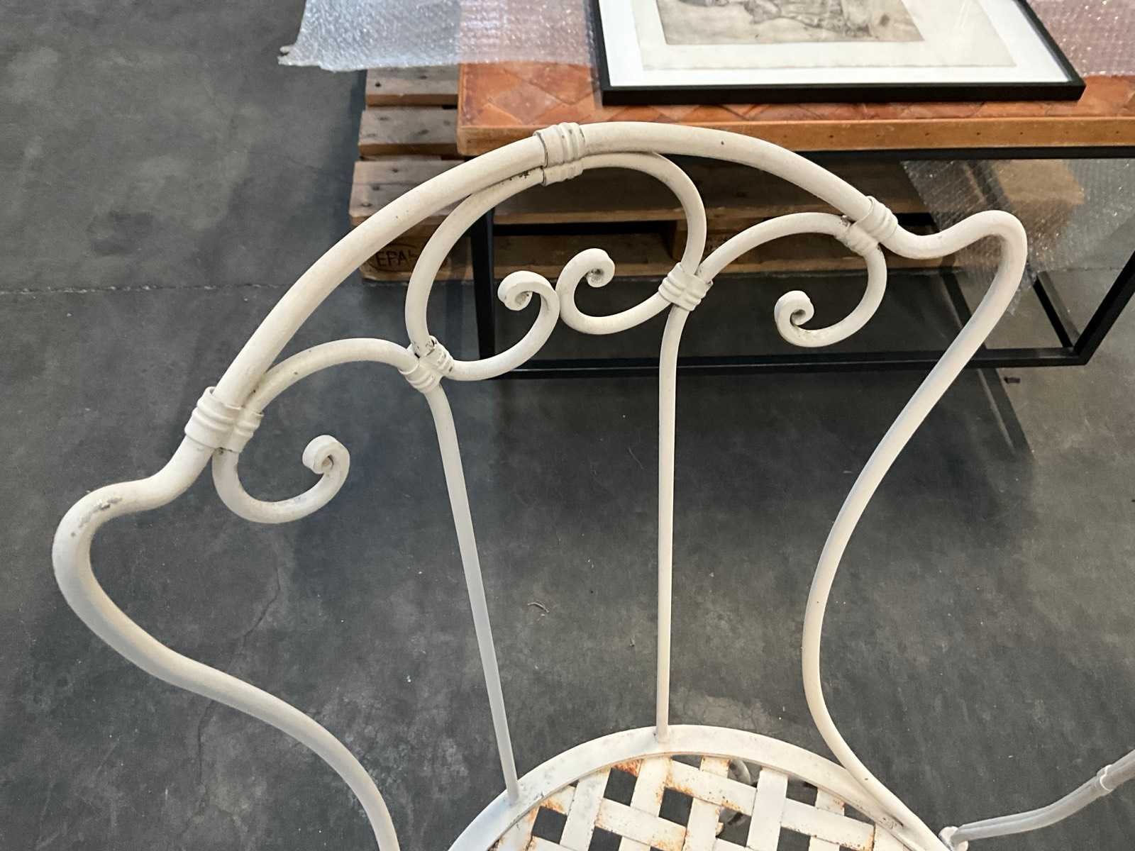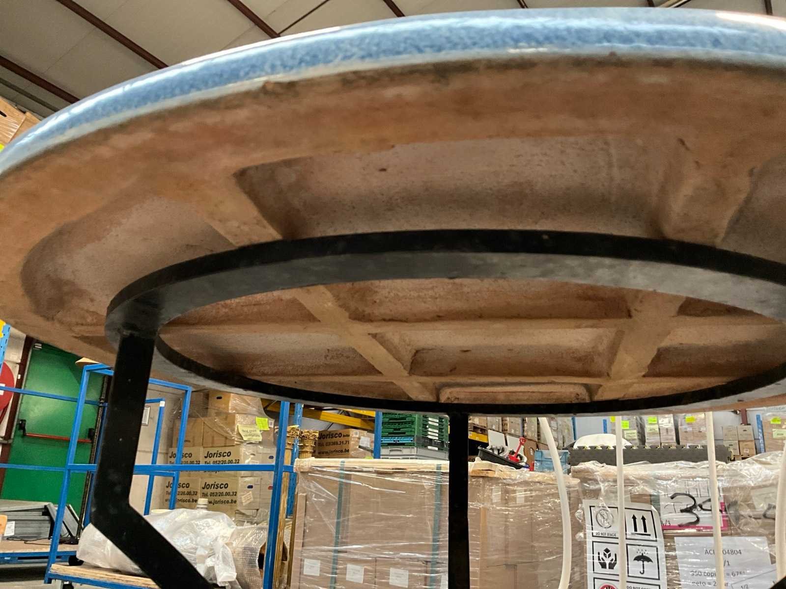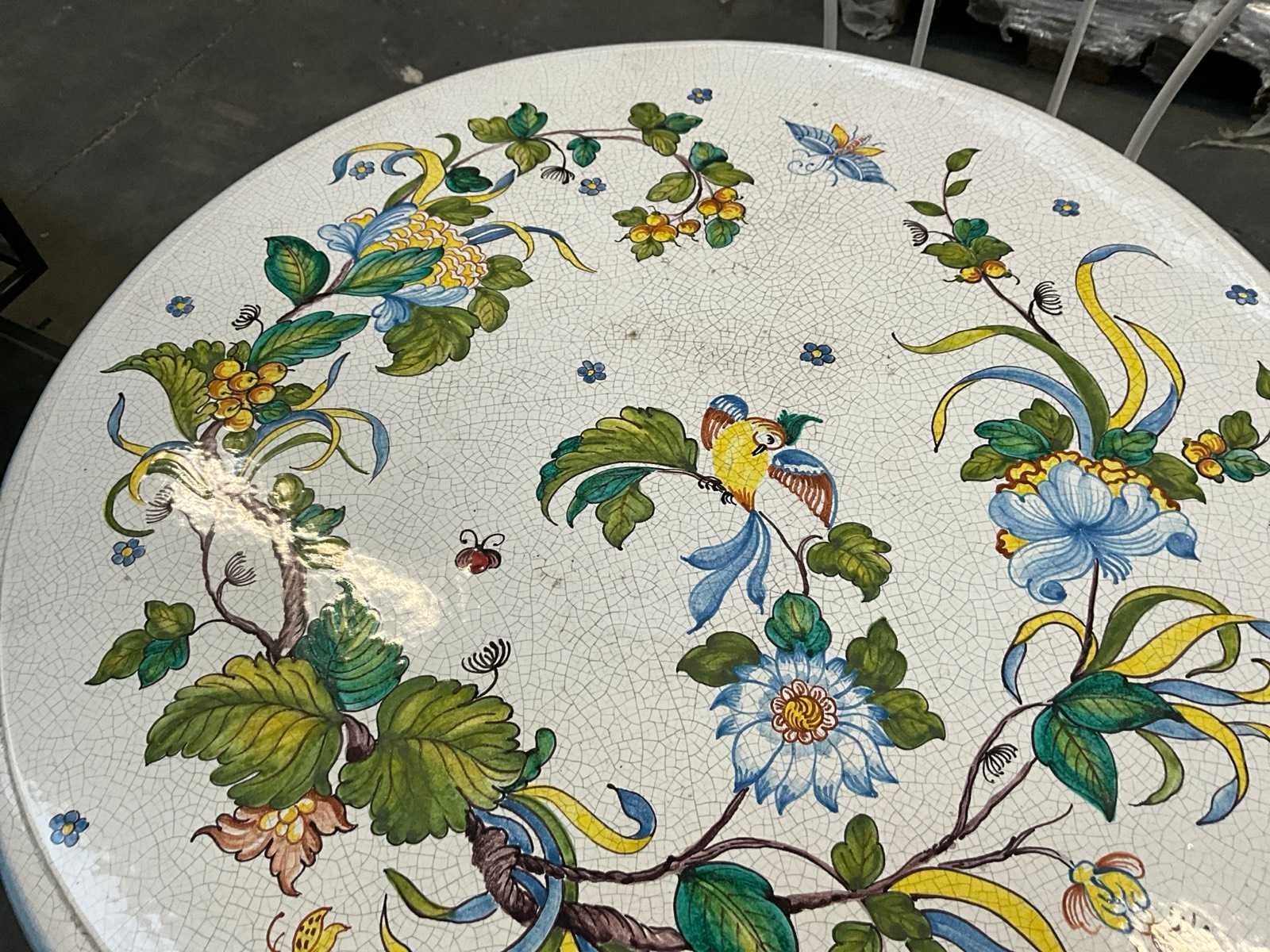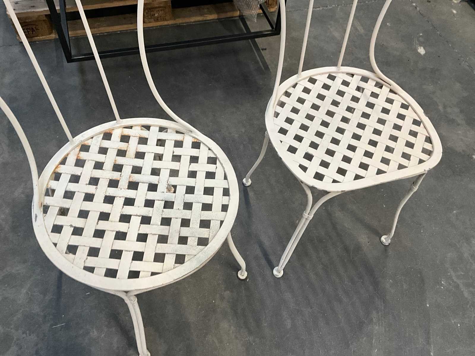 Voorzien van handbeschilderd lavasteen blad, smeedijzeren onderstel, 2x metalen stoel Nee
