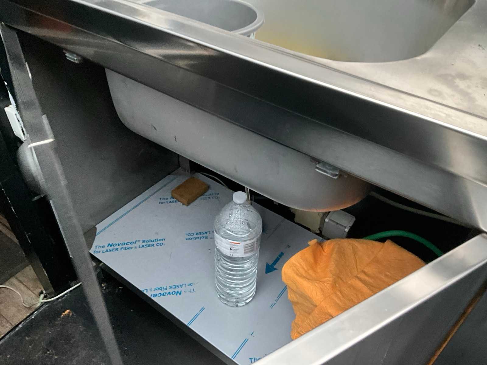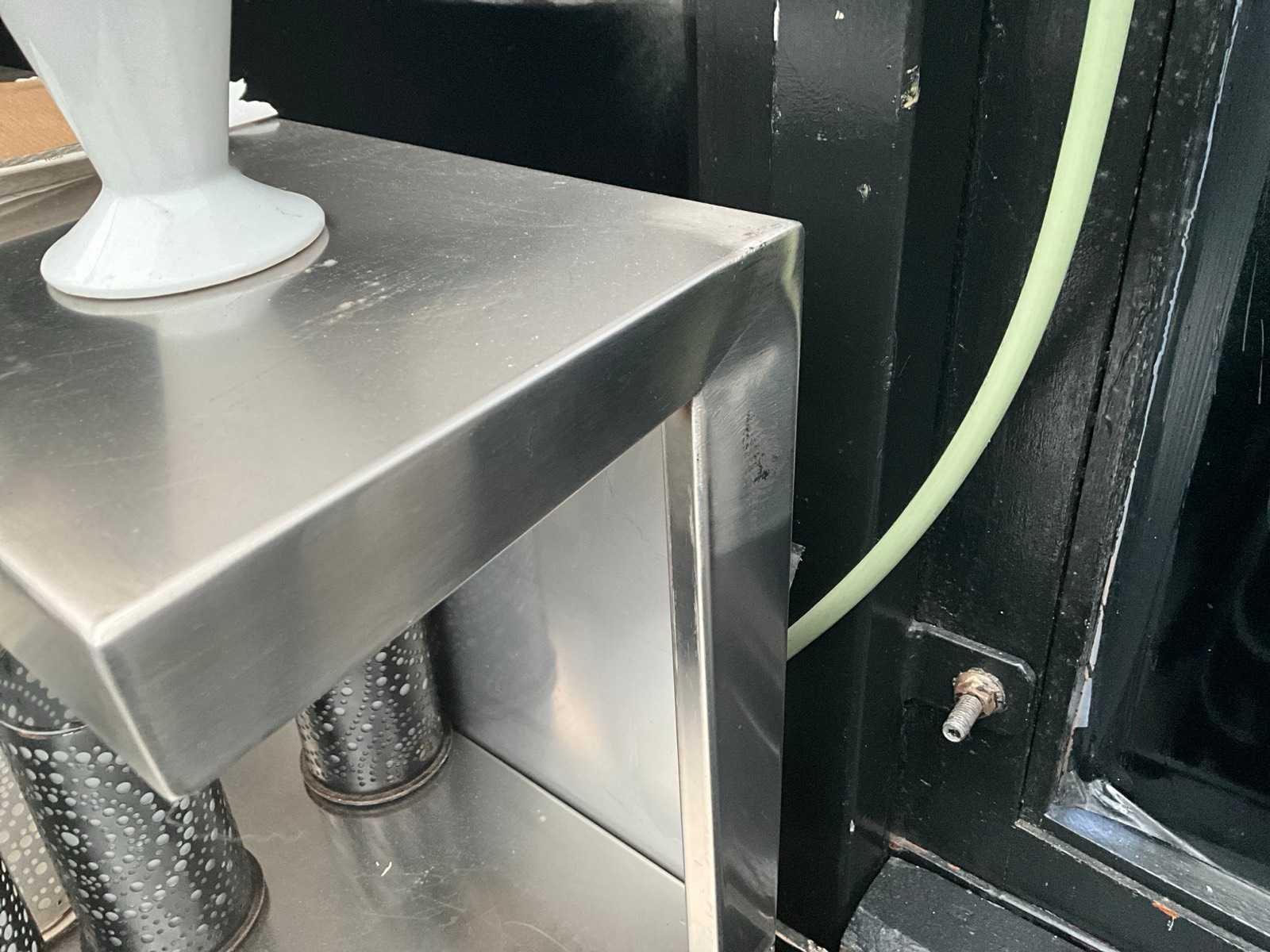 Spoeltafel afmetingen 90x50x200cm, werkbank afmetingen 90x50x120cm. Nee