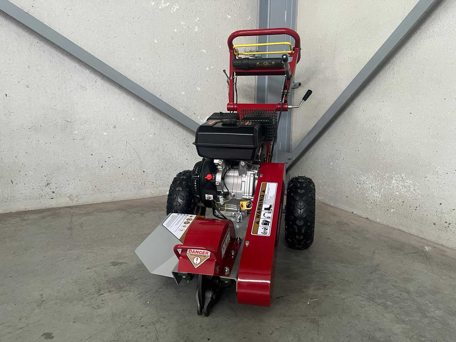 <ul> <li><strong>stobbenfrees</strong></li> <li><strong>motor:</strong> Rato 4-takt benzine</li> <li><strong>motorinhoud:</strong> 420 cc</li> <li><strong>motorvermogen:</strong> 8,5 kW</li> <li><strong>starten:</strong> trekstarter</li> <li><strong>aandrijving:</strong> 2x V-riem</li> <li><strong>koppeling:</strong> centrifugaalkoppeling</li> <li><strong>rem:</strong> trommelrem</li> <li><strong>freeswieldiameter:</strong> 300 mm</li> <li><strong>freeswieldikte:</strong> 12 mm</li> <li><strong>tanden:</strong> 8 tanden met carbide tip</li> <li><strong>freeshoogte:</strong> 600 mm</li> <li><strong>freesdiepte:</strong> 235 mm</li> <li><strong>gewicht:</strong> 134 kg</li> <li><strong>let op:</strong> <ul> <li>Toonzaalmodel, lichte gebruikssporen mogelijk.</li> <li>Controleer montage en voeg olie en brandstof toe. </li> <li>Smeer bewegende delen voor gebruik.</li> </ul> </ul> Nee Merk: Rato