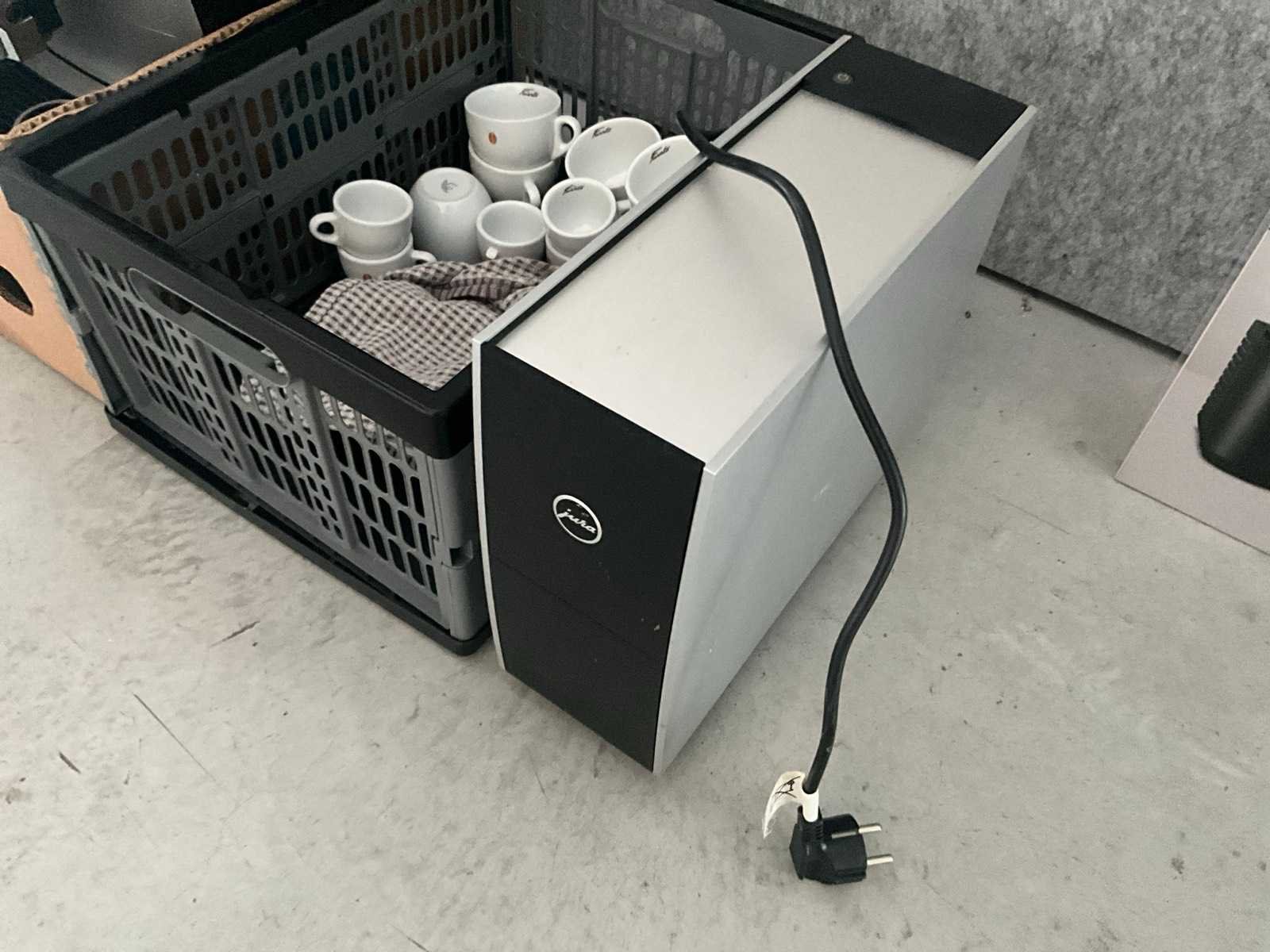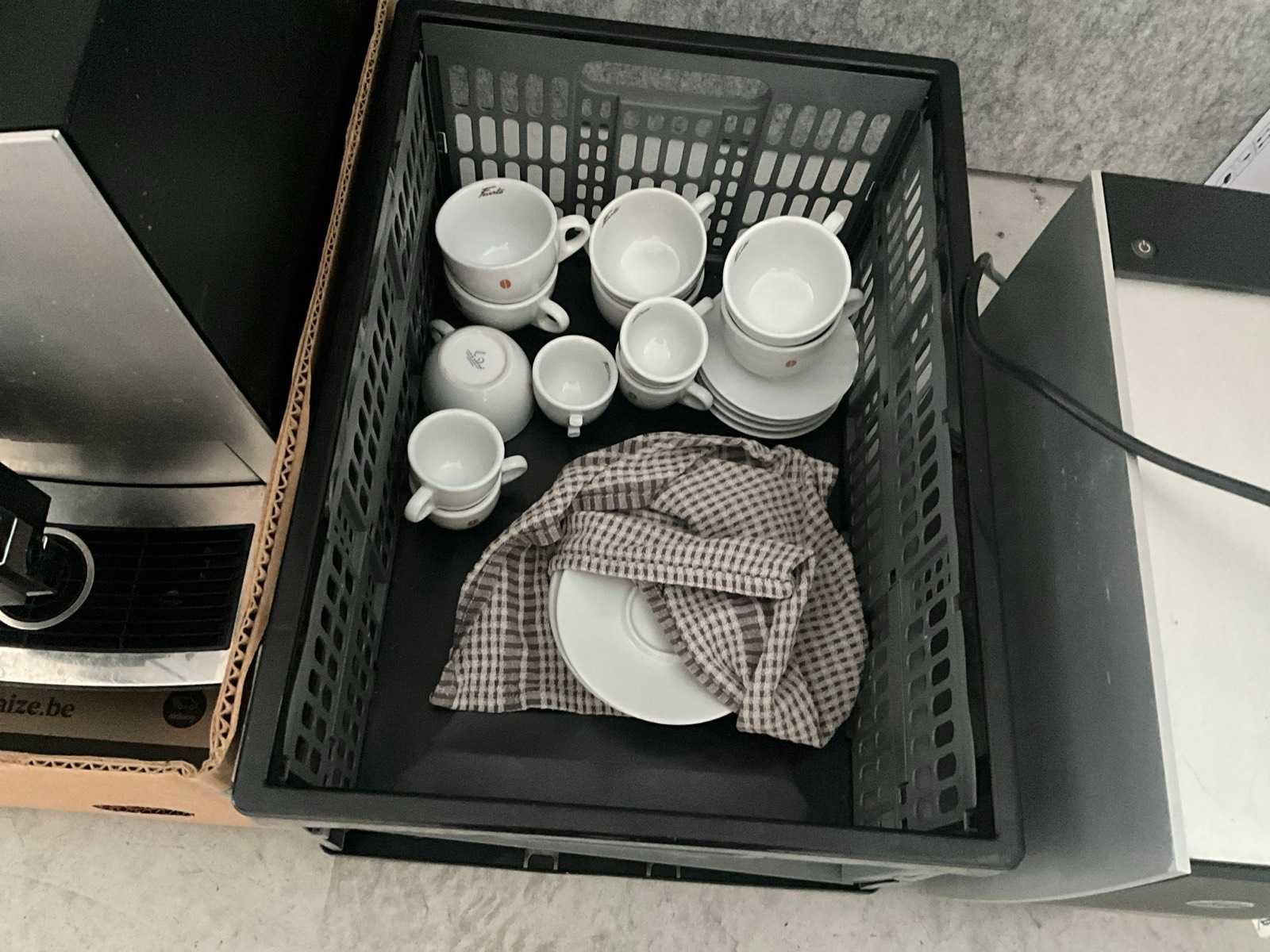 Compleet met enige diverse tassen en ondertassen in opklapbare pvc opbergbak en bijhorend warmhoudend opbergtoestel voor koffietafel. Nee Merk: JURA Type: X8 Platin 739 Totale afmeting L: 460mm Totale afmeting Breedte: 380mm Totale afmeting Hoogte: 480mm