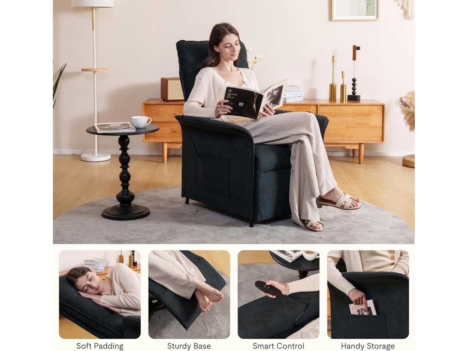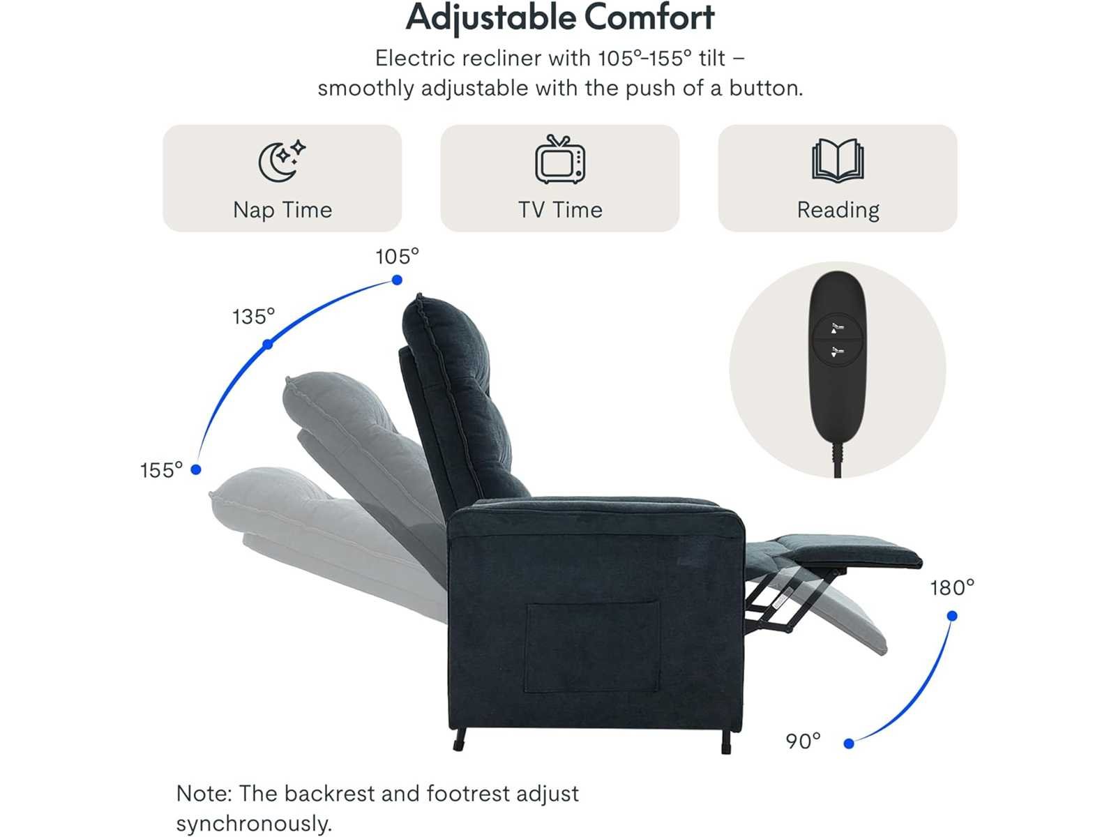 Merknaam FLEXISPOT Kleur Donkergrijs Productafmetingen: 82P x 77B x 104H centimeter Size Lite Rugstijl Massieve Rug Speciale functie Armleuning, ergonomisch, verstelbare hoogte Aantal eenheden 1,0 eenheid Aanbevolen toepassingen voor ontspanning Maximumgewichtaanbeveling: 140 kilogram Moderne stijl BEEN- EN RUGVERSTELLING: Onze elektrische stoel maakt gebruik van gelijktijdige been- en rugaanpassingstechnologie om het tillen en neerzetten met een knop te regelen. Met een breed bereik van 125°-165° hoekregelaars kun je zitten, liggen of slapen wanneer je wilt met één klik, en doen wat je wilt op de stoel. ERGONOMISCH ONTWERP: Drie segmenten van de rugleuning, zitkussen en voetsteun volgen de rondingen van het menselijk lichaam. Of je nu zit of ligt, je krijgt goede ondersteuning, waardoor je thuis vermoeidheid kunt elimineren en je lichaam en geest kunt ontspannen. STERK & DUURZAAM: 140 kg draagend frame, sterk en drukbestendig. Meerdere belastingstests worden uitgevoerd om dagelijkse gebruiksomgevingen te simuleren en zo echte duurzaamheid te garanderen. Met een stille motor brengt het een comfortabele ervaring in je leven. HOOGWAARDIGE MATERIALEN: De fauteuil is gemaakt van geselecteerde imitatie katoenen en linnen stoffen, gecombineerd met de huidvriendelijke, ademende en slijtvaste eigenschappen. Het interne gebruik van een spons met hoge dichtheid, rekening houdend met het gevoel van inpakken en ondersteunen, kan elke keer dat je gaat zitten langdurige verlichting brengen om weer op te komen. BEVAT MEERDERE SCÈNES: Dankzij het moderne ontwerp past onze fauteuil in veel taferelen, of het nu een thuis- of kantooromgeving is, hij kan perfect worden geïntegreerd. Het neemt slechts 0,5 vierkante meter in beslag als het wordt opgeslagen, waardoor er decoratieruimte bespaard wordt. Non