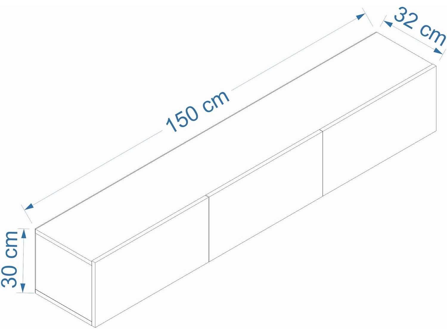 Technische details: Materiaal: 100% melamine Afmetingen: breedte 150 cm, hoogte 30 cm, diepte 32 cm Kleur: wit Makkelijk schoon te maken en te onderhouden. Ruime opslag voor mediabenodigdheden Robuuste en duurzame constructie. Non