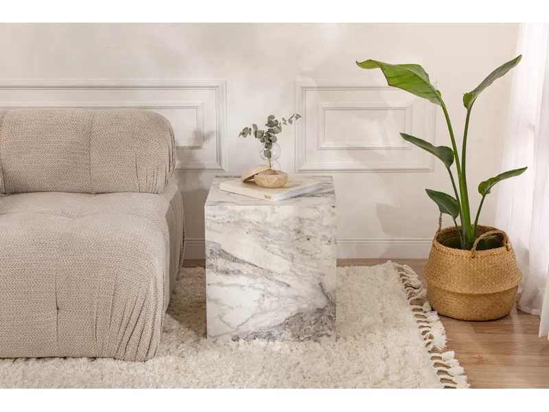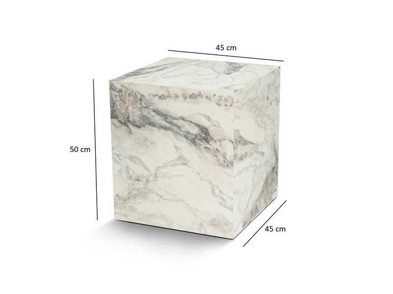 Productgegevens: Model: Küp Freesia. Hoofdmateriaal: 100% MDF. Topafwerking: Freesia-marmer. Dikte van de bovenkant: 18 mm. Afmetingen: 45 cm breed, 50 cm hoog en 45 cm diep. Vorm: Vierkant. Stijl: modern en minimalistisch. Non