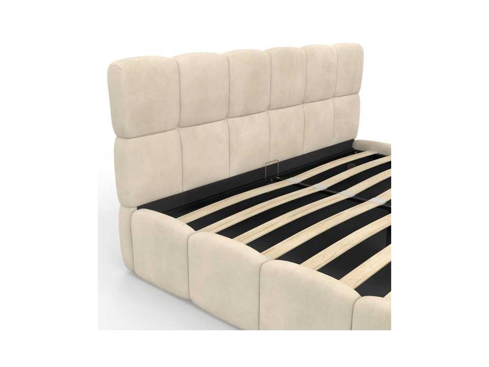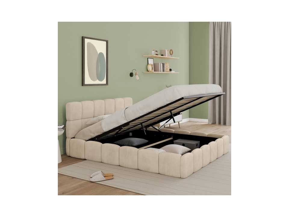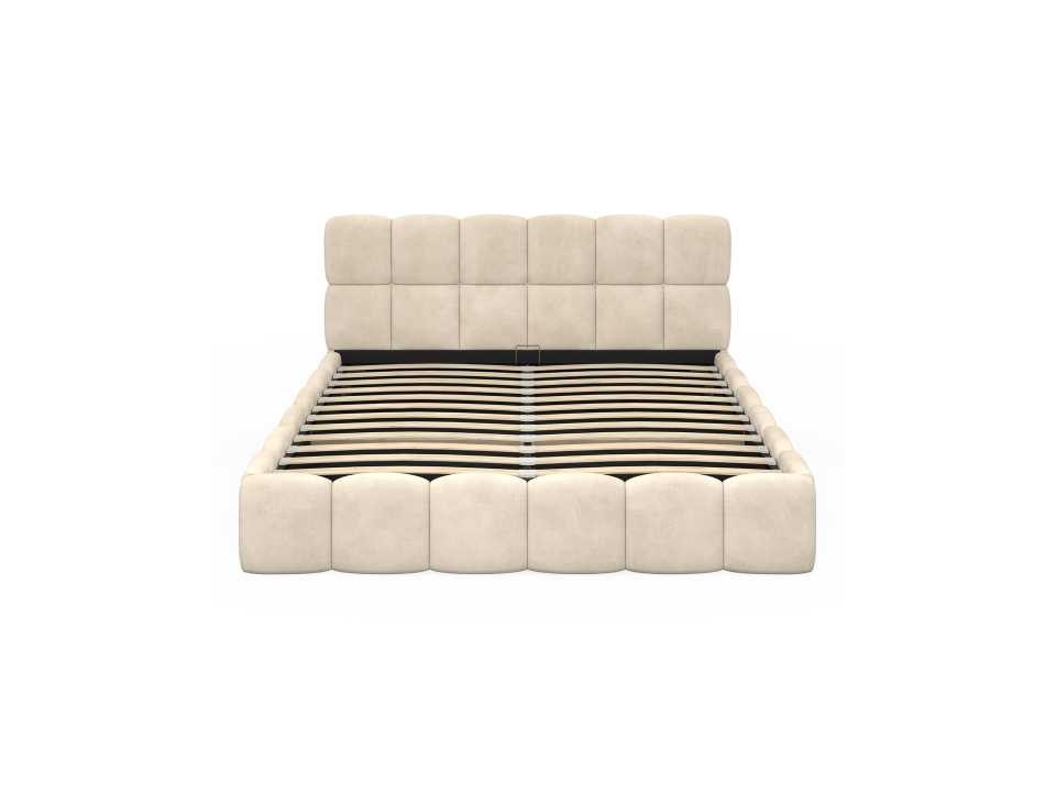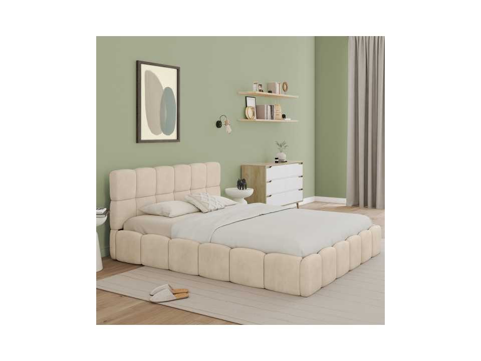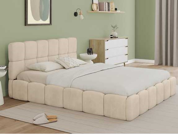 Beige fluwelen borstbed met bedbasis en hoofdeinde 160x200m