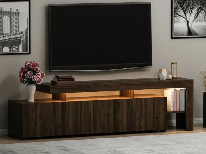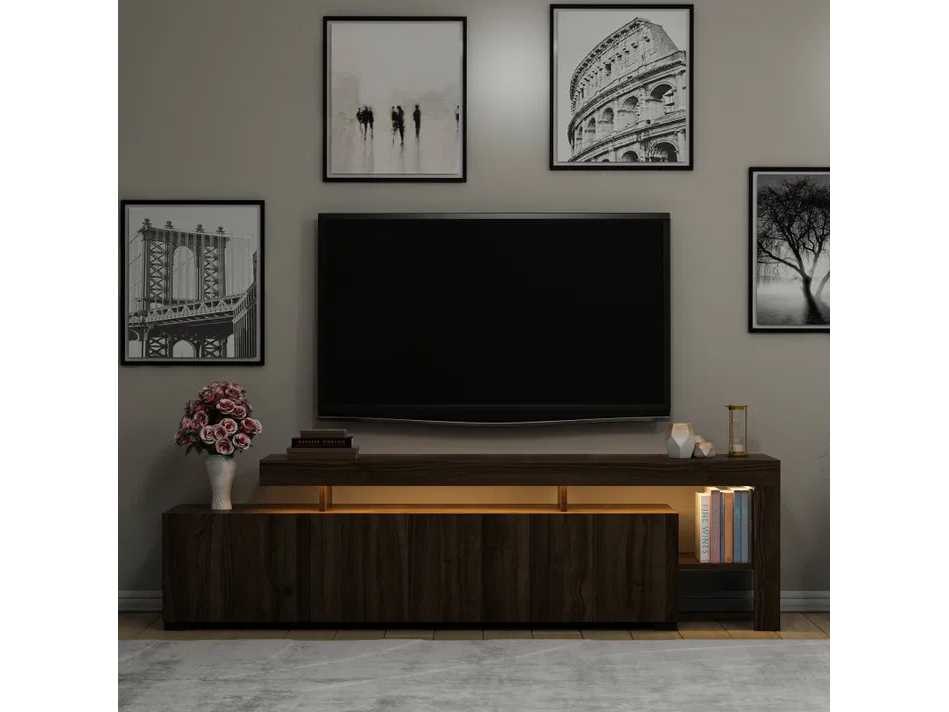 Tv-meubel met led-verlichting in melamine en pvc, walnootafwerking forme