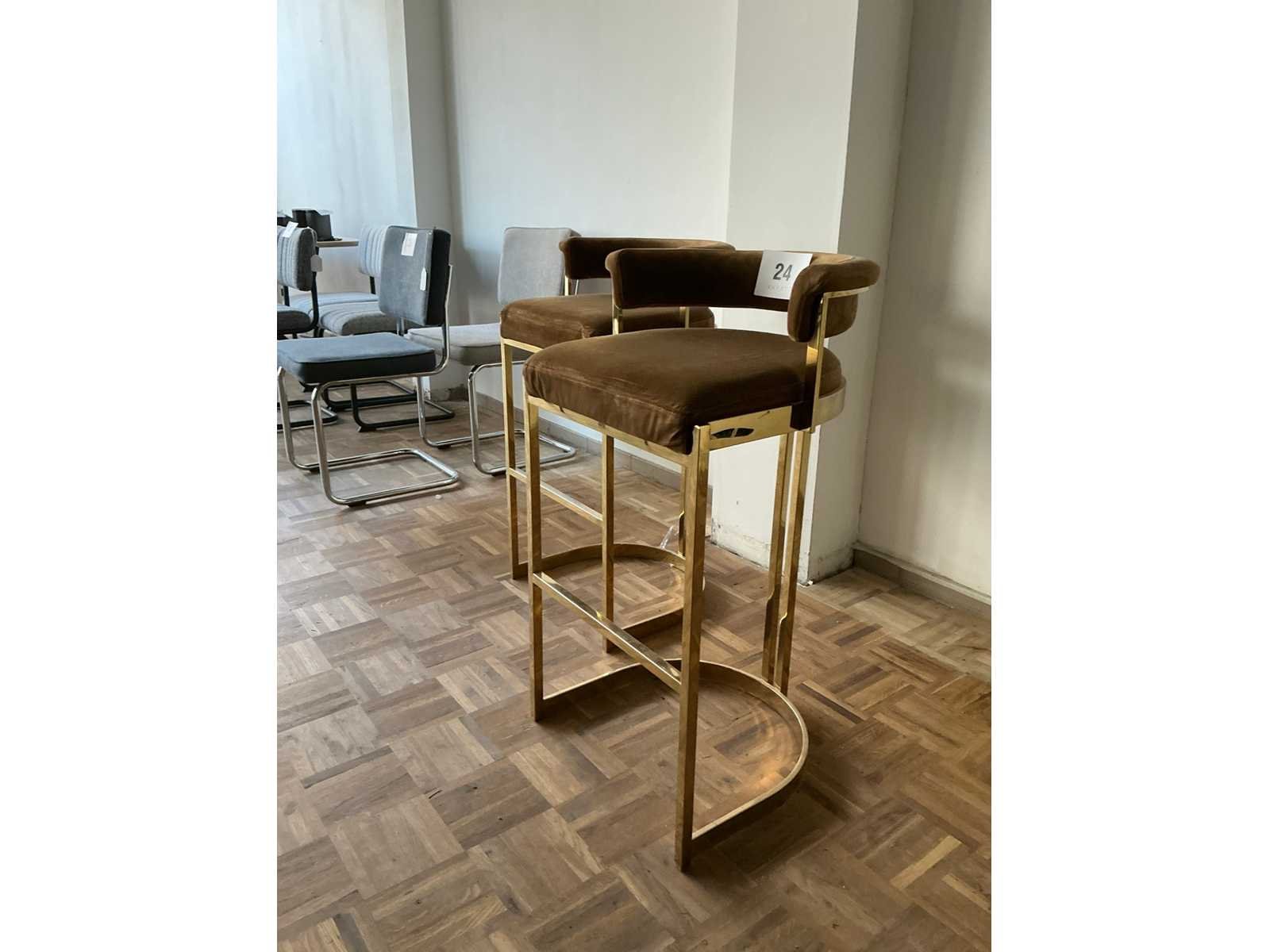 Met stoffen bekleding en chrome onderstel, met een zithoogte van afmeting circa 65 cm Nee