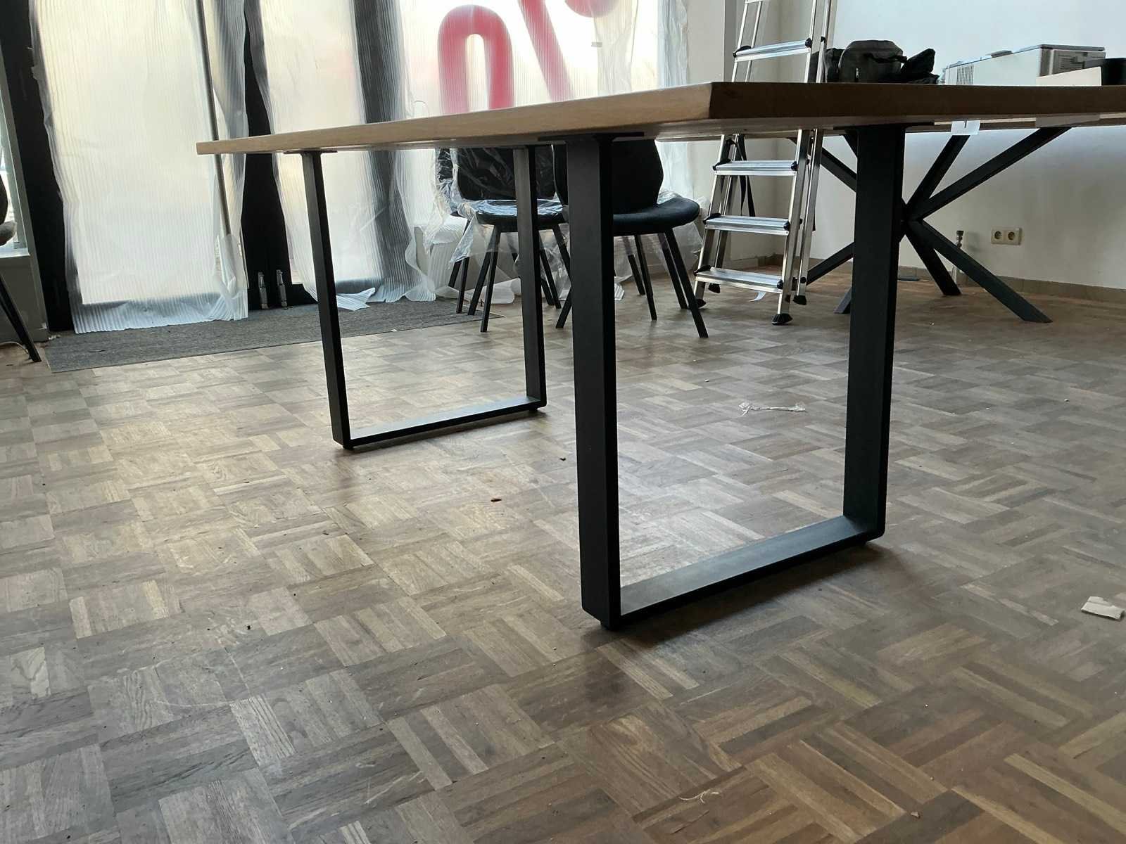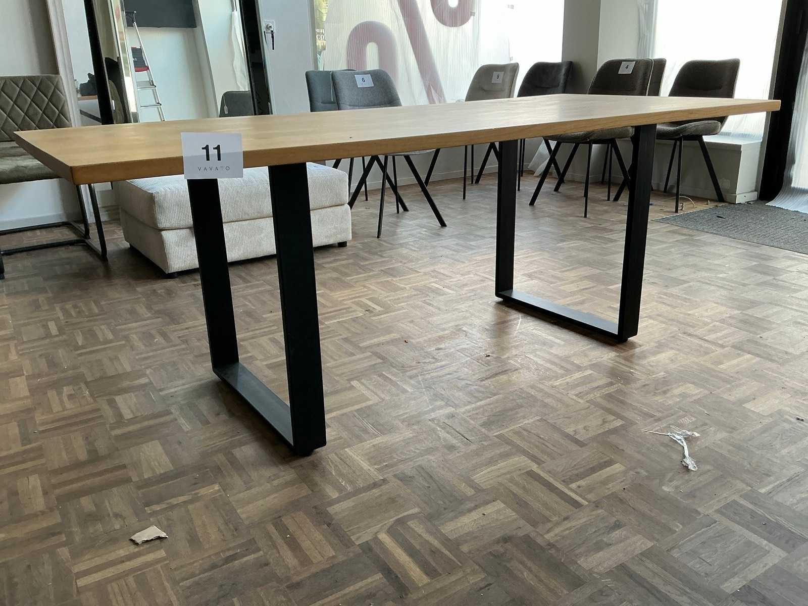 Voorzien van houten bovenblad en metalen onderstel met afmeting circa 200 x 90 x 75 cm Nee