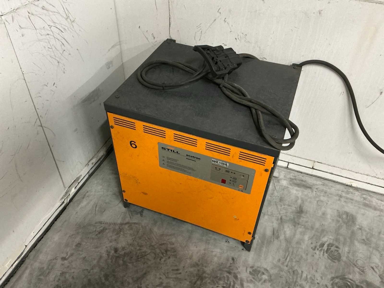 Compleet met acculader Still Ecotron Nee Merk: Still Type: RX20-15 Bouwjaar: 2008 Brandstof: Elektrisch Mast: Single Soort band: Volrubber banden Afgelezen urenstand: 3636 Accu lader: true Side-shift: true Eigen gewicht: 1971kg Hefvermogen: 1500kg Lepellengte: 1200mm Hefhoogte: 3100mm