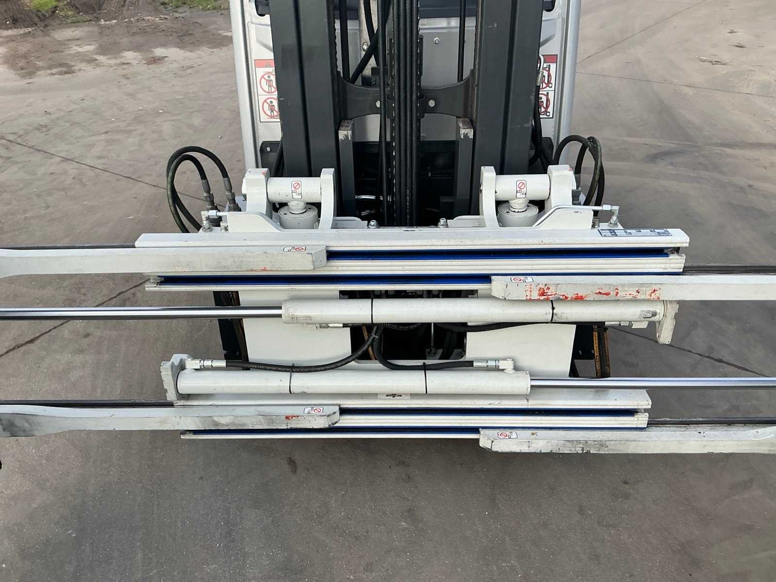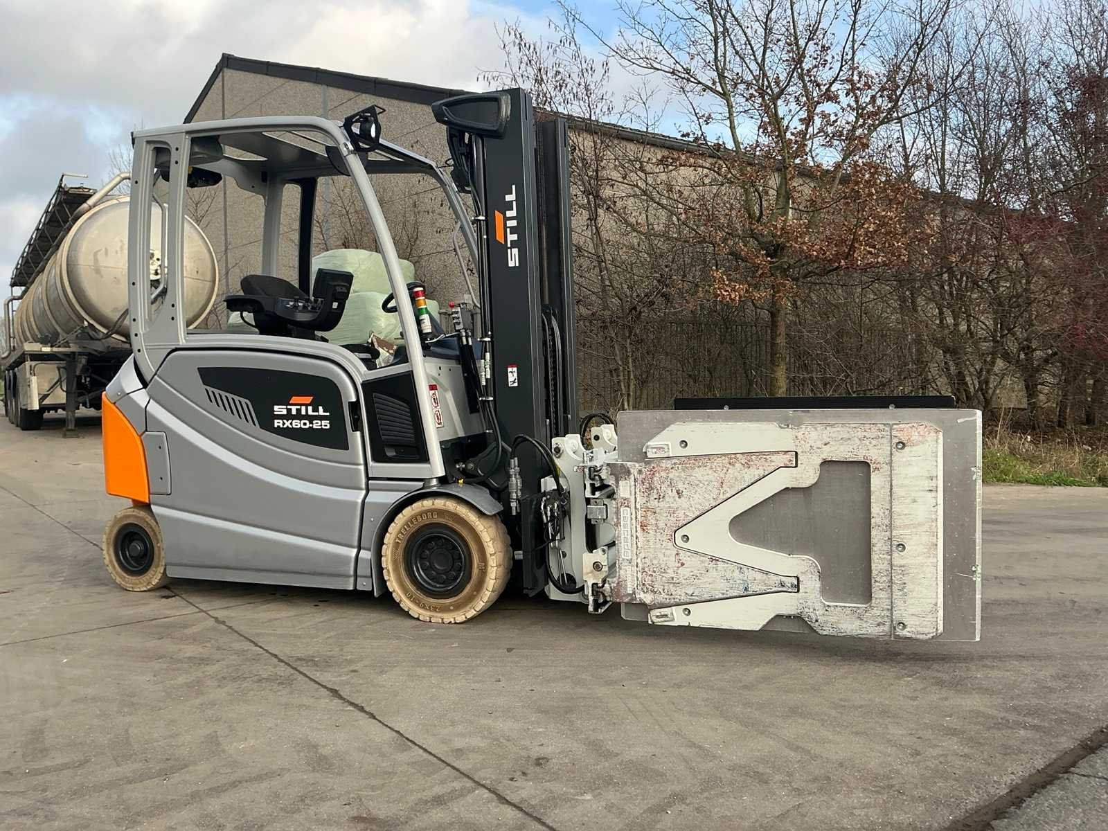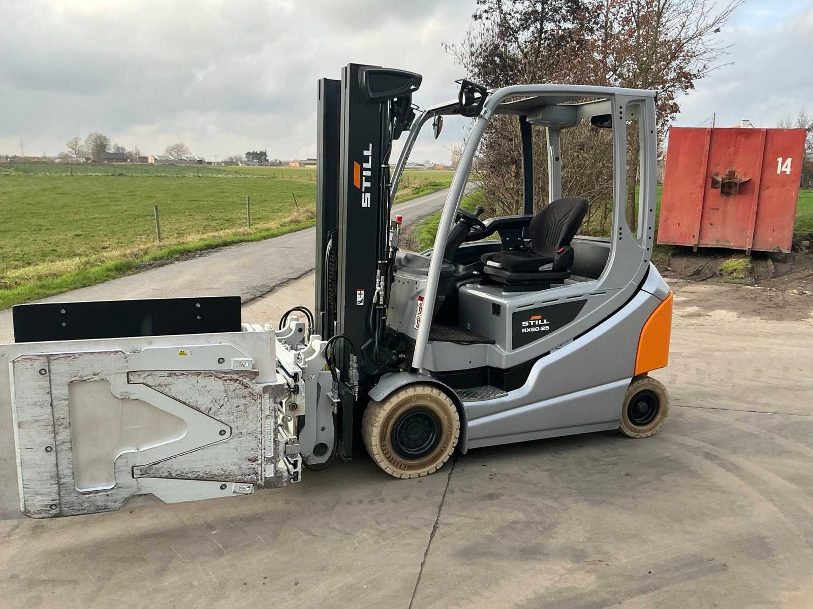 Cascade Klem met druk regeling en voorover kippen , 5 valven , led werklichten , blue spot , flash light , hoppecke trac air accu met passende lader Nee Merk: Still Type: RX60-25 Bouwjaar: 2020 Serienummer: 516301X00539 Brandstof: Elektrisch Mast: Triple Soort band: Volrubber banden Aantal wielen: 4 Afgelezen urenstand: 4500 Accu lader: true Side-shift: true Roterend vorkenbord: true Hydraulisch verstelbare lepels: true Triple mast: true Eigen gewicht: 5000kg Hefvermogen: 2500kg Lepellengte: 1400mm Min. hefhoogte: 0mm Max. hefhoogte: 4890mm Vol rubber banden: true Totale afmeting L: 3000mm Totale afmeting Breedte: 1150mm Totale afmeting Hoogte: 2250mm