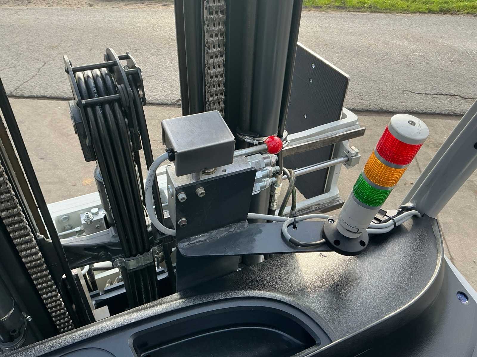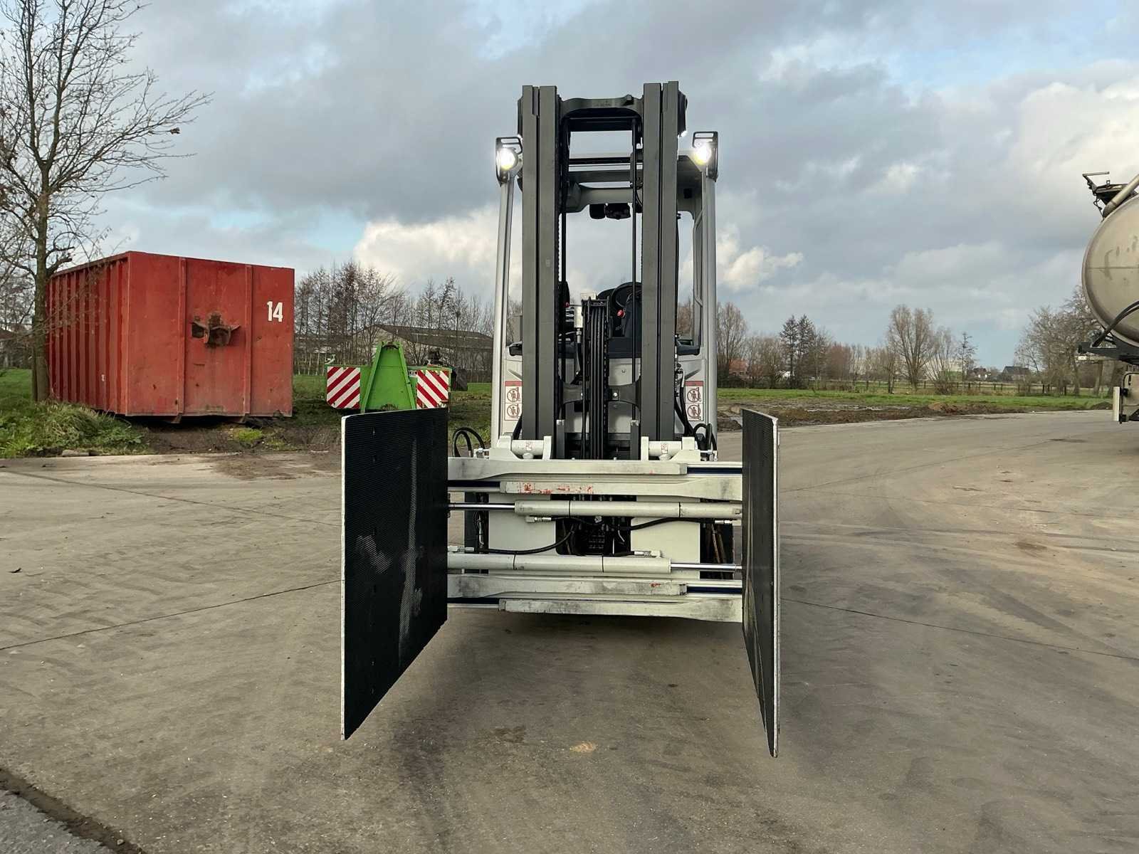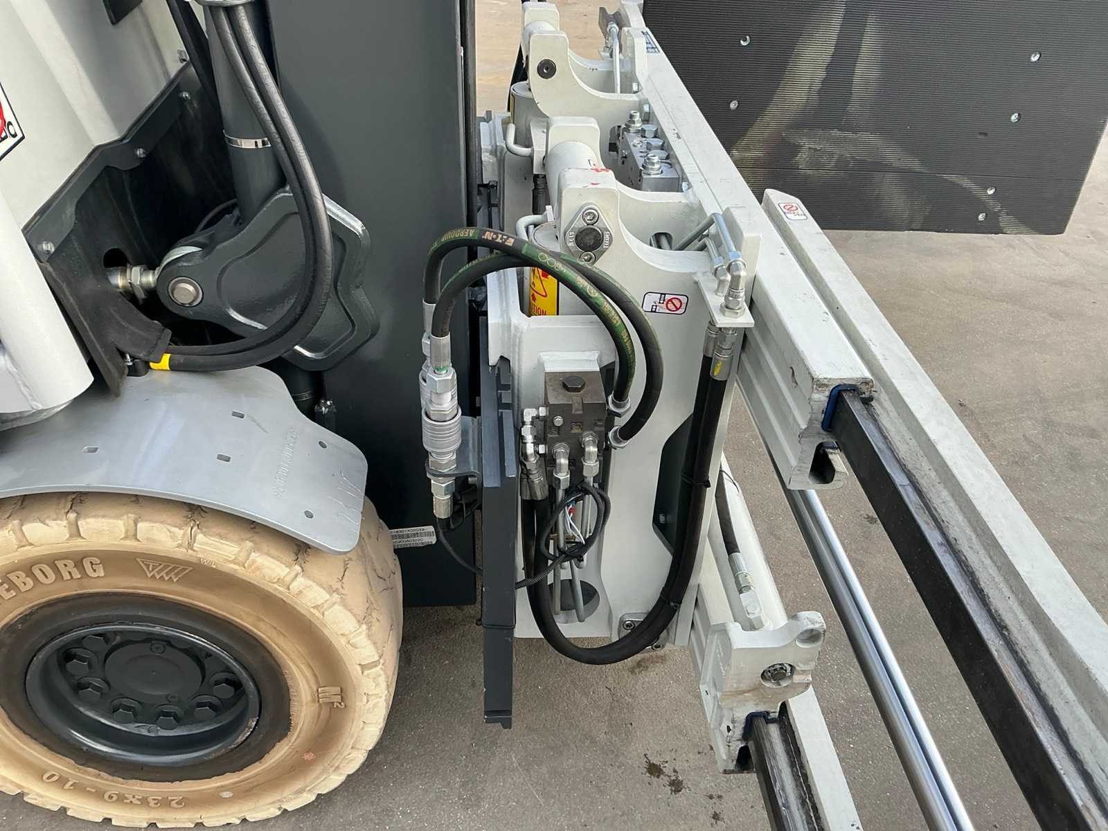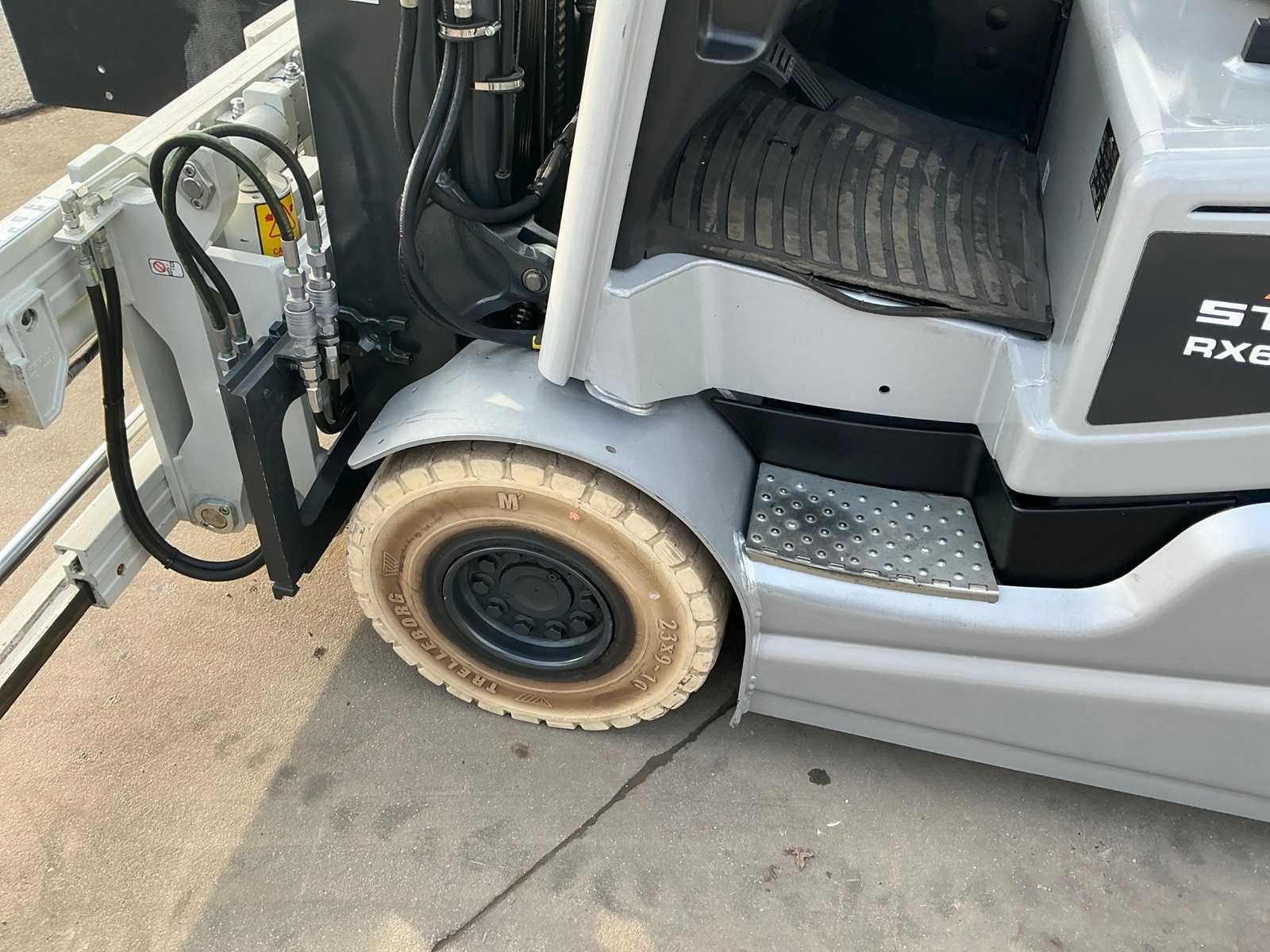 Cascade Klem met druk regeling en voorover kippen , 5 valven , led werklichten , blue spot , flash light , hoppecke trac air accu met passende lader Nee Merk: Still Type: RX60-25 Bouwjaar: 2020 Serienummer: 516301X00539 Brandstof: Elektrisch Mast: Triple Soort band: Volrubber banden Aantal wielen: 4 Afgelezen urenstand: 4500 Accu lader: true Side-shift: true Roterend vorkenbord: true Hydraulisch verstelbare lepels: true Triple mast: true Eigen gewicht: 5000kg Hefvermogen: 2500kg Lepellengte: 1400mm Min. hefhoogte: 0mm Max. hefhoogte: 4890mm Vol rubber banden: true Totale afmeting L: 3000mm Totale afmeting Breedte: 1150mm Totale afmeting Hoogte: 2250mm