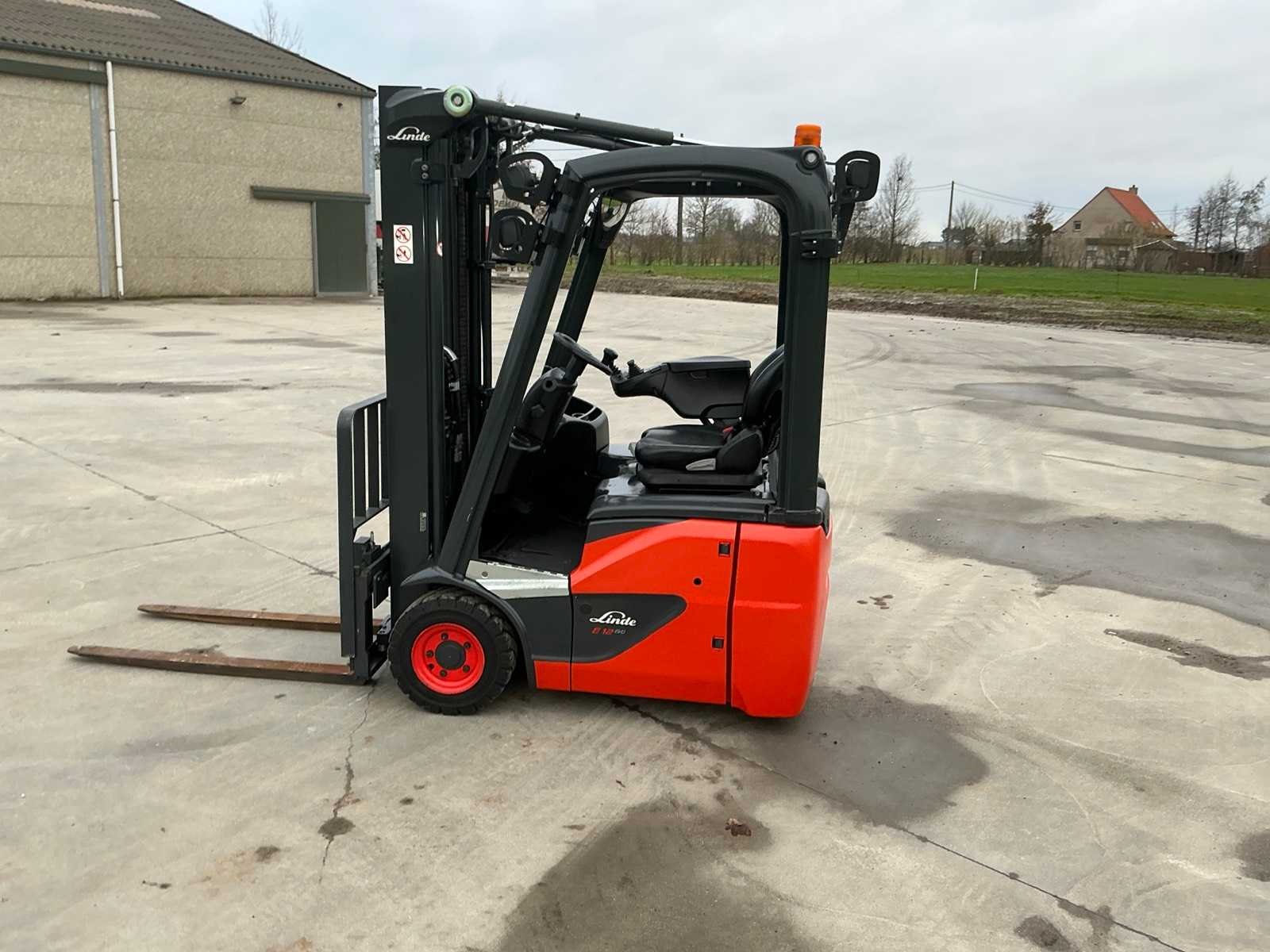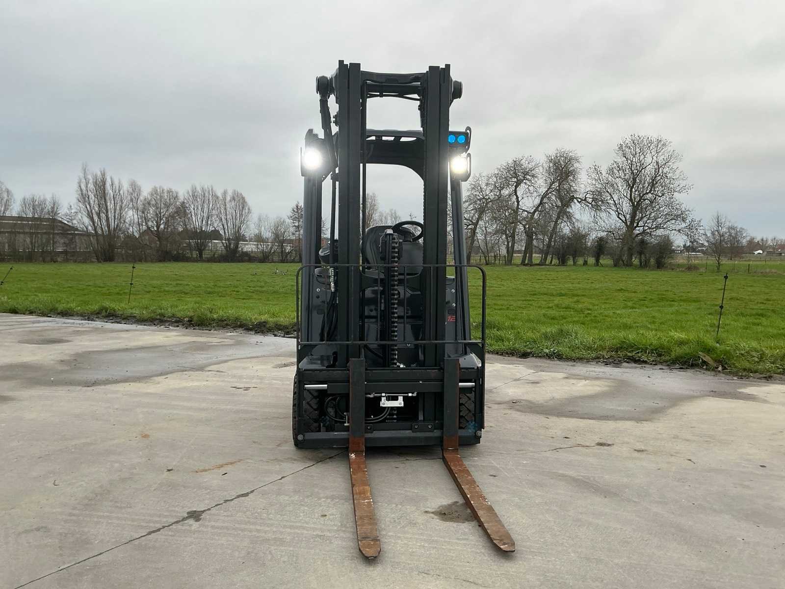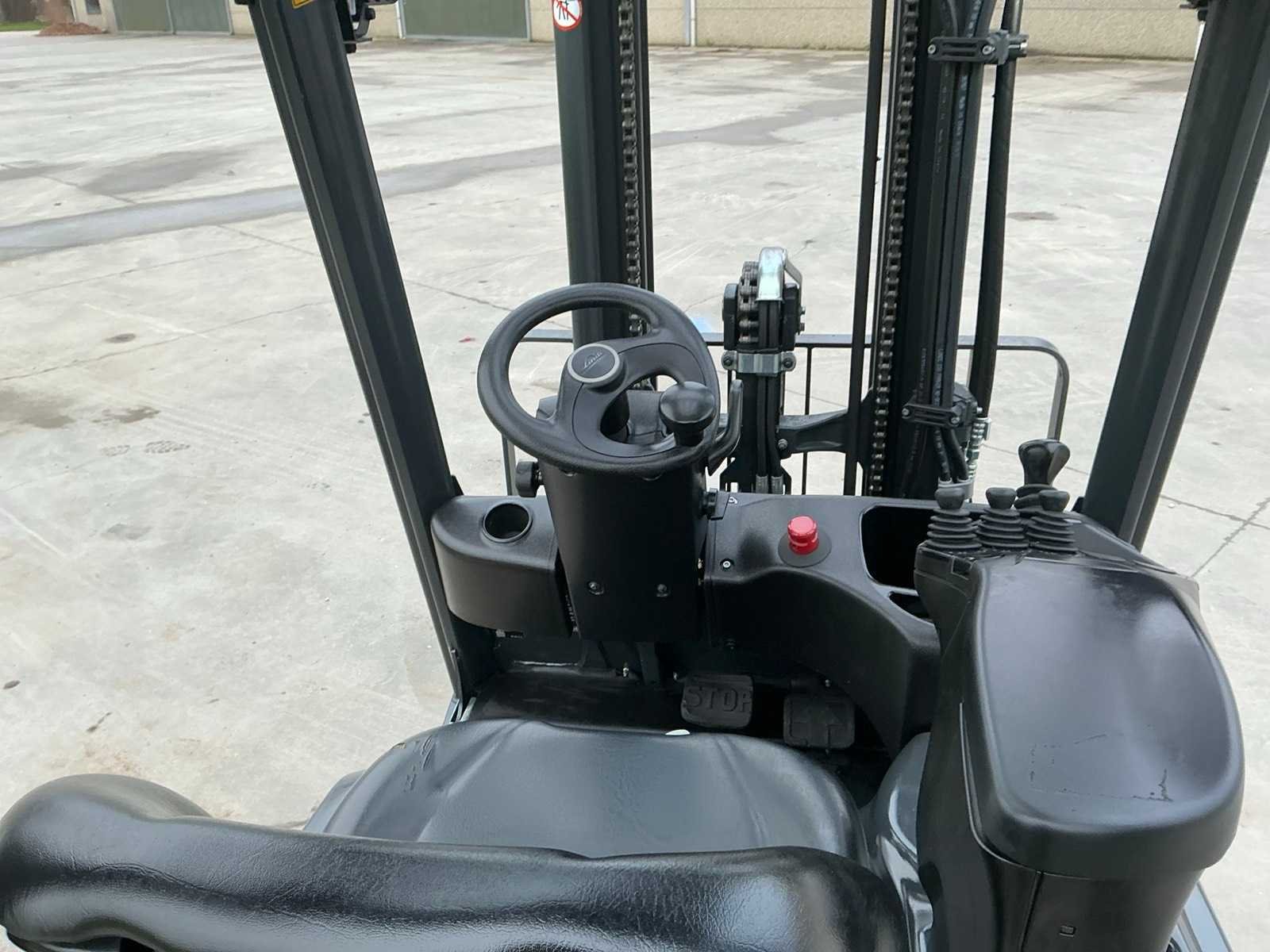 Linde accu met automatische vulling , led werklampen , blue spot voor en achter , flash light Nee Merk: Linde Type: E12 EVO Bouwjaar: 2019 Serienummer: H2X386V12317 Brandstof: Elektrisch Mast: Triple Soort band: Volrubber banden Aantal wielen: 4 Afgelezen urenstand: 1800 Side-shift: true Triple mast: true Eigen gewicht: 2973kg Hefvermogen: 1200kg Lepellengte: 1200mm Min. hefhoogte: 0mm Hefhoogte: 4620mm Vol rubber banden: true Totale afmeting L: 1800mm Totale afmeting Breedte: 1050mm Totale afmeting Hoogte: 2100mm Leveringsvoorwaarden: Gratis op vrachtwagen