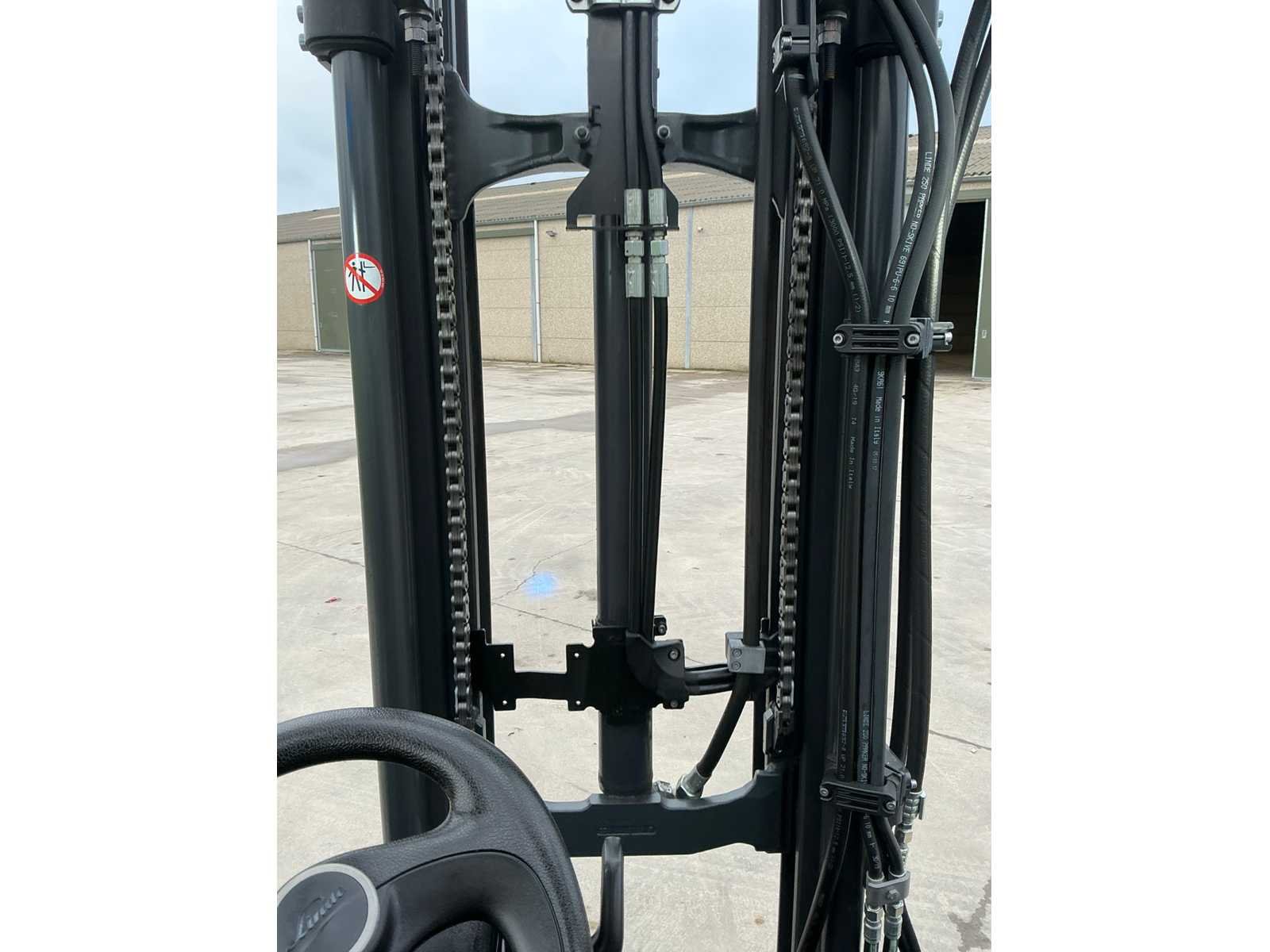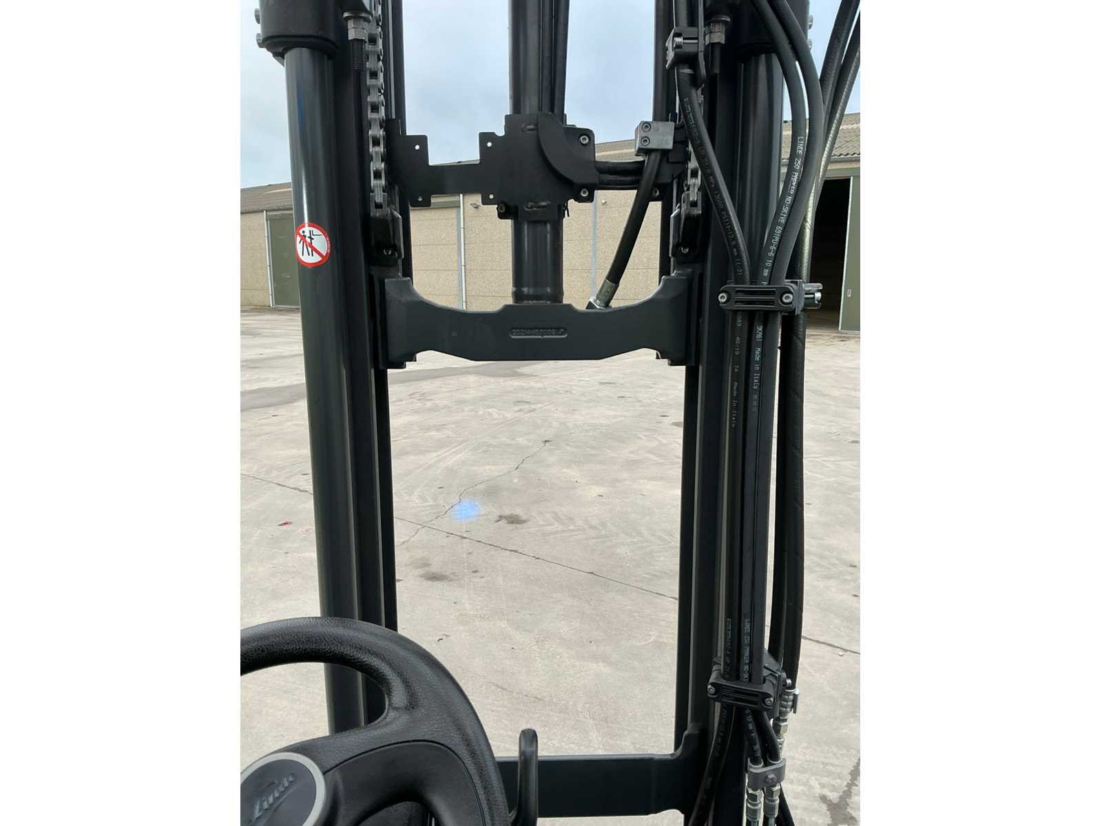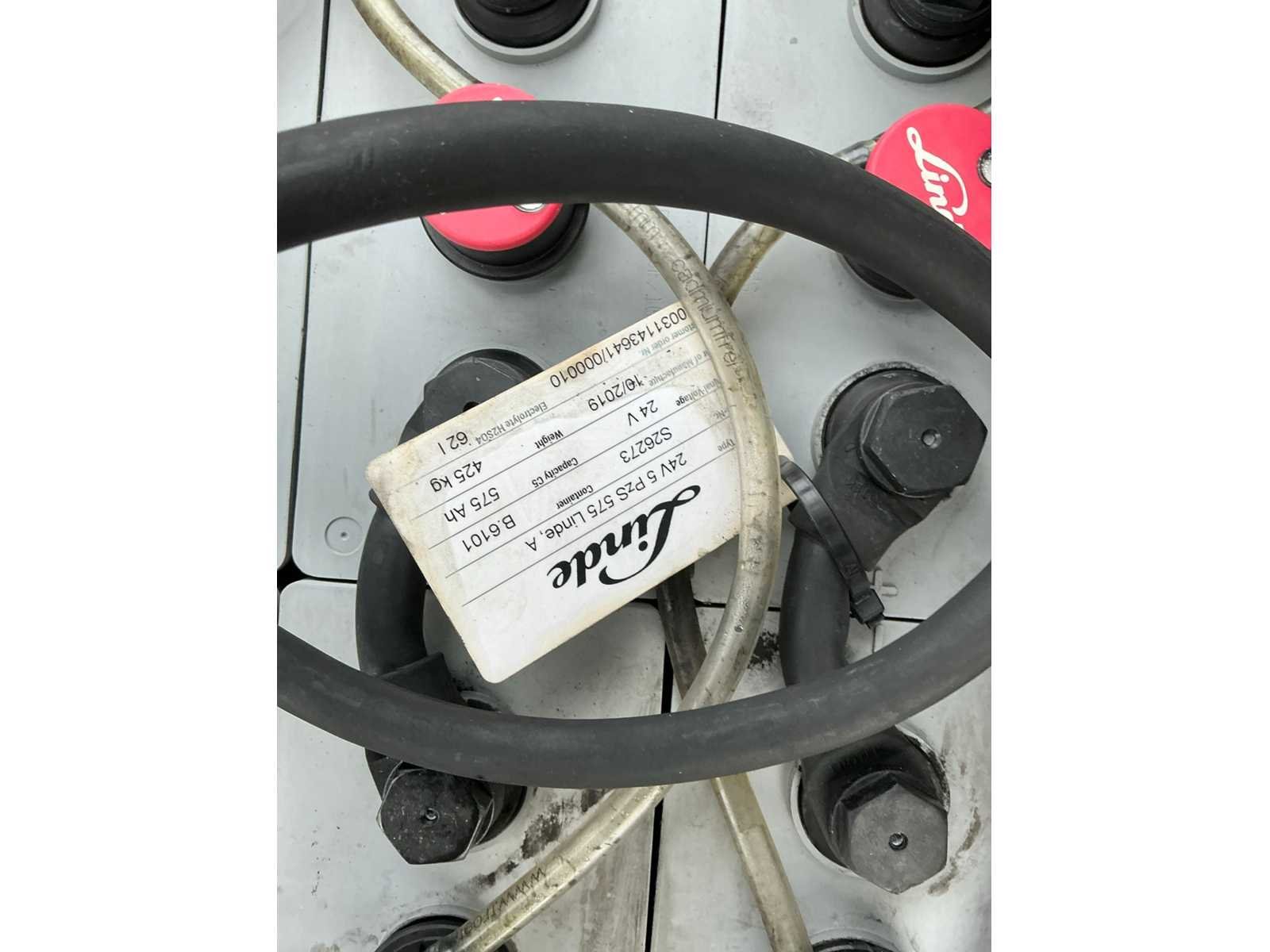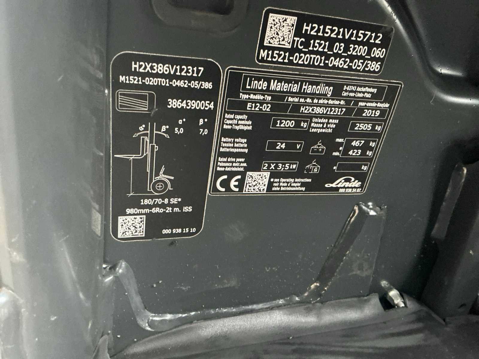 Linde accu met automatische vulling , led werklampen , blue spot voor en achter , flash light Nee Merk: Linde Type: E12 EVO Bouwjaar: 2019 Serienummer: H2X386V12317 Brandstof: Elektrisch Mast: Triple Soort band: Volrubber banden Aantal wielen: 4 Afgelezen urenstand: 1800 Side-shift: true Triple mast: true Eigen gewicht: 2973kg Hefvermogen: 1200kg Lepellengte: 1200mm Min. hefhoogte: 0mm Hefhoogte: 4620mm Vol rubber banden: true Totale afmeting L: 1800mm Totale afmeting Breedte: 1050mm Totale afmeting Hoogte: 2100mm Leveringsvoorwaarden: Gratis op vrachtwagen