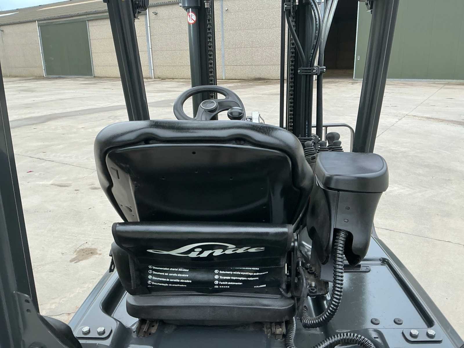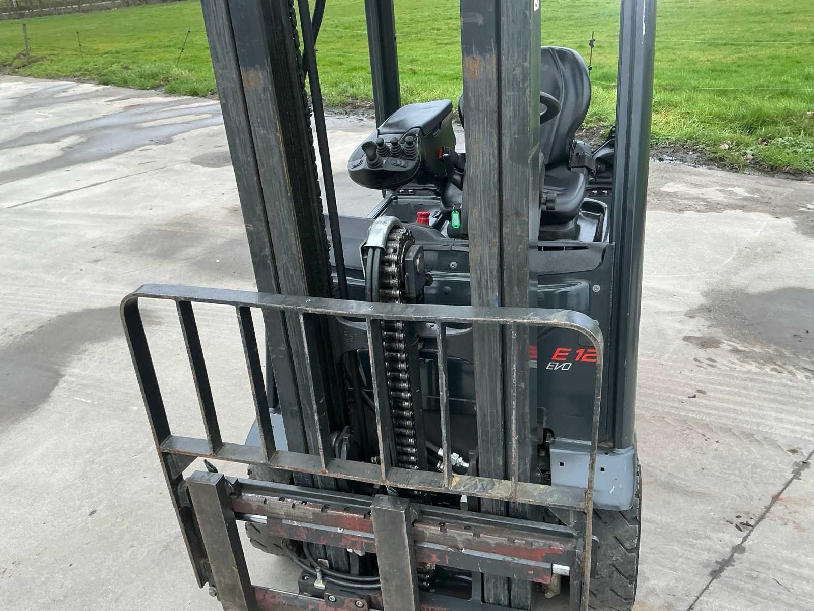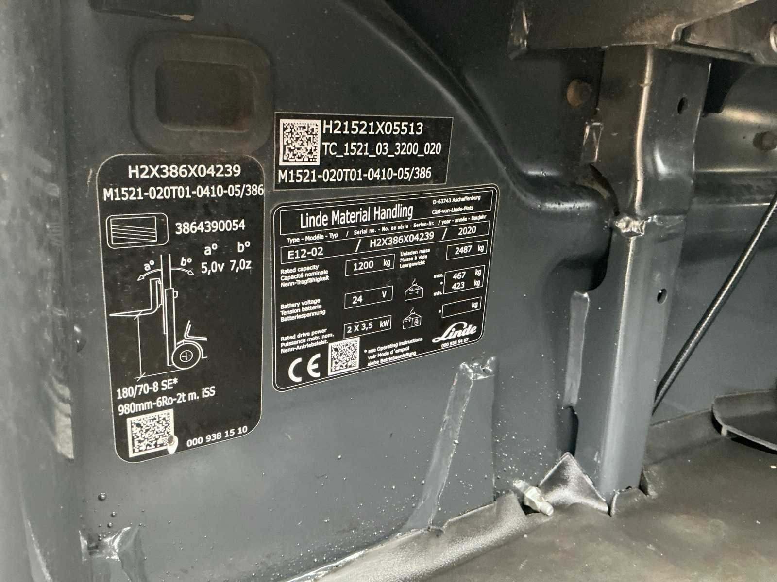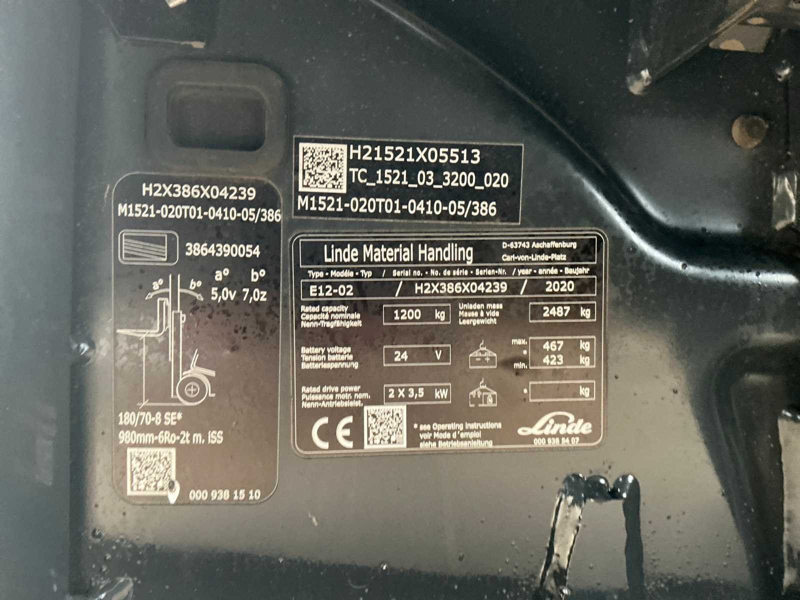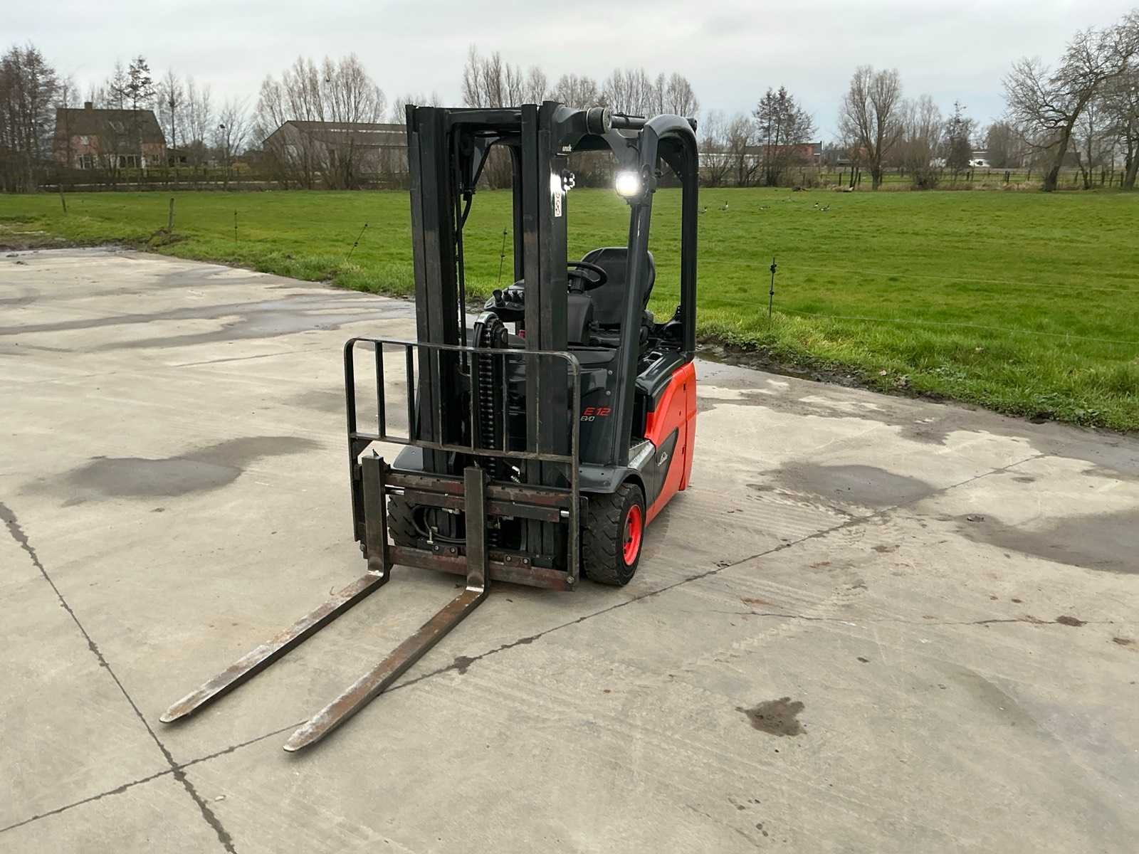 Led werklichten voor en achter , flash light , geveerde stoel Nee Merk: Linde Type: E12 EVO Bouwjaar: 2020 Serienummer: H2X386X04239 Brandstof: Elektrisch Mast: Triple Soort band: Volrubber banden Aantal wielen: 4 Afgelezen urenstand: 2060 Side-shift: true Triple mast: true Eigen gewicht: 2980kg Hefvermogen: 1200kg Lepellengte: 1200mm Min. hefhoogte: 0mm Hefhoogte: 4100mm Vol rubber banden: true Totale afmeting L: 1800mm Totale afmeting Breedte: 1100mm Totale afmeting Hoogte: 1960mm Leveringsvoorwaarden: Geladen op vrachtwagen