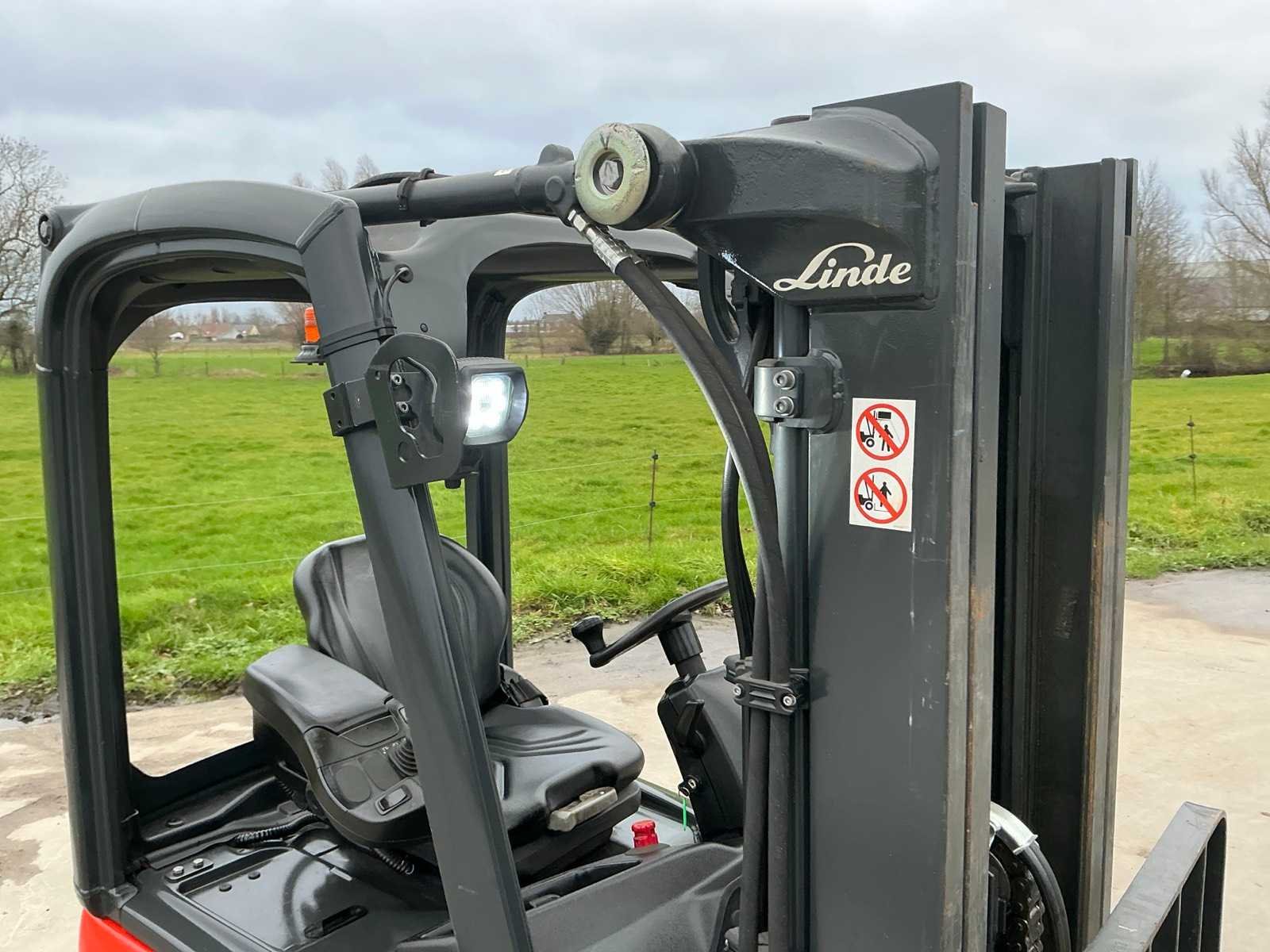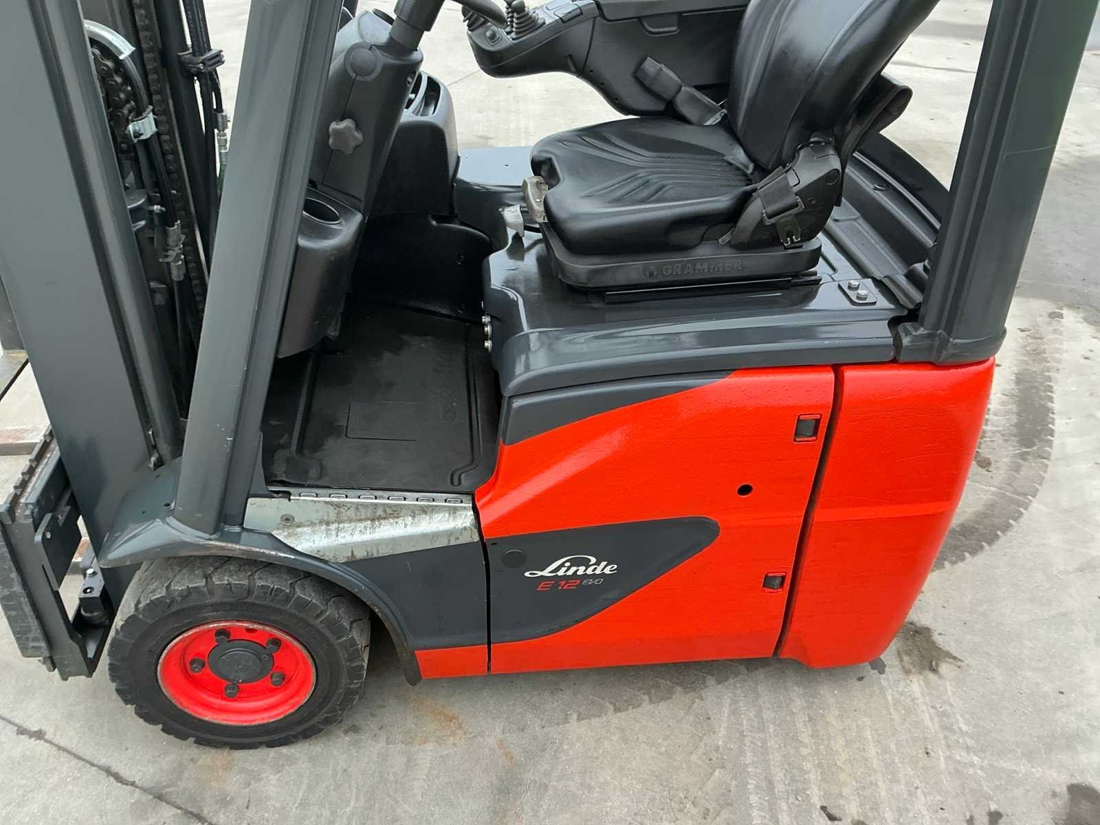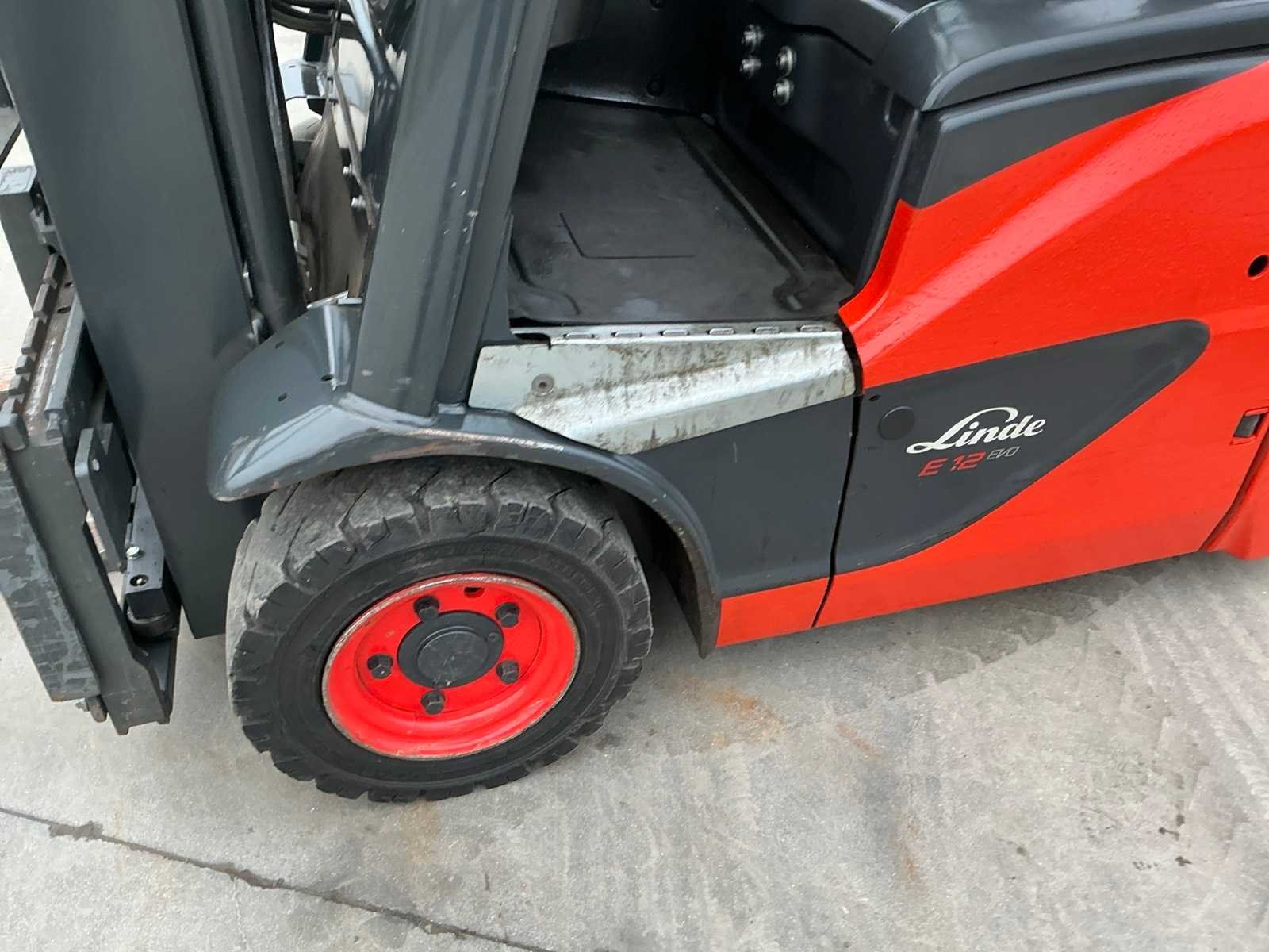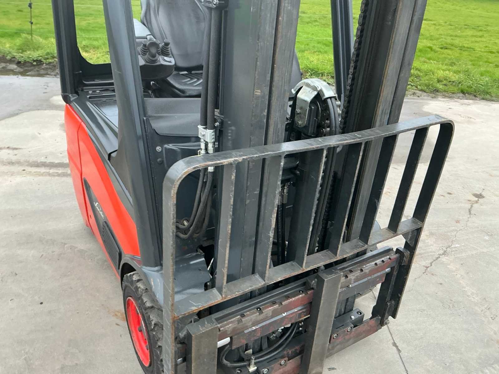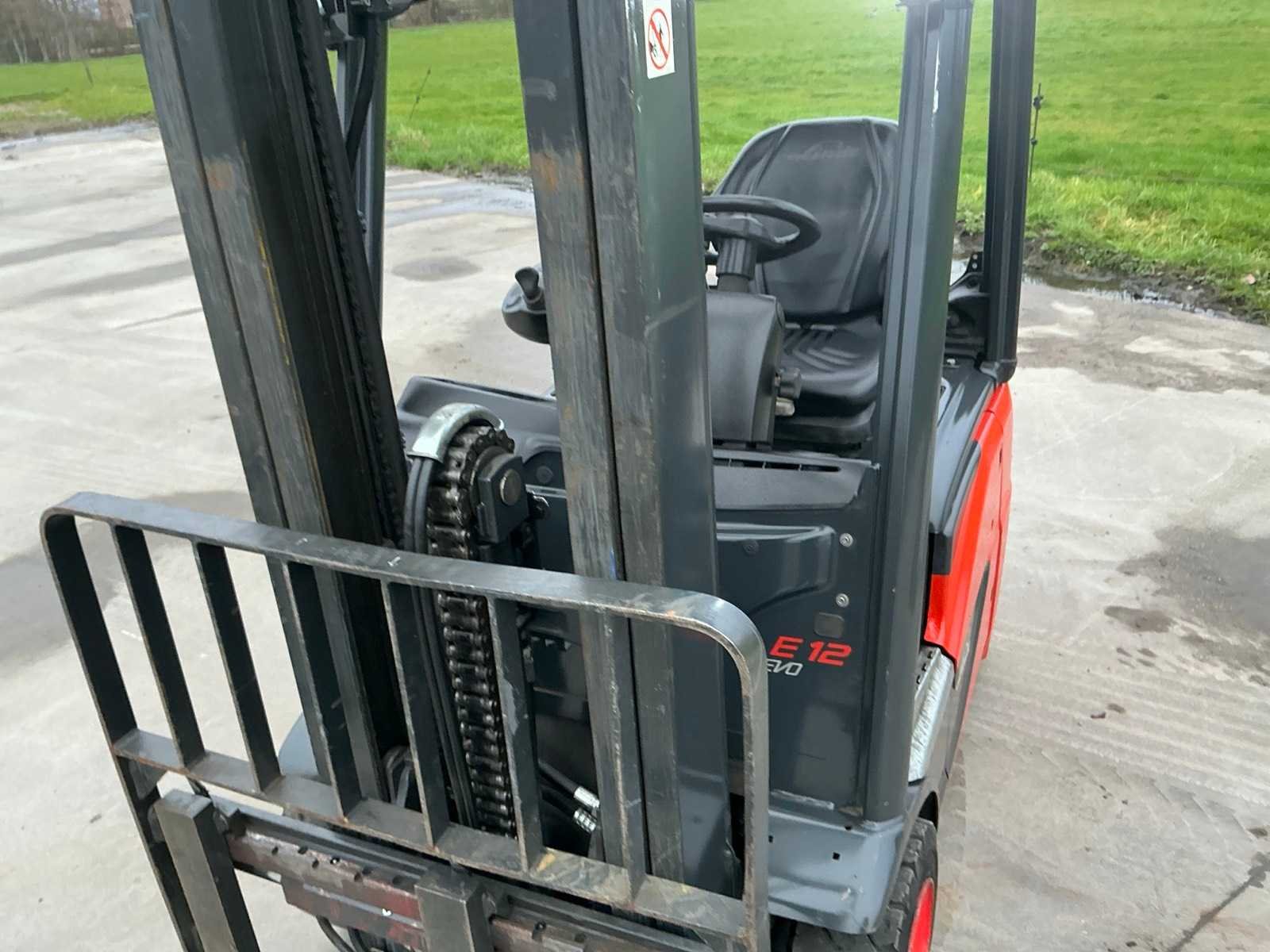 Led werklichten voor en achter , flash light , geveerde stoel Nee Merk: Linde Type: E12 EVO Bouwjaar: 2020 Serienummer: H2X386X04239 Brandstof: Elektrisch Mast: Triple Soort band: Volrubber banden Aantal wielen: 4 Afgelezen urenstand: 2060 Side-shift: true Triple mast: true Eigen gewicht: 2980kg Hefvermogen: 1200kg Lepellengte: 1200mm Min. hefhoogte: 0mm Hefhoogte: 4100mm Vol rubber banden: true Totale afmeting L: 1800mm Totale afmeting Breedte: 1100mm Totale afmeting Hoogte: 1960mm Leveringsvoorwaarden: Geladen op vrachtwagen