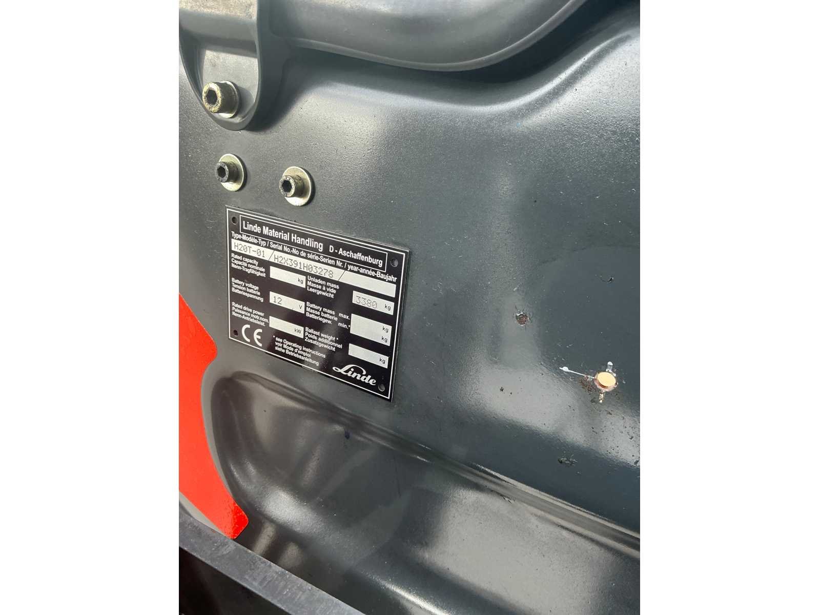 Led werklichten voor en achter , blue spot voor en achter , flash light oranje en blauw , geveerde stoel , auto lpg afsluiter Nee Merk: Linde Type: H20 EVO Bouwjaar: 2017 Serienummer: H2X391H03278 Brandstof: LPG Mast: Duplex Soort band: Volrubber banden Aantal wielen: 4 Afgelezen urenstand: 5480 Side-shift: true Duplex mast: true Eigen gewicht: 3380kg Hefvermogen: 2000kg Lepellengte: 1100mm Min. hefhoogte: 0mm Hefhoogte: 3850mm Vol rubber banden: true Totale afmeting L: 2500mm Totale afmeting Breedte: 1150mm Totale afmeting Hoogte: 2500mm LPG: true Leveringsvoorwaarden: Gratis op vrachtwagen