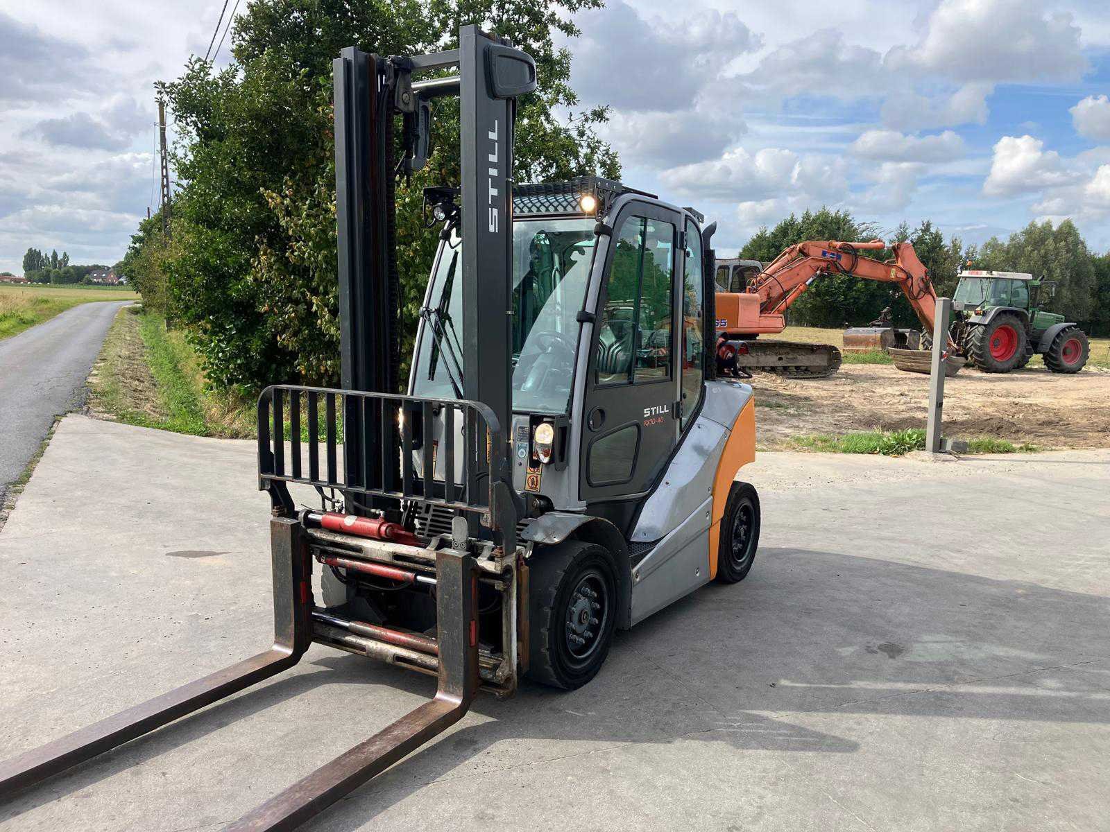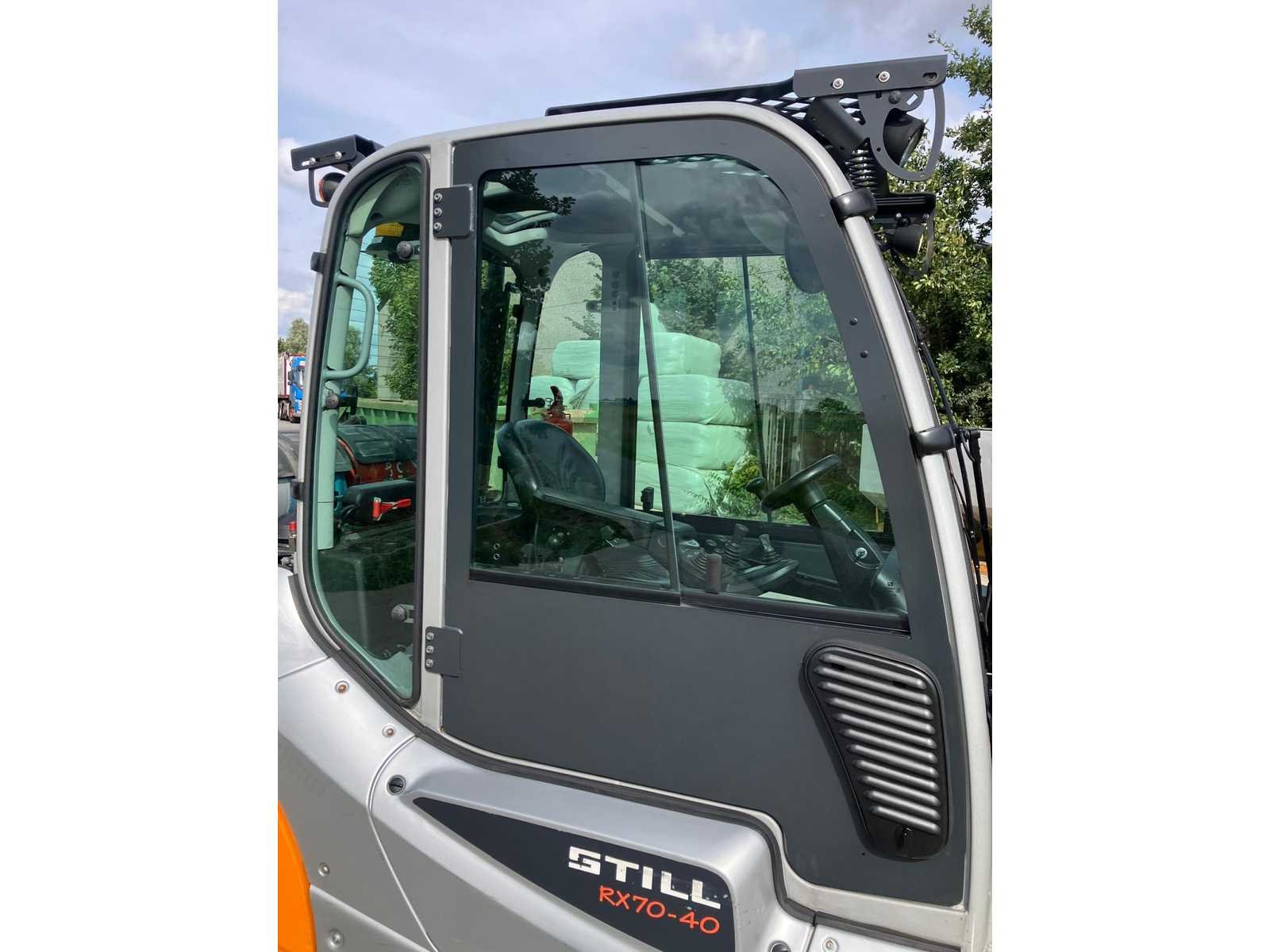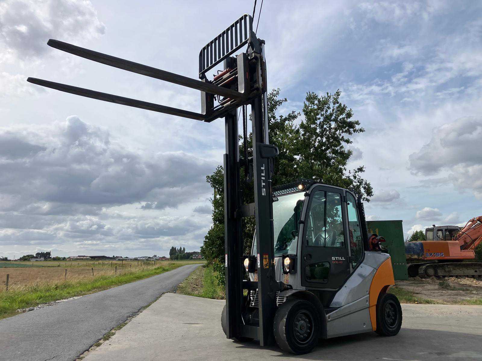No Merk: Still Type: RX70-40 Bouwjaar: 2019 Serienummer: 517335V00003 Mast: duplex Soort band: full rubber Aantal wielen: 4 Afgelezen urenstand: 3700 Side-shift: true Duplex mast: true Eigen gewicht: 6493kg Hefvermogen: 4000kg Lepellengte: 1800mm Min. hefhoogte: 0mm Max. hefhoogte: 4500mm Hefhoogte: 4500mm Vol rubber banden: true Minimale doorrijhoogte: 0mm Totale afmeting L: 3000mm Totale afmeting Breedte: 1400mm Totale afmeting Hoogte: 2800mm LPG: true