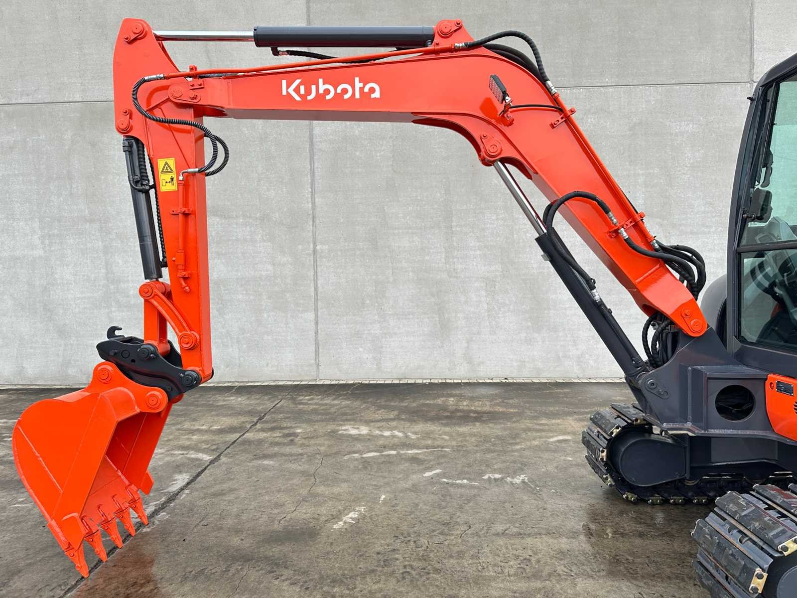 -Mechanische snelwissel. -Hamerleidingen . -Tandenbak . -Duwblad . -Rupsen met rubber pads. -Geen documenten. Nee Merk: Kubota Type: KX155-5 Bouwjaar: 2014 Serienummer: JKUK1555P00W10545 Merk motor: Kubota V2403 Motorvermogen (kW): 29.2kW Aantal cilinders: 4 Brandstof: Diesel Graafbak afm. b: 650mm Rups breedte: 400mm Afgelezen urenstand: 1625 Eigen gewicht: 5190kg Totale afmeting L: 5500mm Totale afmeting Breedte: 2000mm Totale afmeting Hoogte: 2600mm GS Code: 8429521200