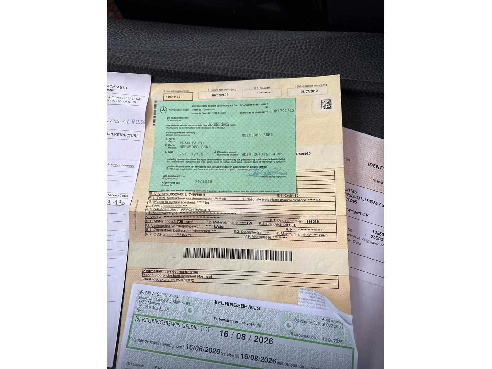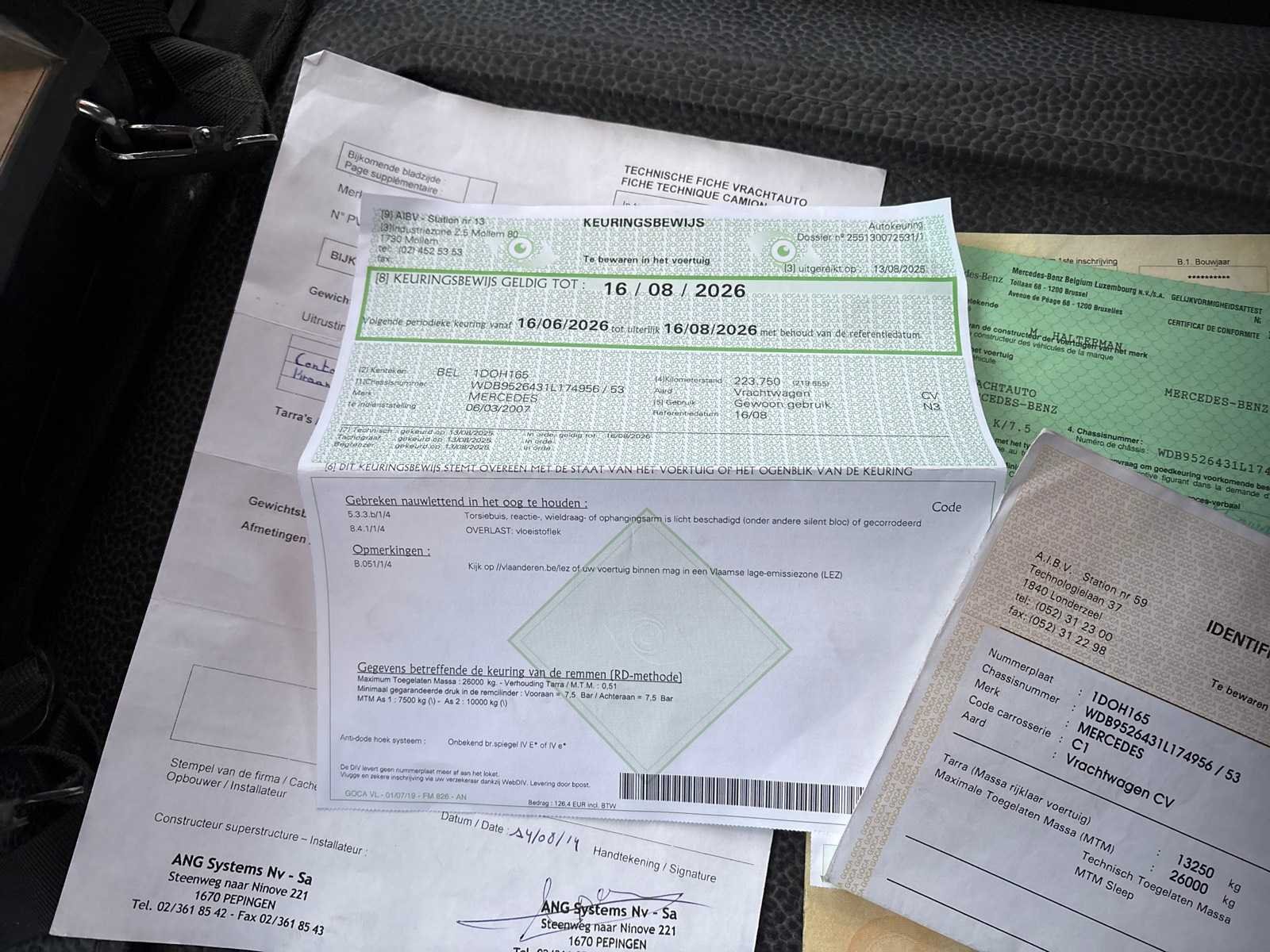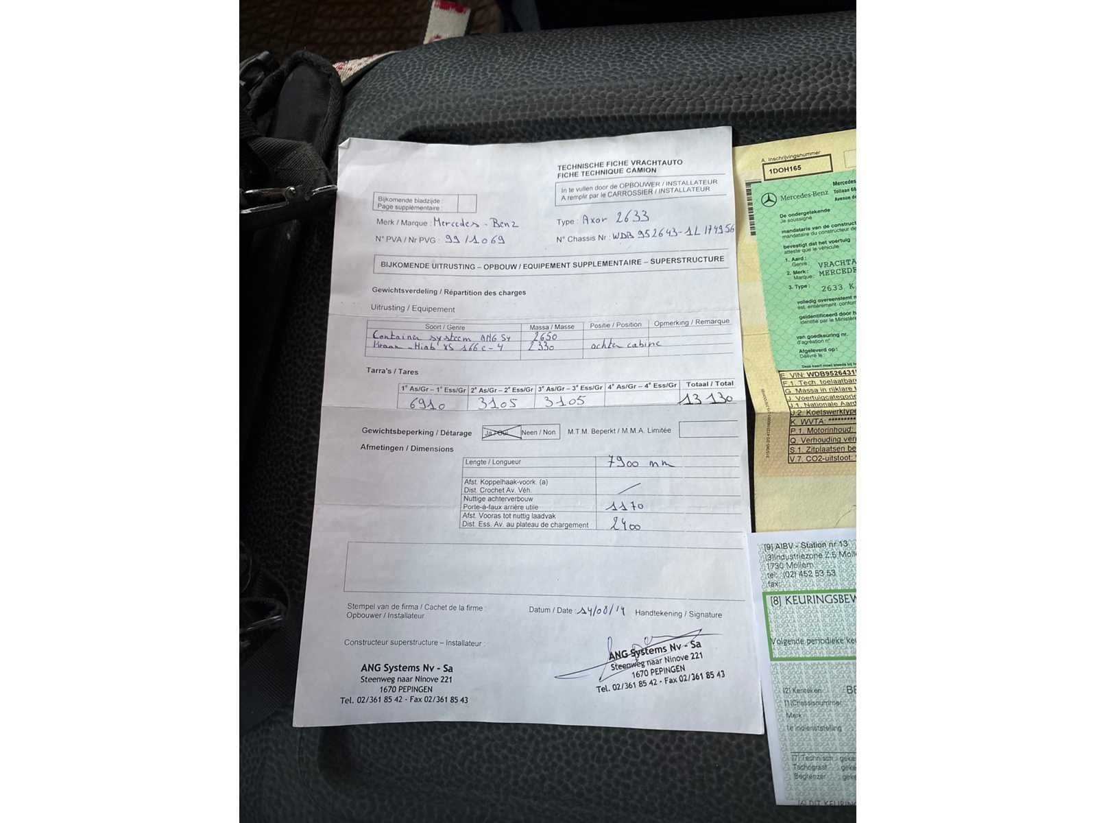 Voorzien van containersysteem ANG S4 en Kraan Hiab XS 166 E-4 Nee Merk: Mercedes-Benz Type: Axor 2633 Bouwjaar: 2007 Chassisnummer VIN: WDB9526431L174956 Cilinderinhoud: 7201cc Kilometerstand bij opname: 224419km Datum eerste toelating: 06/03/2007 Type transmissie: Handmatig Fuel Type: Diesel Aantal sleutels: 2 Laadkraan: true Nationaliteit documenten: België Kentekenpapieren compleet?: true Handgeschakelde versnellingsbak: true