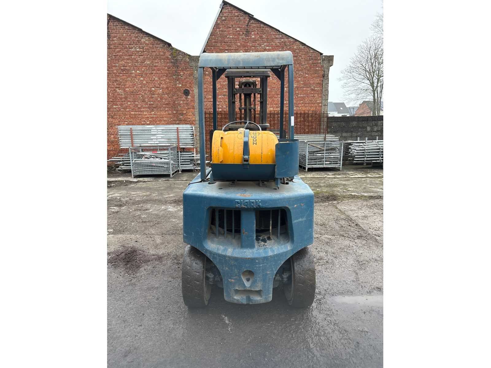 Werkende staat Nee Merk: Clark 1 Type: C500-Y-40 Bouwjaar: 1974 Brandstof: LPG Soort band: Volrubber banden Aantal wielen: 4 Afgelezen urenstand: 4406 Duplex mast: true Hefvermogen: 1800kg Lepellengte: 1100mm Max. hefhoogte: 3000mm Vol rubber banden: true Minimale doorrijhoogte: 2150mm LPG: true