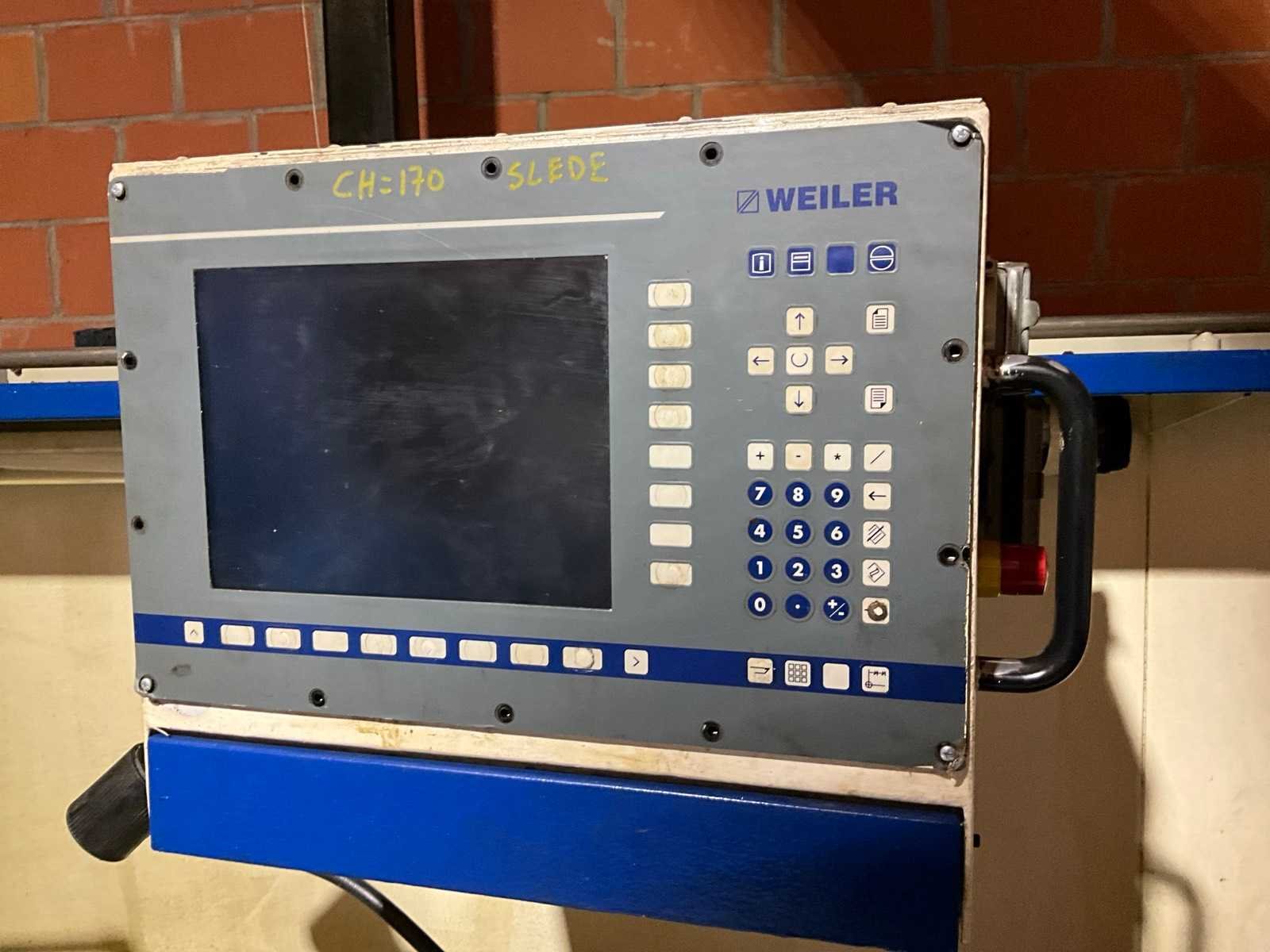 SCHUNK ROTA-S klauwplaat gemonteerd Hogedrukpomp voor koelwater sturing zonder geheugen Nee Merk: Weiler Type: E50/2D Bouwjaar: 2000 Serienummer: 776 Draailengte: 2000mm Holle spil Ø: 120mm Koelmiddelpomp: true Aansluiting: 400V