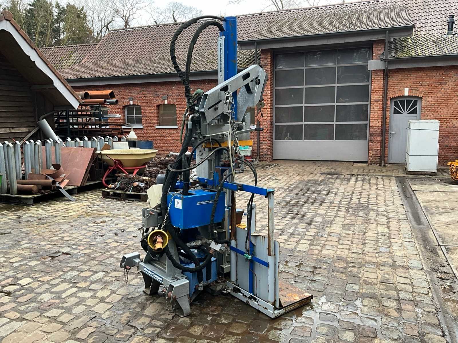 Machine werkt zowel op 380V als op cardanas en heeft een eigen lier(afstandsbediening) en hydr. heftafel om blokken bij te trekken of te liften. Eigen draaiplateau om grote blokken goed te kunnen positioneren. zowel mes met enkele snede als mes om blok in 4 te klieven aanwezig Machine is meer dan geschikt voor meterhout Nee Merk: Binderberger Type: H30 Totale afmeting Hoogte: 2700mm