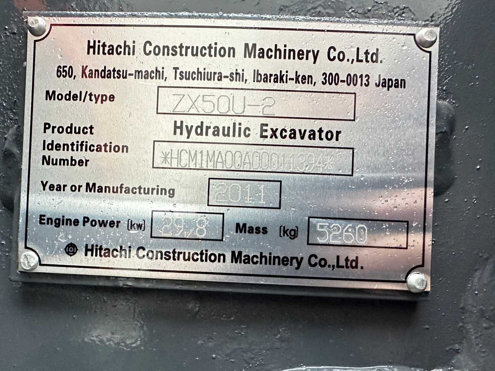 -Mechanische snelwissel. -Hamerleidingen. -Tandenbak. -Duwblad. -Rupsen met rubber pads. -Geen documenten. Nee Merk: Hitachi Type: ZX50U-2 Bouwjaar: 2011 Serienummer: HCM1MA00A00011394 Merk motor: Yanmar Motorvermogen (kW): 29.8kW Aantal cilinders: 4 Brandstof: Diesel Bedrijfsgewicht: 5260kg Graafbak afm. b: 650mm Rups breedte: 400mm Afgelezen urenstand: 5792 Eigen gewicht: 5260kg Totale afmeting L: 5600mm Totale afmeting Breedte: 2000mm Totale afmeting Hoogte: 2650mm GS Code: 8429521200