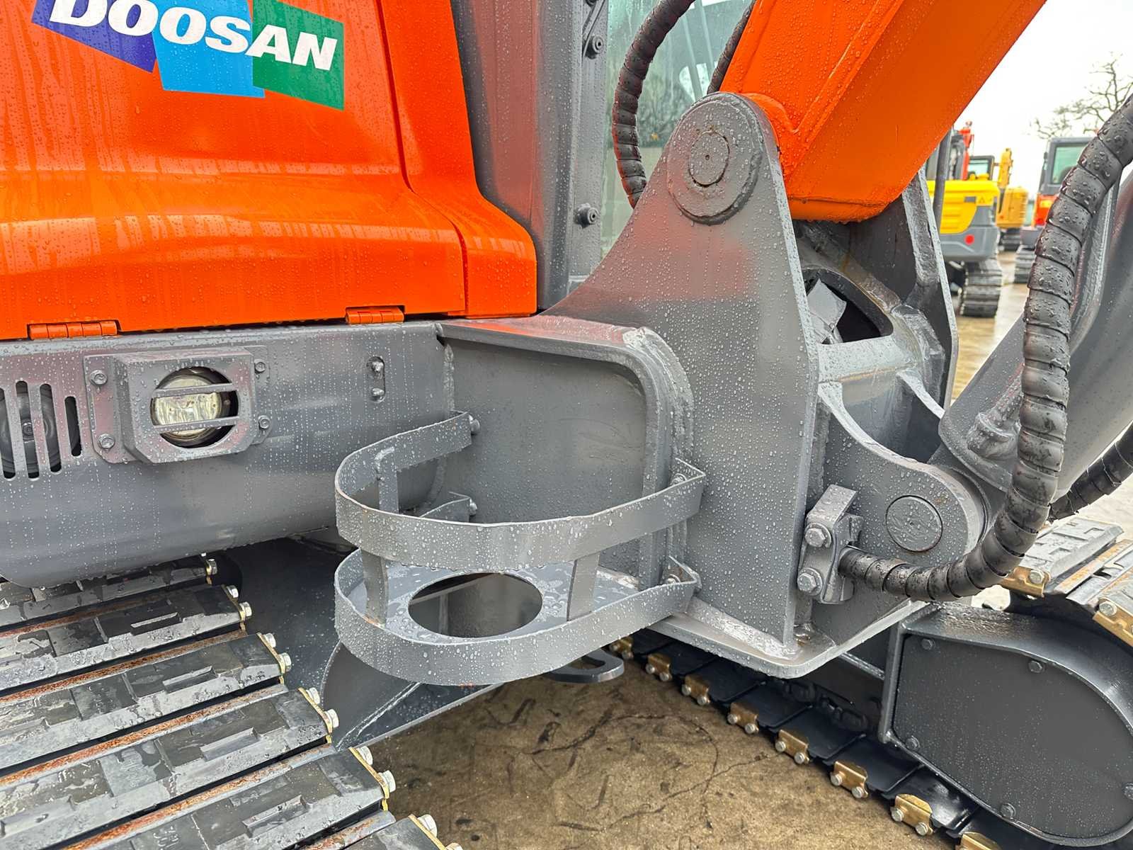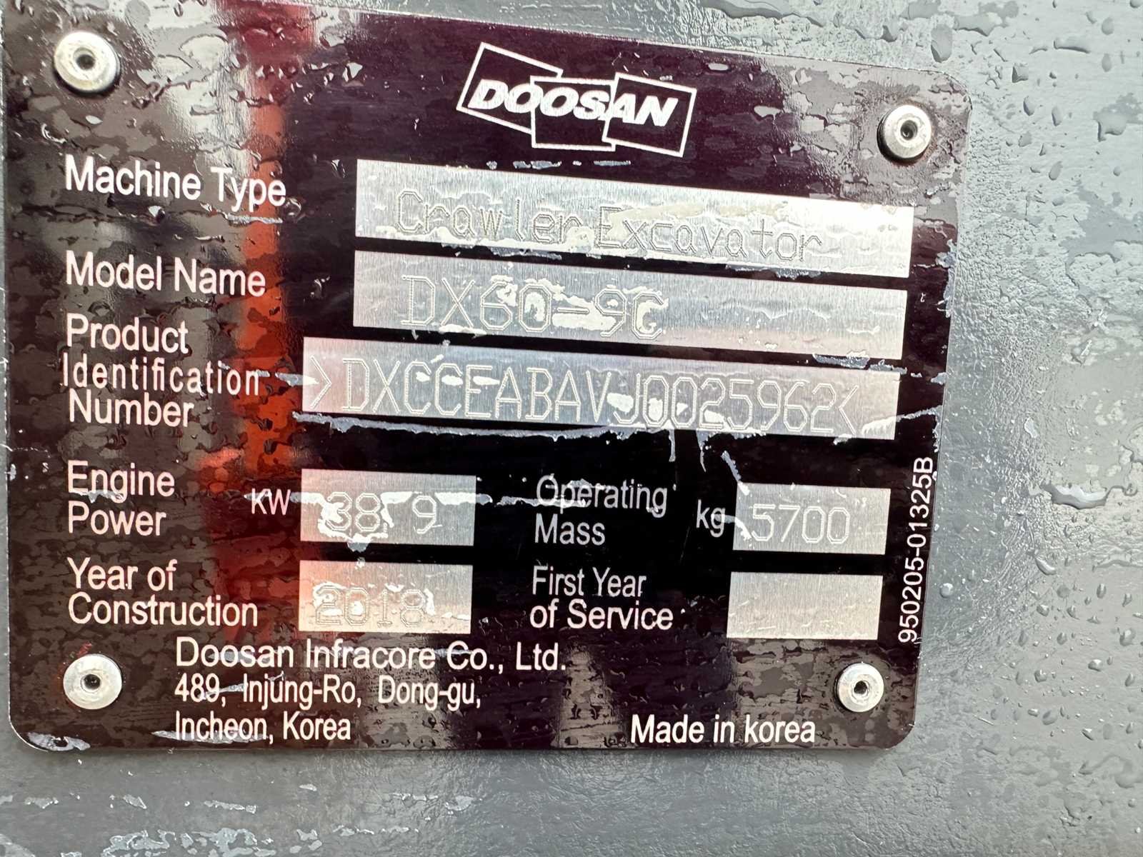-Mechanische snelwissel. -Hamerleidingen. -Tandenbak. -Duwblad . -Rupsen met rubber pads. -Geen documenten. Nee Merk: Doosan Type: DX60-9C Bouwjaar: 2018 Serienummer: DXCCEABAVJ0025962 Merk motor: Doosan D24-C3 Motorvermogen (kW): 39kW Aantal cilinders: 4 Brandstof: Diesel Graafbak afm. b: 650mm Rups breedte: 400mm Afgelezen urenstand: 4086 Eigen gewicht: 5700kg Totale afmeting L: 2700mm Totale afmeting Breedte: 2000mm Totale afmeting Hoogte: 2600mm GS Code: 8429521200