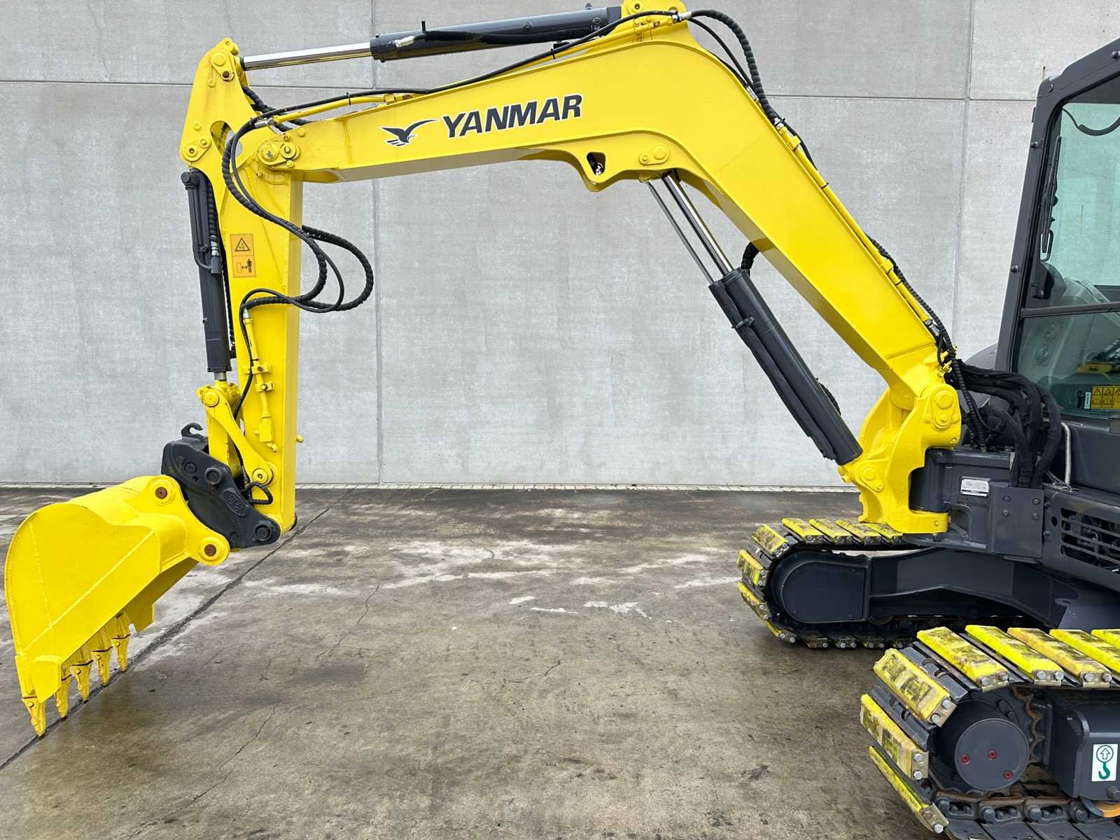 -Snelwissel -Hamerleidingen -Tandenbak -Duwblad -Metalen rupsen met rubberpads -Geen documenten Nee Merk: Yanmar Type: VIO50-6B Serienummer: YMRVIO50KGBJ605075 Merk motor: Yanmar 4TNV88 Motorvermogen (kW): 27.5kW Aantal cilinders: 4 Brandstof: Diesel Graafbak afm. b: 650mm Rups breedte: 350mm Afgelezen urenstand: 3863 Eigen gewicht: 4875kg Totale afmeting L: 5500mm Totale afmeting Breedte: 1950mm Totale afmeting Hoogte: 2650mm GS Code: 8429521200
