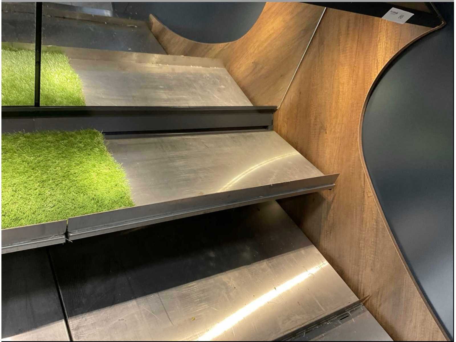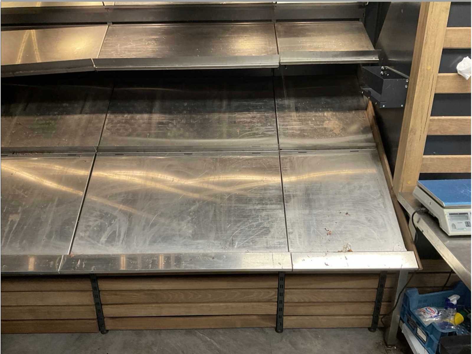 Inclusief RVS meubel met weegschaal. Reeds gedemonteerd. Foto’s ter indicatie. No Lengte: 950cm Breedte: 95cm Hoogte: 215cm